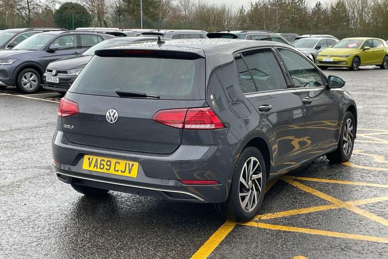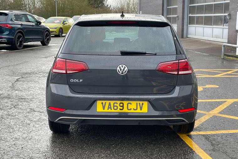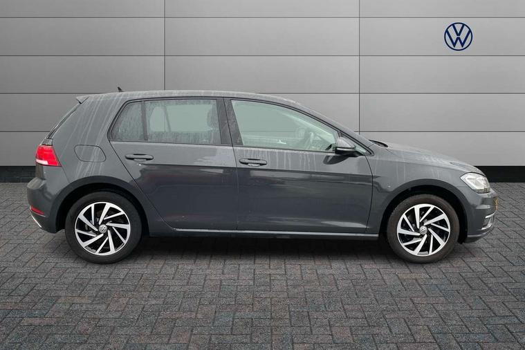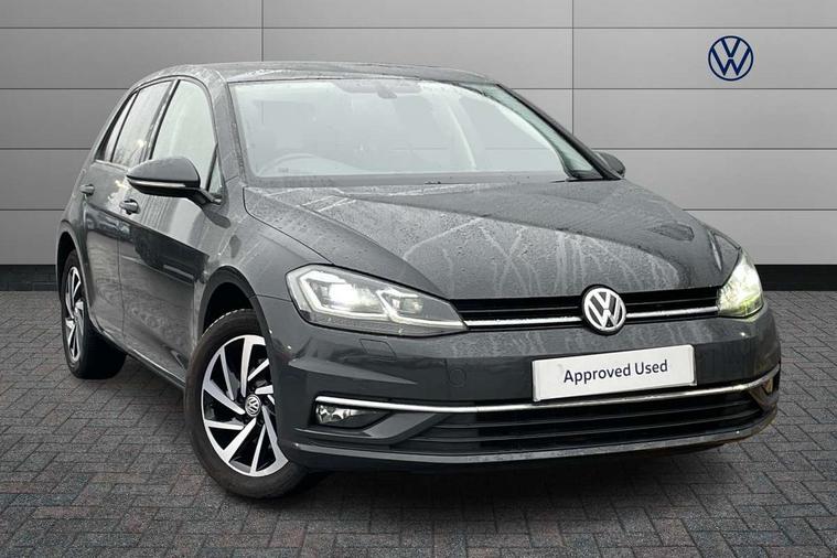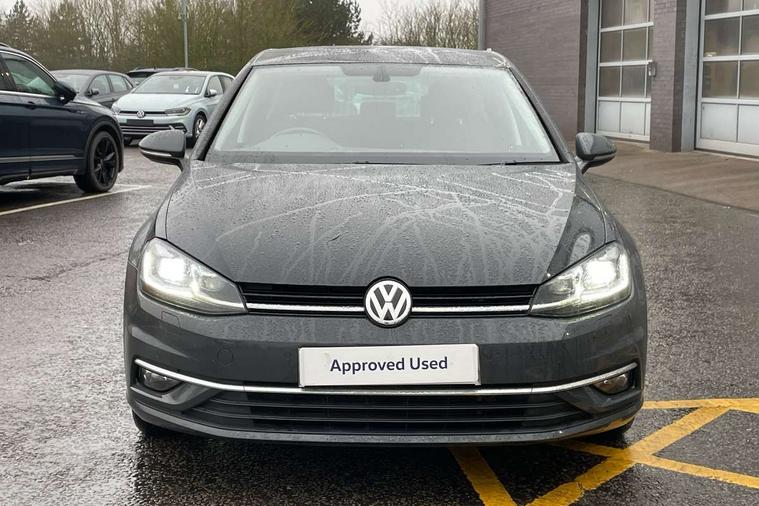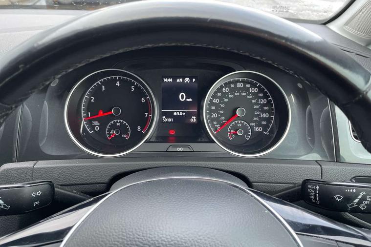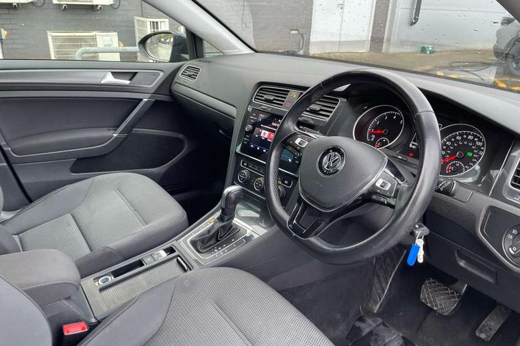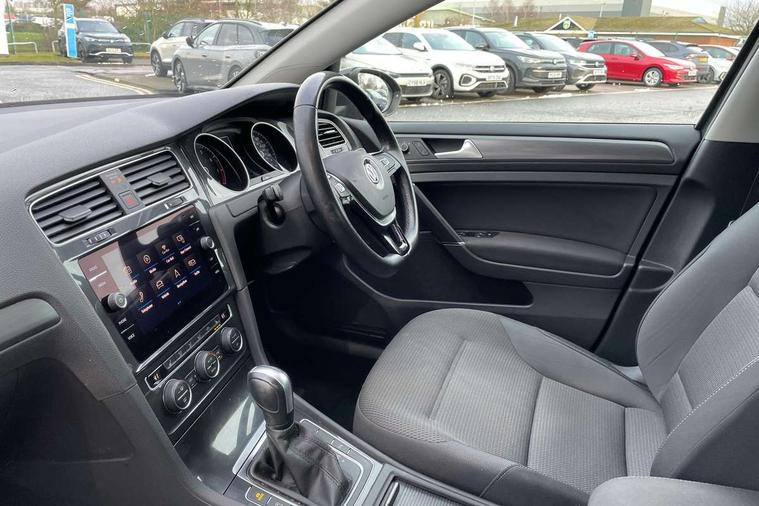 'Lights On' Reminder warning buzzer, ACC - Adaptive cruise control with front assist, forward collision warning, distance monitoring, city emergency brake and speed limiter, Bluetooth telephone and audio connection for compatible devices, Brake pad wear indicator warning light, Driver alert system, Driving Mode Selection with four preset modes - Eco, normal, sport or individual modes, Multifunction computer with visual gear change recommendation for fuel consumption, Power assisted speed sensitive electro-mechanical steering, Push tank flap, Speed limit display, Speedo, rev counter, electronic odometer, trip, service interval display, exterior temperature and fuel gauge, Stop/start system, Think blue trainer driver tips and journey analysis, Warning buzzer and light for front seatbelts unfastened, Battery regeneration during braking, XDS electronic differential lock, Composition media system, DAB Digital radio receiver, Driver Personalisation profile selection, MP3/WMA compatability, Multi device interface (MDI) via USB connection, Premium USB cable in choice of either Apple or Android smartphone compatibility, SMS Functionality, Title and cover art display, USB and SD card connectivity, Volkswagen media control, Black front air intake and radiator grille with chrome insert, Black rear diffuser, Body colour bumpers, Body colour door handles, Body colour door mirrors with integrated indicators, Dusk sensor + automatic driving lights, Electric front windows, Electric rear windows, Electrically adjustable and heated door mirrors, Fully galvanised body, Heated rear windscreen, High level 3rd brake light incorporating LED Technology, LED front fog lights with static cornering light function, Range adjustable headlights via infotainment system with LED daytime running lights, Rear fog lamp, Rear number plate lights incorporating LED technology, Rear tinted glass 65% light absorbing from B pillar backwards, Rear window aerial, Rear window wash/wipe with intermittent wipe, Reflectors in all doors, Tailgate with integrated rear roof spoiler, Windscreen wipers/ intermittent wipe + 4 position delay, 12V socket in luggage compartment, 3 rear headrests, 4 load lashing points in luggage compartment, 60/40 split folding rear seat backrest, Bag hook in luggage compartment x 2, Climate control - 2 zone electronic air conditioning with automatic air recirculation and allergy filter, Cooled glovebox, Cover for storage compartment in centre, Dust/pollen filter, Front and rear reading lights X 2, Front centre armrest with storage compartment and two rear air vents, Front seat back storage pockets, Grab handles front x 2, rear x 2 with integrated coat hooks, Height and reach adjustable steering wheel, Illuminated vanity mirrors, Instrument lighting white adjustable panel illumination, Interior light delay, Isofix preparation for 2 rear child seats, Load through provision with rear centre armrest and cupholders x2, Luggage compartment lighting, Overhead storage box, Pearl grey headlining, Storage box in luggage compartment, Storage compartment in roof console with cover, Storage compartments in centre console, Storage compartments in front doors, Storage compartments in rear doors, Stowable luggage compartment cover, Sun visors, Variable boot floor, height adjustable and removable, Convenience Pack - Golf, Mirror pack - Golf, Winter pack - Golf, 3 rear three point seatbelts, Airbags - Driver's and front passenger's, curtain airbag, Driver's knee, front side impact and passenger's airbag deactivation switch, Anti-lock Braking System (ABS) with Hydraulic Brake Assist (HBA), Automatic post collision braking system, Child locks on rear doors, Driver/Passenger optimised head restraints, Electronic parking brake with auto hold, Electronic stability control (ESC) including Electronic differential lock (EDL) and ASR (Traction control) with deactivation via infotainment system, Front ventilated disc brakes and rear disc brakes, Pre crash preventive occupant protection, Three point height adjustable front seatbelts with tensioners, Tyre pressure loss indicator, Alarm with interior protection and deactivation via infotainment system, Electronic engine immobiliser, Brushed dark silver decorative inserts in dash and door panels, Chrome plated air vent surround, Chrome-plated light switch surround, Polar night black decorative inserts in centre console, Steel space saver spare wheel,