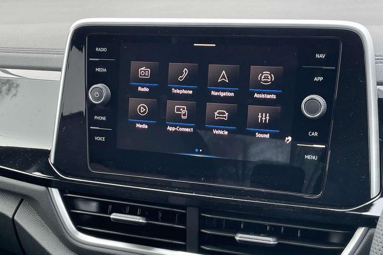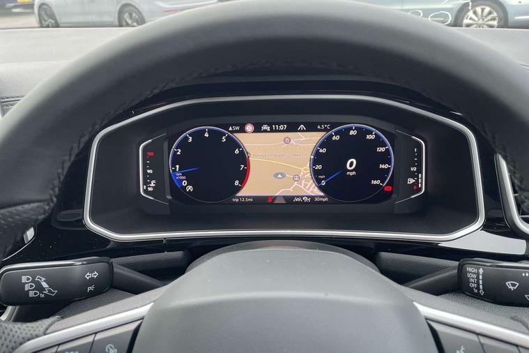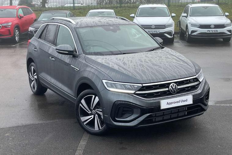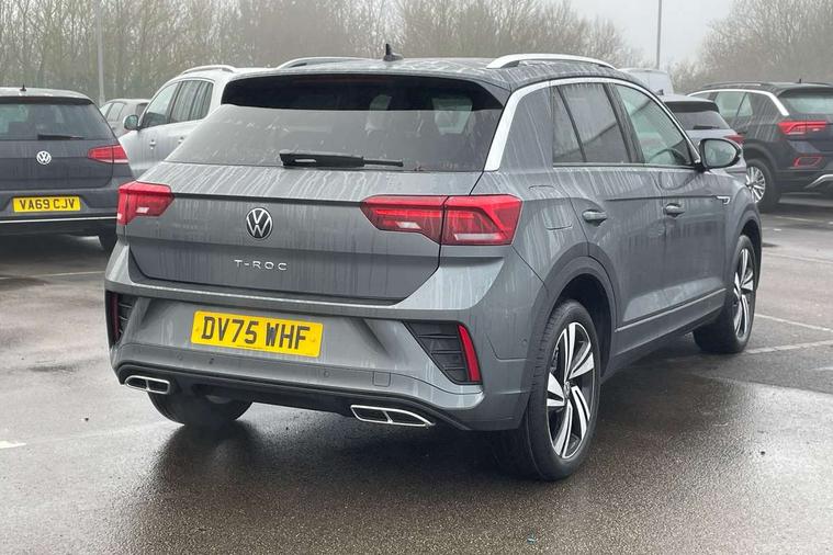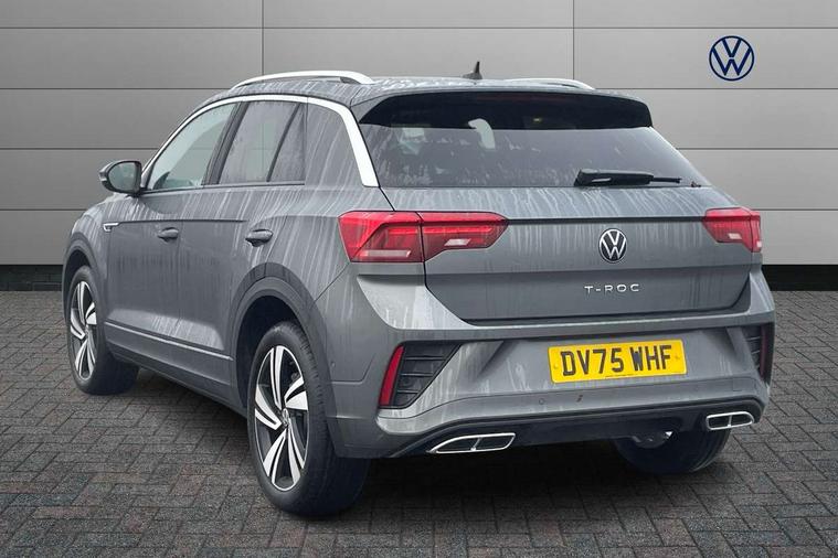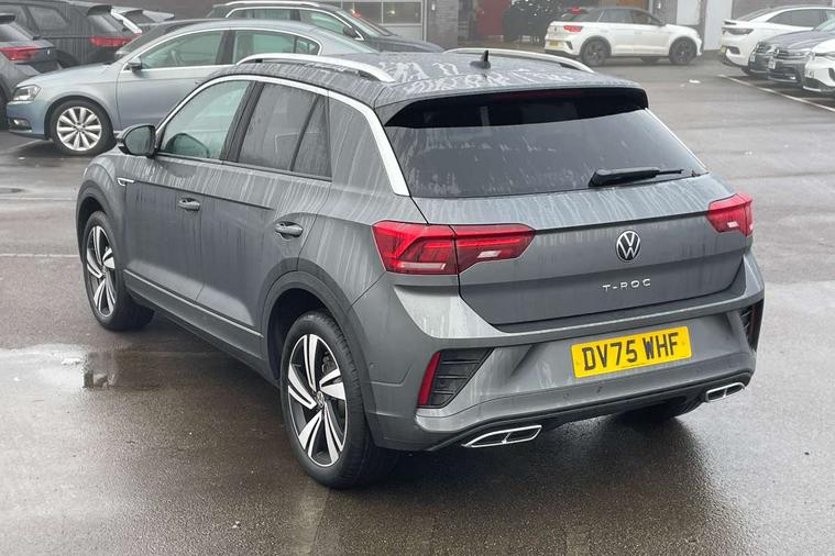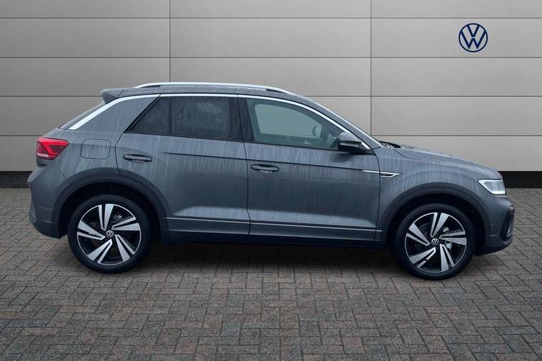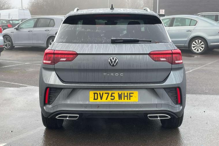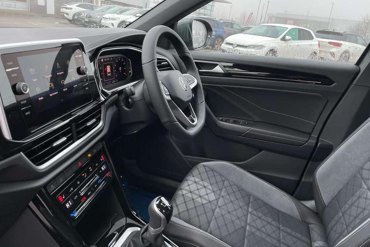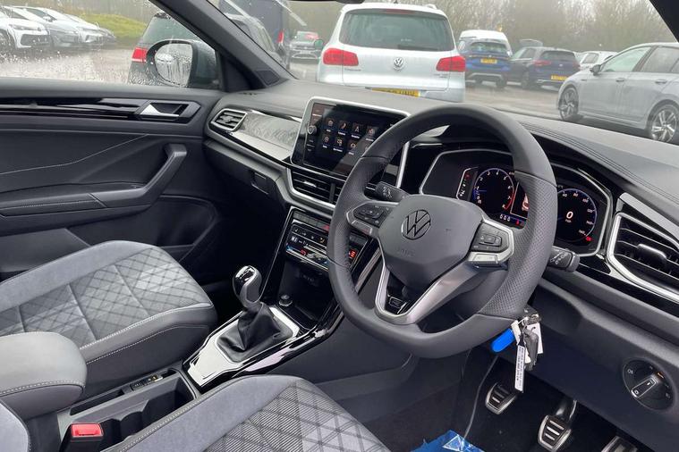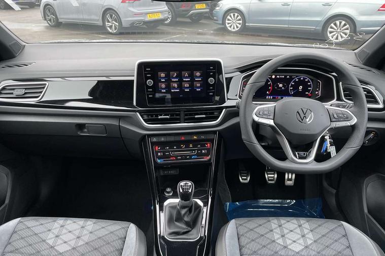 10.25" Digital cockpit pro, Advanced driver attention and drowsiness monitor, Emergency call service, Lane keeping system Lane Assist, Mobile phone interface, Modified key software - reduce switch off time for key status change to Long no motion, Online services, Park assist including front and rear parking sensors, Service interval indicator, Tailgate/trunk lid release from outside, Think blue trainer driver tips and journey analysis, Warning sound and light for front seatbelts unfastened, Wireless app connect, Battery regeneration during braking, Start/stop function with battery regeneration, DAB Digital radio, Diversity antenna for FM reception, Front and rear 6 speakers, Music playback - MP3, WMA and AAC files, Premium USB cable in choice of either Apple or Android smartphone compatibility, SD card slot, Simultaneous pairing of 2 compatible mobile devices, Title and cover art display, We Connect and We Connect Plus functionality, Auto dimming interior rear view mirror, Automatic hazard lights activation under emergency braking, Automatic headlight control with LED separate daytime running lights with coming/leaving home function, Body coloured exterior mirror housings and door handles, Electrically adjustable and heated door mirrors, Extended roof spoiler, Exterior mirrors aspherical on driver side, convex on front passenger side, External USB type C socket and charging sockets, Front windscreen wiper with intermittent wipe and 4 position delay, Heated rear window, LED 3rd brake light, LED rear combination lamps, LED rear number plate lights, Power windows with comfort operation and circuit breaker, Privacy glass for rear side windows and rear window, R-Line design body coloured bumpers, Rain sensor, Rear exhaust tailpipe, Rear fog light on one side and reversing lights on both sides, Rear side wing doors, Rear wash/wipe with intermittent wipe setting, Remote electrically foldable door mirrors, puddle lights and reverse activated passenger's door mirror, 12V power socket in centre console, 3 rear head restraints, 3 seat bench in 2nd row, 4 load lashing points in luggage compartment, Air care climatronic air conditoning system with active combination filter and 2-zone temperature control, Black roof lining, Chrome plated decorative trims, Chrome plated radiator grille inserts, air vent surrounds and light switch surrounds, Door and side trim panel with leatherette insert, Front + rear carpet mats, Front centre armrest, Front cupholders x 2, Front footwell illumination, Front reading light, Front scuff plates with R Line logo, Front seat back storage pockets, Glove compartment door with light, Instrument lighting, white adjustable panel illumination, Interior ambient lighting and surround lighting, Interior light delay, Isofix child seat preparation, Leather gearshift handle, Load-through provision with cup holder when folded down ('Unsplit rear seat bench, split folding backrest, with centre armrest), Luggage compartment lighting, Single front passenger seat, Stainless steel pedals, Storage compartment in left and right luggage area, Storage compartment in rear doors, Storage compartments in driver and front passenger doors, Sunvisors with illuminated vanity mirrors, Variable boot floor, height adjustable and removable, Driver assistance pack without proactive passenger protection - T-Roc, 3 point height adj front seatbelts + pretensioners, 3 point seatbelts in outer rear with ECE label, ABS, Child locks on rear doors, City emergency braking and pedestrian monitoring, Driver and front passenger airbag with front passenger airbag deactivation, Driver and front passenger safety-optimised head restraints, Drivers seatbelt reminder, Electronic parking brake, Electronic Stability Control (ESC) inc EDL (Electronic Differential Lock) and ASR (Traction Control), Front and rear passengers curtain airbag system including front side airbags, Hill start assist, Predictive pedestrian protection, Rear disc brakes, Two tone horn, Tyre pressure loss indicator, Volkswagen roadside assistance, Piano black decorative inserts in dashboard and front door trim panels, Trims for alloy wheels,