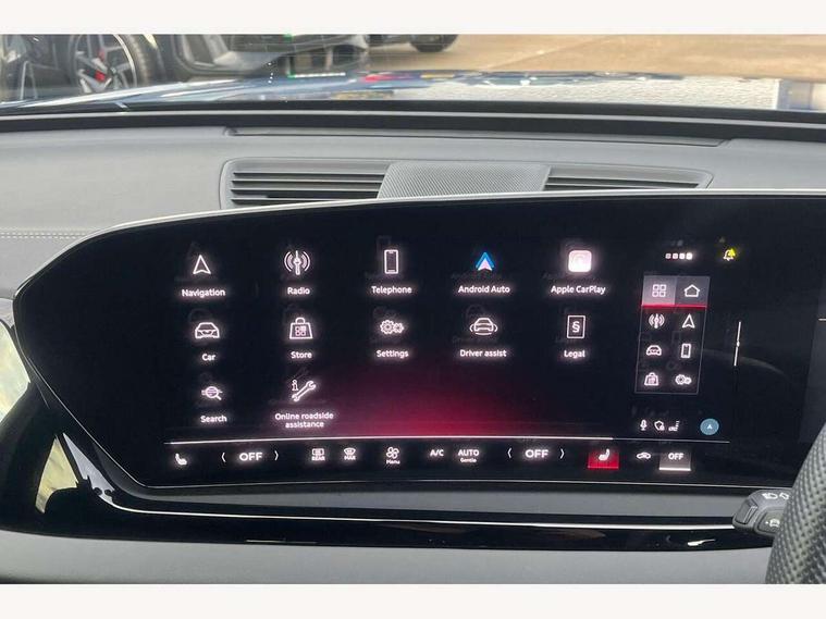 Adaptive cruise control, Advanced driver attention and fatigue montior, Audi application store, Audi assistant, Audi connect emergency call and service, Audi drive select, Audi smartphone interface, Audi virtual cockpit plus with 11.9" OLED colour display, Automatic start/stop system with coasting functionality, Camera based traffic sign recognition, Intersection assist, Lane departure warning, MMI navigation plus with high resolution 14.5" OLED touchscreen colour display, Park assist plus, Parking system plus with 360 display, Progressive steering with servotronic, Rear view camera, Swerve assist and turn assist, Traffic sign based speed limiter, Sports suspension lowered by 20mm, 2 USB-C ports in both the front and rear, Audi sound system impressive sound with 10 loudspeakers including centre speaker and subwoofer, 6-channel amplifier with a total output of 180 watts, DAB digital radio reception, Smartphone compartment with wireless charging, Aluminium roof rails, Aluminium window trims, Auto dimming rear view mirror, Body colour door mirrors, Door mirrors - electrically adjustable, heated, folding and auto dimming on both sides, Front and rear electric windows, Front door sill trims with aluminium inlays, illuminated with 'S' logo, High beam assist, LED headlights Plus incl. digital daytime running lights, turning light, all-weather light, motorway light, manouevring light and intersection light, LED rear lights pro incl. dynamic rear indicators and illuminated light strip with animated coming and leaving home function, LED third brake light, Privacy glass, Rear and side windows with heat insulating glass, Rear side wing doors, Rear wash/wipe, S Line badges on the front wings, S line bumpers, radiator grille and diffuser in phantom black and diffuser insert in matt anthracite, White rhombus logo projection light in exterior mirrors, Windscreen with acoustic glazing, 3 rear headrests, 3 seat rear bench, 3 spoke leather steering wheel with multi-function buttons with touch control, flattened on top and bottom, with S badging and contrast stitching, 3-zone automatic climate control, 40:20:40 split folding rear seat bench with centre armrest and cup holders, Comfort front centre armrest, Front and rear floor mats, Front seats with manual adjustment for position and 4-way electric lumbar support, Front sport seats with integrated headrest and S embossed logo, Headlining in black cloth, Heated front seats, i-Size child seat mounting on the front passenger side and outer rear seats, i-Size and top tether on the outer rear seats, Luggage compartment lid, electrically opening and closing, Manual steering column height and depth adjustment, Single front passenger seat, Stainless steel pedals and footrest, Steering wheel grips in perforated leather and shift paddles, Ambient lighting package plus - A5, 3x3 point rear seat belts, Driver airbag, Electric child safety locks, First aid kit with warning triangle and vests, Front emergency brake assist, Front passenger airbag, Front passenger airbag deactivation, Front side airbags with head airbag system and front interaction airbag, Hill hold assist, Seat belt monitoring with rear seat occupant reminder, Tyre pressure loss indicator, Anti theft alarm, Anti-theft wheel bolts, Keyless Go, Accent surfaces and control buttons in gloss black, Black dashboard with contrast stitching, Inlays in matt brushed aluminium with linear embossing, anthracite, Softwrap in leatherette with contrast stitching, Upper and lower interior elements in leatherette, Tyre repair kit,