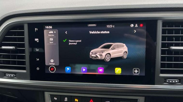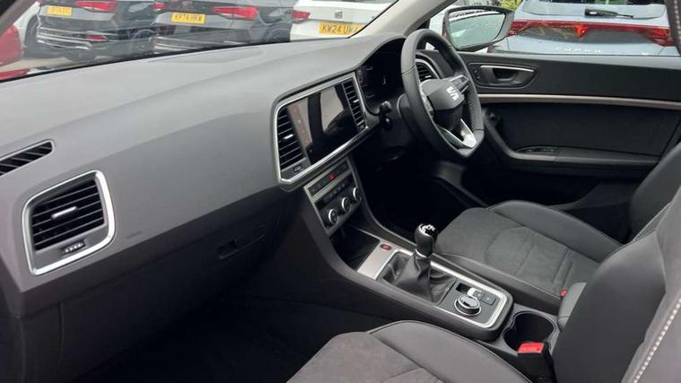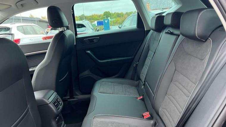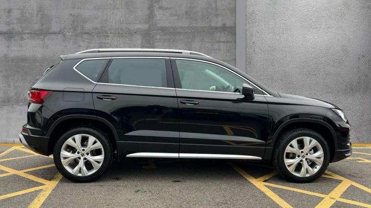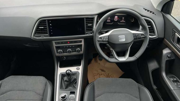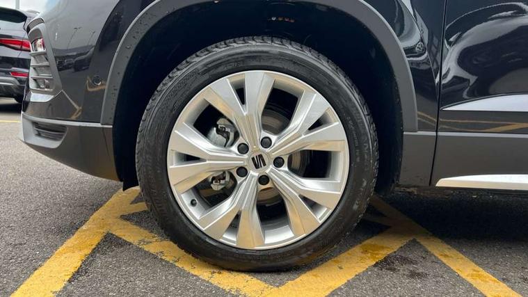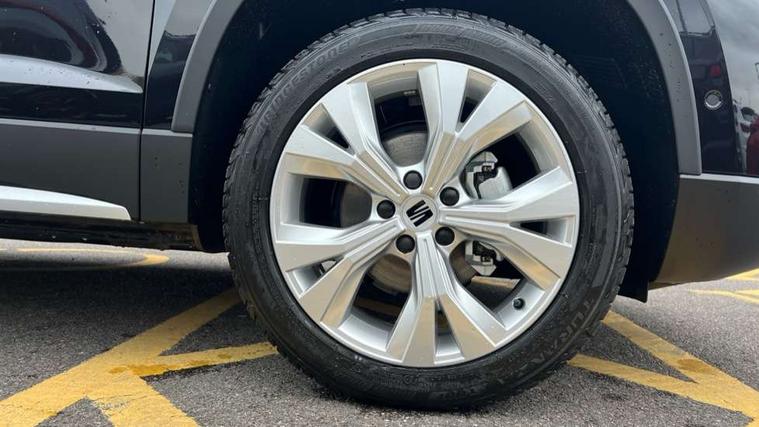 8" Digital cockpit, Colour multi-function on board computer display, E-call, Electric tailgate, Outside temperature gauge, Progressive power assisted steering, Rear view camera, SEAT drive profile with driving experience button - Normal, Sport, Eco and Individual mode, steering and throttle response, Self parking functionality (includes front and rear parking sensors), Start/stop system, Trip computer, wired and wireless full link smartphone integration, Wireless phone charger, Steering wheel mounted audio/phone controls, Black wheel arch surrounds, Body colour bumpers, Chrome front grille frame, Chrome roof rails, Chrome side window trim, Dark tinted rear windows, Daytime running lights, Door mirrors with welcome light silhouette, Dynamic headlight range control with self adjusting whilst driving, Electric adjustable/heated/folding door mirrors, Front and rear electric windows, Front grille hot stamping, Full LED headlamps with lens and LED front fog lamps with cornering function, Heat reflecting windscreen, Illuminated aluminium front door sill, LED 3rd brake light, LED rear tail lights with dynamic indicators, Rear exhaust tailpipe, Rear fog lights, Rear side wing doors, Rear wash/wipe, Reflex silver side mouldings, Variable front intermittent wipers, 12v socket in front, 3 seat bench in 2nd row, 60/40 split folding rear seat, Dinamica upholstery with front comfort seats, Drawer under right front seat, Dual zone climate control, Front and rear head restraints, Front centre armrest, Front seat back storage pockets, Height adjustable driver and passenger seat with lumbar adjustment, ISOFIX points in outer rear seats with top tether anchorage points, Leather sports steering wheel and gear knob, Rear armrest and easy back seat release mechanism from boot, Single front passenger seat, Convenience pack - Ateca, Interior lighting pack - Ateca, Navigation system pack with DAB - Ateca, Safety and driving pack (M) - Ateca, Safety and driving pack with attention and drowsiness assist - Ateca, 3x3 point rear seatbelts, ABS, Traction control system (TCS), Electronic stability control (ESC) and Electronic differential lock system (XDS), Airbags - Driver and front passenger airbag with deactivation, front side, two curtain and driver's knee airbags, Electric parking brake with auto hold function, Front and rear seatbelt reminder, Hill hold control, Manual rear child locks, Single tone horn, Tiredness recognition system, Tyre pressure monitoring system, Alarm, Keyless entry, Locking wheel bolts, Remote central locking, Chrome interior detailing, 18" Brillaint silver alloy wheels,