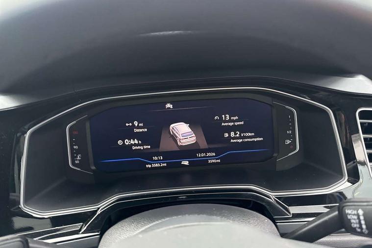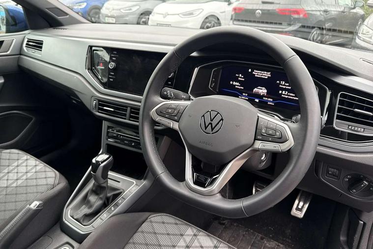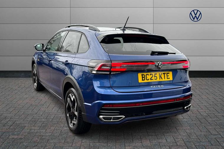 Adaptive cruise control, Advanced driver attention and drowsiness monitor, App-Connect including App-Connect Wireless, Digital cockpit pro - 10.25" high resolution TFT dash display screen with customizable menus and information, Driving profile selection, Dynamic road sign display, e-Call (emergency call), Power Steering, Travel assist including emergency assist, Washer fluid level indicator, Wireless Charging including Bluetooth, Start-stop system with battery regeneration (recuperation - energy recovery during braking), XDS electronic differential lock for improved traction and handling, Digital radio reception (DAB+), Diversity antenna for FM reception, WeConnect plus, Ambient lighting with logo projection, Aspherical driver's exterior mirror, Auto headlights, Body coloured bumpers, Bumpers in R-Line style, Electric windows, External USB type C socket and charging sockets, Front scuff plates with R-Line logo, LED rear combination lamp, LED third brake light, Left convex exterior mirror, Power folding adjustable/heated exterior mirrors and front passenger exterior mirror lowering function, Rear fog light on one side, reversing light on both sides, Rear side wing doors, Rear wash/wipe with intermittent wipe setting, 12V socket in centre console, 2 front reading lights, 3 rear head restraints, 3 seat bench in 2nd row, Air care climatronic air conditoning system with active combination filter and 2-zone temperature control, Black carpets, Black roof lining, Child seat anchor for child seat system i-Size, 2x top tether and child seat anchor in front on front passenger side, Chrome bezel for instrument cluster, vents, door handles + gear shift, Driver and front passenger seat height adjustment, Front + rear carpet mats, Front centre armrest, Front footwell illumination, Front sports comfort seats, Height and reach adjustable steering wheel, Interior ambient lighting and surround lighting, Karoso artvelours cloth upholstery, Leather trimmed gear knob, Leather wrapped multifunction steering wheel, Luggage compartment floor, Luggage compartment light, Lumbar support for driver's and front passengers seat, Seat covers in grey + titanium black, Single front passenger seat, Split folding backrest with centre armrest and unsplit rear seat bench, Stainless steel pedals, Storage compartment under front seats, Sun visors with illuminated vanity mirrors, Chrome Package - Taigo, Drivers assistance pack - Taigo, Light and Sight pack including High beam assist - Taigo, 2 x 3-point seatbelts/outer rear seats with ECE label, 3-point seat belts in front with pretensioner and height adjustment, 3-point seatbelt for centre rear seat, Adaptive driver and front passenger airbags with passenger airbag deactivation function, Driver and front passenger safety-optimised head restraints, Electronic stability control, Extended and predictive pedestrian/ cyclist protection, Front and rear disc brakes, Front curtain and side airbags with center airbag, Hill start assist, Manual rear child locks, Single tone horn, Tyre pressure loss indicator, Anti-theft alarm system with interior monitoring, backup horn, and towing protection, Grey anodised matte decorative inserts in dash and front door panels, Low rolling resistance tyres,