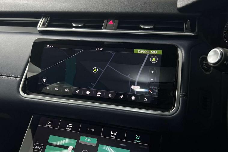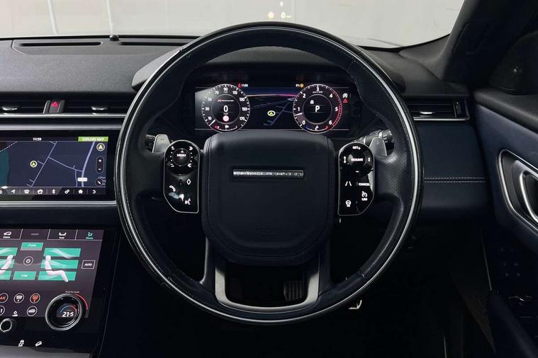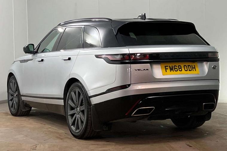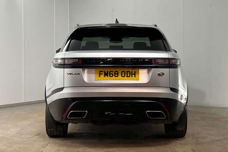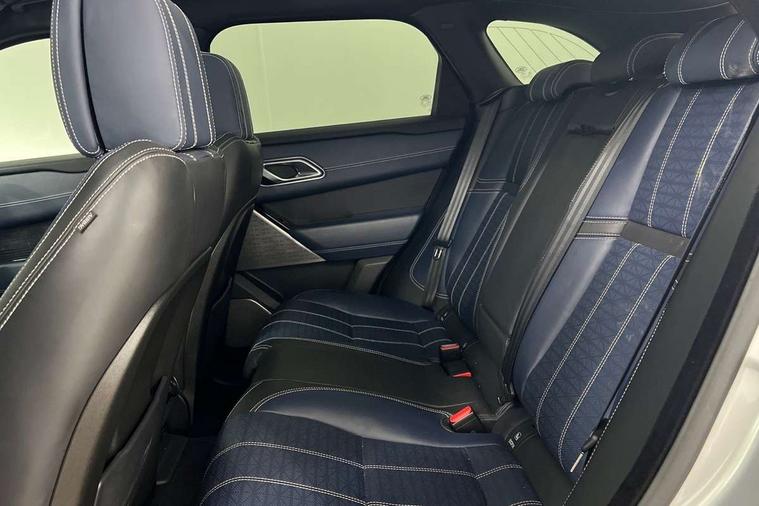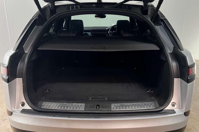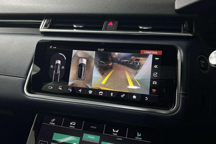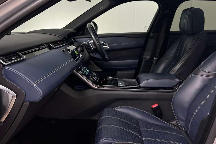 360 Parking aid sensors, Blind spot assist, Bluetooth connectivity, Brake pad wear indicator warning light, Driver condition monitor, InControl remote, InControl Touch navigation pro, Interactive Driver display instrument cluster, Land Rover InControl apps, Lane keep assist, Park Assist - Parallel Park/Parking Exit/Perpendicular park, Powered gesture tailgate/boot lid, Pro services and wifi hotspot, Rear traffic monitor, Service indicator, Speed proportional electronic power assisted steering (EPAS), Traffic sign recognition with adaptive speed limiter, Trip computer, Voice control system, 8 speed automatic transmission, Electronic air suspension, Open differential with torque vectoring by braking, Single speed transfer box, Digital Audio Broadcast radio-DAB, Steering wheel mounted controls, Acoustic laminated windscreen, Adaptive front lighting system, Auto dimming interior rear view mirror, Automatic headlamp levelling, Automatic headlights, Body coloured bumpers, Boot protection plate, Electric windows with one touch open/close and anti trap, Flush deployable exterior door handles, Follow me home headlights, Headlamp power wash, Heated rear window with timer, Heated windscreen + heated windscreen washer jets, Power fold, auto-dimming, heated door mirrors with approach lights, Rain sensor windscreen wipers, Rear fog lights, Rear wash/wipe, Standard roof, Tailgate/boot lid spoiler, Trailer stability assist, Velar and R-dynamic badge, 40:20:40 split folding rear seats, Adjustable front armrest, Bright metal pedals, Driver and passenger illuminated vanity mirror, Electric adjustable steering column, Isofix system on outer rear seats, Loadspace cover, Passive front headrests, Rear centre headrest, Satin chrome gearshift paddles, 350mm front brakes, 3x3 point rear seatbelts, Anti-lock braking system (ABS), Cornering brake control, Curtain airbags, Door side intrusion beams, Driver airbag, DSC - Dynamic Stability Control, Electronic brake force distribution, Electronic parking brake, Electronic traction control, Emergency brake assist, Front and rear seatbelt reminder, High speed emergency braking, Hill descent control, Hill launch assist, Low traction launch, Passenger airbag, Power operated child locks, Rear airbags, Roll stability control, Side airbags, Tyre pressure monitoring system, Unpainted brake calipers, Global lock and unlock switch on driver door, Immobiliser, Intrusion sensor, Keyless entry, Lock only switch on front passenger door, Perimetric alarm, Remote central locking,