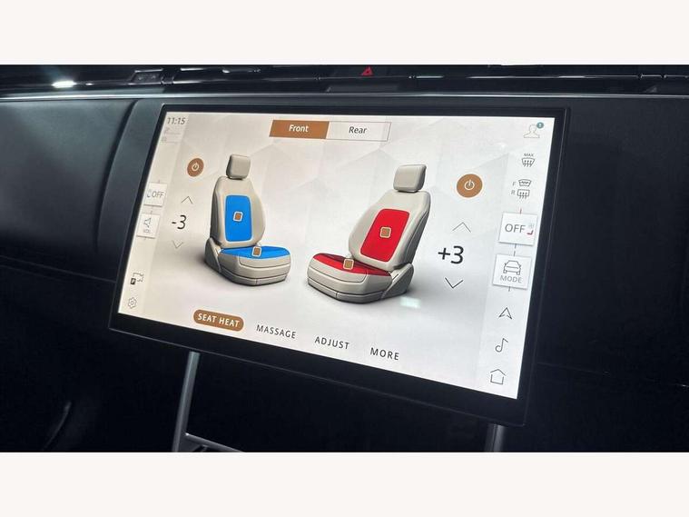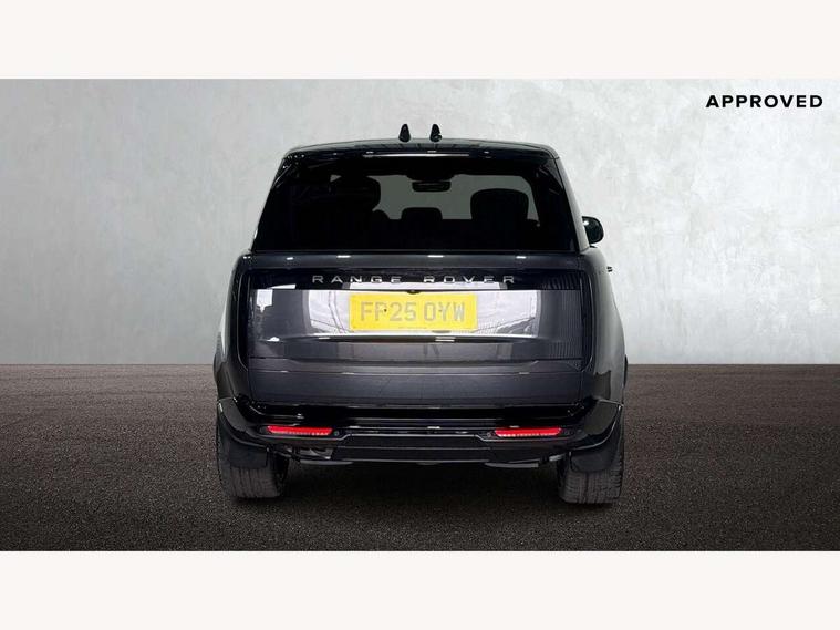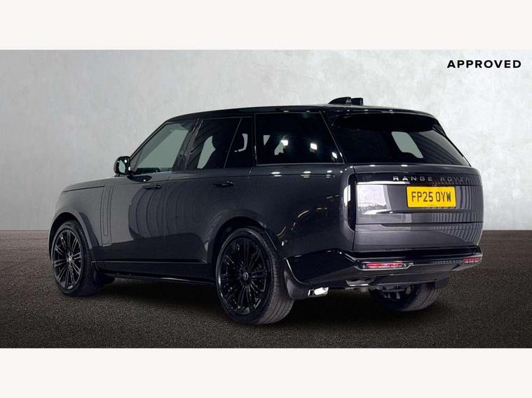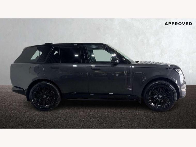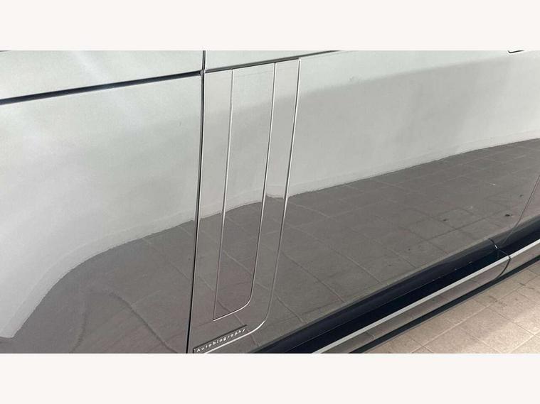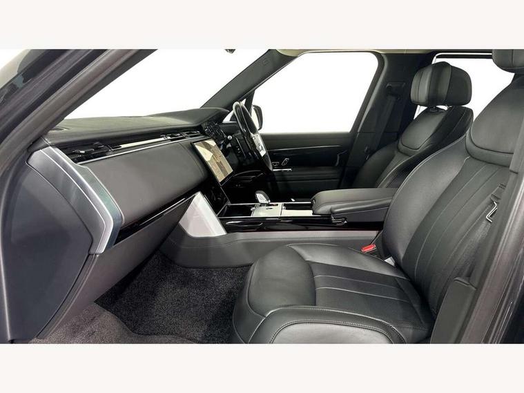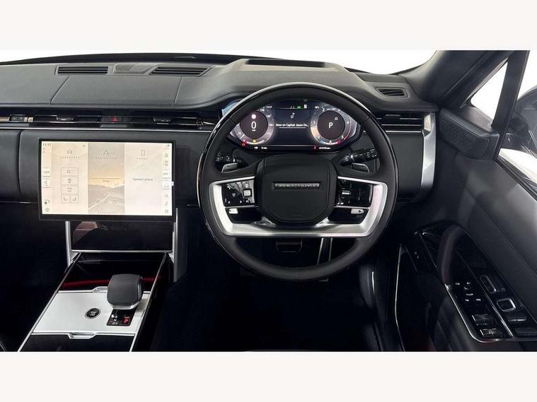 13.1" Touchscreen, 3D surround camera inc frwd traffic detection, vehicle clearance guidance, 3D view, clearsight ground view, manoevure light, 360 parking aid, wade sensing, Adaptive cruise control with steering assist, All Terrain Info Centre, All wheel steering, Blind spot assist, Bluetooth connectivity streaming, Configurable programs, Driver monitoring and response with driver facing camera & driver distraction monitor, Eco mode, Electric power assisted steering (EPAS), Emergency call service, Front and rear parking aid, Head up Display, Interactive driver display, Lane keep assist, Park assist, Powered gesture tailgate/boot lid, Rear collision monitor, Rear traffic monitor, Remote, Traffic sign recognition with adaptive speed limiter, Wi-Fi Enabled with data plan, Wireless Apple CarPlay/Android Auto, Wireless device charging, 8 speed automatic transmission, Active damper technology system, Adaptive dynamics, Adaptive off-road cruise control, All Wheel Drive (AWD), Automatic access height, Terrain Response 2 Auto, Twin speed transfer box, Digital Audio Broadcast radio-DAB, Meridian 1600W signature sound system, Pivi pro including smart settings, Connected navigation pro, nuance speech, USB socket, Acoustic laminated windscreen, Animated directional indicators, Automatic headlights, Automatic levelling headlights, Centre high mounted stop light, ClearSight interior rear view mirror, Electric windows with one touch open/close and anti trap, Engine cover, Flush deployable exterior door handles, Front and rear recovery eyes, Front fog lights including cornering lamp, Headlamp power wash, Heated rear window, Heated washer jets, Illuminated metal treadplates with Autobiography script, Laminated front and rear side glass, LED tail lights, Power fold, auto-dimming, heated door mirrors with approach lights, Rain sensing windscreen wipers, Rear boot, Rear fog lights, Rear side wing doors, Side repeater indicators in mirror, Solar attenuating windscreen, Standard bonnet, Winter wiper park position, 3 seat bench in 2nd row, 30 Colours configurable cabin lighting with 4 lighting zones, Air quality sensor, Auto folding loadspace cover, Bright metal pedals, Cabin air purification pro, Customer configurable single point entry, Driver and passenger front seat armrests, Easy boot loading, Ebony Carpet, Electric rear side window sunblinds, Four zone climate control, Front and rear cupholders, Front and rear grab handles, Front centre console refrigerator compartment, Front head restraints, Heated steering wheel, Hook in load space, Loadspace light, Luggage tie down in loadspace, Multifunction steering wheel, Rear centre armrest, Rear head restraints, Rear ISOFIX, Satin chrome gearshift paddles, Single front passenger seat, Soft close doors, SV bespoke carpet mats, Twin blade sunvisors with Illuminated vanity mirrors, Upper and lower glovebox, Online pack with data plan - Range Rover, 3x3 point rear seat belts, Anti-lock braking system (ABS), Black brake calipers, Brake hold function, Cornering brake control (CBC), Customer configurable autolock, DSC - Dynamic Stability Control, Electronic brake force distribution, Electronic parking brake, Electronic traction control, Emergency braking, Front airbags with passenger seat occupant detector, Front side airbags, Hill descent control, Hill launch assist, Illuminated seat belt buckles, Low traction launch, Occupant protection assist, Power operated child locks, Roll stability control, Tyre pressure monitoring system (TPMS), Immobiliser, Intrusion sensor and alarm, Keyless entry, Locking wheel nuts, Remote central locking, Noble chrome controls,