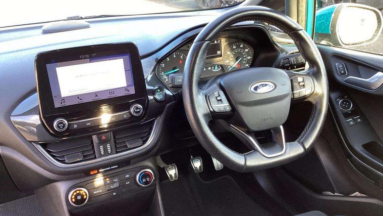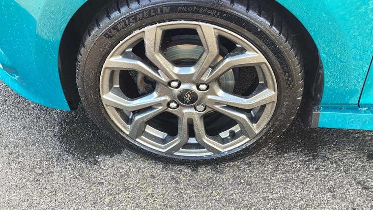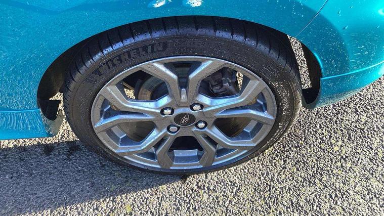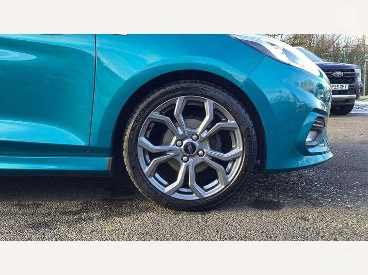 Bluetooth system, Electric power steering, Lane keep assist, Speed limiter, SYNC Emergency Assistance, Trip computer, Sports suspension, 2 USB ports, Auxiliary input socket, Ford SYNC 3 DAB radio, apple car play and android auto with voice control, Steering wheel mounted controls, USB connection, Automatic headlights, Body colour bumpers, Body colour door handles, Body colour electric adjustable heated door mirrors, Body colour large rear spoiler, Body styling kit, Chrome door handles, Cornering front fog lights, Electric front windows/one touch facility, LED daytime running lights, Quickclear heated windscreen, Rear wiper, Tinted glass, Upper front grille chrome surround, 12V Accessory socket in centre console, 3 spoke flat bottomed leather steering wheel, 60/40 split folding rear seat, Adjustable head restraints, Black headlining, Boot carpet, Centre console with armrest, Chrome inner door handles, Cloth upholstery, Footwell illumination, Front and rear velour floor mats, Front map reading lights, Front seat and rear pockets, Height adjustable driver's seat, Illuminated cup holders, Illuminated glovebox, Leather gear knob, Leather trimmed handbrake handle, Load area light, Manual air conditioning, Overhead console with sunglasses holder, Pollen filter, Rake/reach adjustable steering wheel, Rear centre head restraint, Sports front seats, Sports pedals, 3 point seatbelts on all rear seats, ABS+EBA, Curtain airbags, Driver and passenger airbags, Drivers knee airbag, ESP + traction control, Front passenger airbag deactivation, Front side airbags, Hill start assist, Seatbelt warning, Tyre pressure monitoring system, Immobiliser, Keyless start with 'Ford Power' starter button, MyKey system, Remote central locking, Thatcham Cat.1 alarm,
