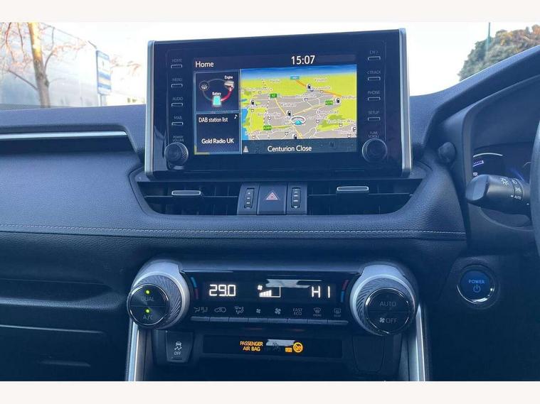 7" colour TFT display, Adaptive cruise control with lane trace assist, Adjustable speed limiter, Apple car play and Android auto, Bluetooth system, Cyclist Detection, Drive mode selector, eCall emergency call system, ECO-driving indicator, Electric power steering, EV audible alert, Hybrid system indicator, Lane departure warning system, Lights on warning, Night Time Pedestrian Detection, Pedestrial detection, Power boot opening and closing, Rear parking camera, Rear parking sensors, Remote boot door release in cabin, Tachometer, Touch 2 Go navigation system including 3D maps and voice control, Traffic sign recognition, Trip computer, Voice control system, Vehicle Stability Control (VSC), 6 speakers, 8" Multimedia display touch screen, Auxiliary socket for external MP3 player, DAB audio, Steering wheel mounted audio controls, Toyota touch media system, USB connection, Auto dimming interior mirror, Auto high beam, Automatic headlamp levelling, Automatic headlights, Automatically retractable door mirrors, Black roof rails, Body colour door handles, Body colour door mirrors, Body colour rear spoiler, Body coloured bumpers, Body coloured Shark-fin antenna, Electric adjustable door mirrors, Emergency brake-light signal (EBS), Follow me home headlights, Front fog lights, Headlight cleaners, Heated door mirrors, LED daytime running lights, LED High mounted stop lamp, LED rear lights, Meshed upper front grille, Parabola LED headlights, Power front windows, Power rear windows, Privacy glass, Rear screen wiper - intermittent, Rear windscreen defogger, Silver front under-run, Silver rear under-run, Trailer sway control, Turning signal integrated indicators in door mirrors, 3 rear headrests, 60/40 split fold rear seat back, Boot light, Clean air filter, Cloth upholstery, Driver and front passenger personal light, Driver and front passenger Whiplash Injury Lessening seats, Driver and passenger sunvisors with illuminated vanity mirrors, Dual sided deck board in boot, Dual zone automatic air conditioning, Floor mats, Folding rear centre armrest, Front and rear bottle holders, Front centre armrest, Front footwell lights, Front headrests, Front/rear roof mounted assist grips, Grey roof lining, Isofix child seat preparation, Leather gear shift with chrome surround, Manual telescopic and tilt 3-spoke leather steering wheel with Chrome insert, Manually height-adjustable sliding and reclining driver seat, Manually reclining and sliding front passenger seat, Pollen filter, Rear coat hooks, Rear door armrests, Rear passenger air vents, Reclining rear seats, Satin chrome interior door handles, Sunglasses holder, 3x3 point rear seatbelts, ABS/EBD, Adjustable front driver and passenger seat belt extender, Brake assist function, Child proof door locks, Collision mitigation braking system, Driver/Front Passenger airbags, Driver/front passenger side airbags, Drivers knee airbag, Electronic parking brake, Electronic Stability Programme (ESP), Emergency brake light system (EBS), Front and rear curtain airbags, Front and rear seatbelt reminder, Hill start assist, Passenger airbag cut-off device, Seatbelt pretensioners with load limiters, Traction control, Tyre pressure warning, Alarm/immobiliser, Glass-breaking alarm sensors, Light - on and Key in reminder, Remote central locking, Smart entry + Smart start, Speed sensitive auto door locking, Tilt detection sensors, Piano black centre console with silver insert, Soft-touch black lower dashboard, Soft-touch black upper dashboard with silver insert, Full size spare wheel,