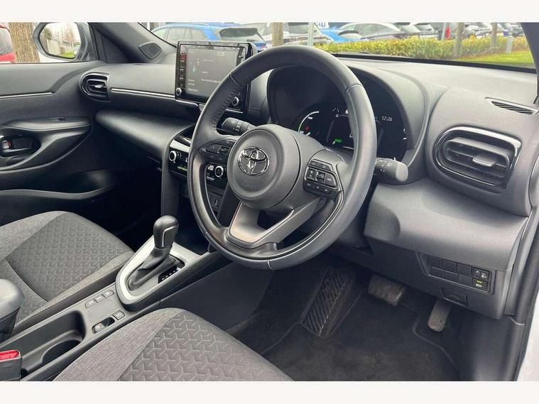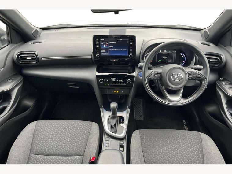 7" Multi information display screen, 8" Toyota touch 2 multimedia system with Smartphone integration with Apple CarPlay and Android auto, Adjustable speed limiter, Bluetooth connectivity, Driver attention alert system, eCall emergency system, Electric power steering, Full range intelligent adaptive cruise control, Hybrid system indicator, Key reminder warning, Lane trace assist, Multimedia, audio, telephone and voice recognition switches on steering wheel, My T Connected services, Pre-collision system enhanced with emergency steering assist, Reversing camera, Road sign assist - RSA, Steering assisted vehicle stability control, 6 speakers, DAB Digital radio, USB connection, 3rd brake light, Acoustic windscreen glass, Aluminium roof rails, Anti-jam protection on power windows, Auto high beam [AHB] with on/off switch, Automatic headlights, Black lower front grille, Black Shark-fin antenna, Black upper front grille, Black wheel arch mouldings, Body colour door handles, Body colour front bumper, Body colour rear bumper, Electric adjustable heated door mirrors, Follow me home headlights, Front and rear electric windows with auto up/down function, Front intermittent wipers, Headlight cut off reminder, Indicators integrated on door mirrors, Intermittent rear wiper, LED daytime running lights guide, LED front fog lights, LED front light guide, LED Indicators, LED projector headlights, LED rear light guide, Manual headlight levelling, Manually retractable door mirrors, Noise reduction layer on windscreen, Privacy glass, Rain sensor, Rear LED lights with sequential indicators, Rear side wing doors, Rear spoiler, Rear window defogger, 12v power outlet - front, 2x Rear coat hooks, 3 seat bench in 2nd row, 3 spoke leather steering wheel, 40:20:40 split folding rear bench seat, Adjustable speed limiter switch on steering wheel, Auto air conditioning, Black roof lining, Boot light, Central armrest, Centre console in light blue ambent lighting, Driver and front passenger personal lights, Fabric door trim, Fabric upholstery, Footwell in light blue ambient lighting, Front console box, Front cup holders, Front head restraints, Glovebox, Height adjustable driver's seat, Height adjustable front passenger seat, Hooks for luggage holding belts, ISOFIX child restraint system, Lane departure alert switch on steering control, Leather gearshift, Light blue ambient lighting on front doors, Manual telescopic and tilting steering wheel, Mirror on driver and passenger sun visor, Pollen air filter, Rear cup holders, Rear head restraints, Single front passenger seat, Soft tonneau cover, 3x3 point rear seat belts, ABS+EBD+Brake assist, Driver and passenger central airbags, Driver and passenger front airbags, Driver and passenger side airbags, Electronic parking brake, Emergency brake light system (EBS), Front seat belt reminder, Hill start assist control (HAC), Passenger airbag on/off switch, Pre-collision system with pedestrian and cyclist detection, Rear door child safety locks, Rear passenger side airbags, Rear seat belt reminder, Traction control, Tyre pressure warning system, Immobiliser, Intrusion alarm, Keyless smart entry with push button start, Power door locks, Power passenger window lock, Remote door lock, Tyre repair kit,