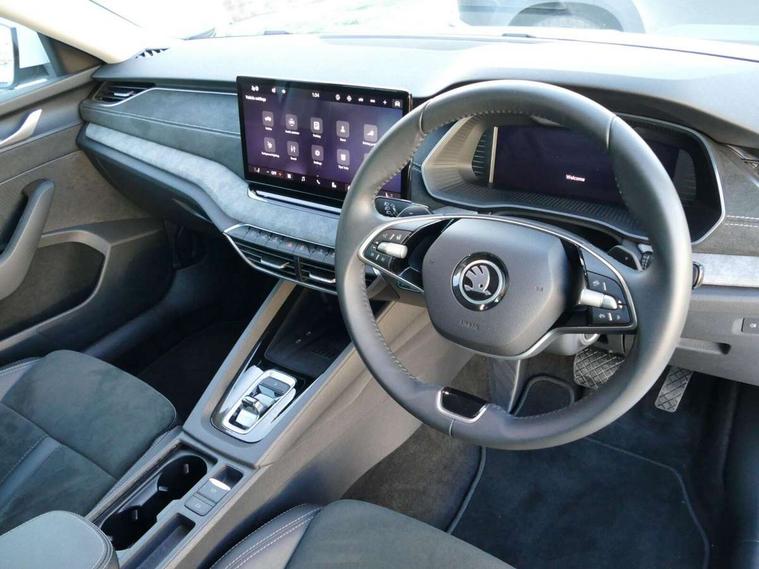 1x USB Typc C port in rear view mirror, 4x USB Type C ports - 2x in front centre console and 2x in rear (45W), Drive mode selection, Driver fatigue sensor, eCall emergency system, Electro-mechanical power steering, Front and rear parking sensors with manoeuvre assist, Front assist system, Traffic jam assist, Traffic sign recognition, Turn Assist, Virtual Cockpit - 10.25" digital display, Voice control system, Wireless charging (15W) with cooling function, Wireless SmartLink for Apple CarPlay and Android Auto, 13" touchscreen display with navigation, DAB Digital radio, Aero front windscreen wipers with intermittent function, Auto dimming rear view mirror, Body colour bumpers, Body colour door mirrors and handles, Chrome grille surround, Chrome roof rails, Chrome strip in lower front bumper, Chrome window surrounds, Electric front and rear windows, Heated rear windscreen, High level third brake light, Ice scraper in fuel cap, LED daytime running lights, LED Headlights, Logo projection in front doors, Rain and light sensors, Rear fog light on one side, Rear privacy glass, Rear side wing doors, Rear spoiler, Rear window wiper, 12 volt socket in boot, 3 rear headrests, 3 seat bench in 2nd row, 4 foldable roof handles, Electric auxiliary air heater, Front head restraints, Heated front seats, Illuminated glovebox, Interior door handles in dark chrome, Jumbo Box storage, Luggage compartment lighting x2 lights, Mechanical rear seat release from boot, Single front passenger seat, Steering wheel in black leather with black stitching, Storage compartments in left and right of boot, Sun visors with mirrors, Sunglasses storage, Ticket holder, Umbrella in door panel, Unsplit rear bench seat, split folding backrest with centre armrest with cupholder, Comfort package - Octavia Estate, Simply clever package premium - Octavia, 3x3 point rear seat belts, Alarm with interior monitoring, tilt sensor and back up horn, Curtain airbags and front side airbags, Driver and front passenger airbags, Drivers knee airbag, Electronic parking brake, ESC including ABS, EBV, MSR, ASR, EDS, HBA, DSR, Front central airbag, Hill hold assist, ISOFIX on front passenger seat and outer rear seats, Passenger airbag deactivate switch, Three point seat belts in front and rear, Two tone horn, Tyre pressure monitor, Visual and acoustic seat belt reminder, Warning reflectors in front door, Anti-theft wheel bolts, Keyless start/stop, Remote central locking, Chrome air vent surrounds,