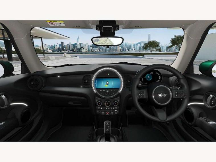 Apple CarPlay, Automatic start/stop function with brake energy recuperation, Compatible mobile phone bluetooth with audio streaming, Cruise control with brake assist, Electro-mechanical speed dependant steering assistance, Flexible car sharing preparation, Instrument cluster, Mini E-call, MINI TeleServices, On board computer, Service interval indicator, Double Vanos system, Fully variable valve control, High precision injection, Performance Control, Steptronic transmission with double clutch, 8.8" touchscreen with LED ring, FM tuner and DAB digital radio, 3rd brake light, Automatic headlight activation switch, Body colour fuel filler cap, Chrome border high gloss black slats radiator grille, Dynamic brake lights, Electric front windows, Exhaust tailpipe on left with chrome finisher, Heated rear window, Heated windscreen washer jets, LED headlight with closed ring and daytime driving lights, Metal door sill strips with MINI imprint, Model logo Cooper on right of tailgate, Rain sensor window wipers, Rear fog lights, Rear LED lights with union jack design, Rear window wiper, Side scuttle panel with integrated indicator, Sun/heat protection glass, White indicator lenses, 12V Accessory socket in centre console, 2 seat bench in 2nd row, 4 lashing eyes in luggage compartment, 60/40 split folding rear seat, Ambient lighting, Carbon black colour line - Knee roll and door armrest, Chrome interior highlights, Cupholders, Front and rear head restraints, Front and rear isofix with front passenger airbag deactivation, Front floor mats in velour, Glove compartment, Height and length steering column adjustment, Interior lighting with 12 different colours across the dashboard, underneath door bezel with illuminated laser-engraved design on central display, Leatherette gearshift lever and handbrake gaiters, LED reading lights, vanity mirror lights, front foot well light and spotlight on front seats, Manual air conditioning, Mechanical seat adjustment - forward/back & backrest for front seats and driver seat height adjust, Multifunction steering wheel, Passenger seat height adjuster, Satellite grey headlining including grab handles and clothes hooks, Single front passenger seat, Sport leather steering wheel with speed limiter and audio/communication controls, Storage compartments in doors, Sunvisors with vanity mirrors, 3 point seatbelts on all four seats, 6 Airbags - front, side, head and seat belt tensioners, Anti-lock braking system (ABS), DSC - Dynamic Stability Control, Front and rear disc brakes, Single tone fanfare horn, Tyre pressure monitoring system, Alarm system with tilt sensor, monitoring doors, bonnet interior and tailgate, Electronic vehicle immobiliser, Start/stop toggle with keyless go, Piano black interior trim, Tool kit, Tyre repair kit,
