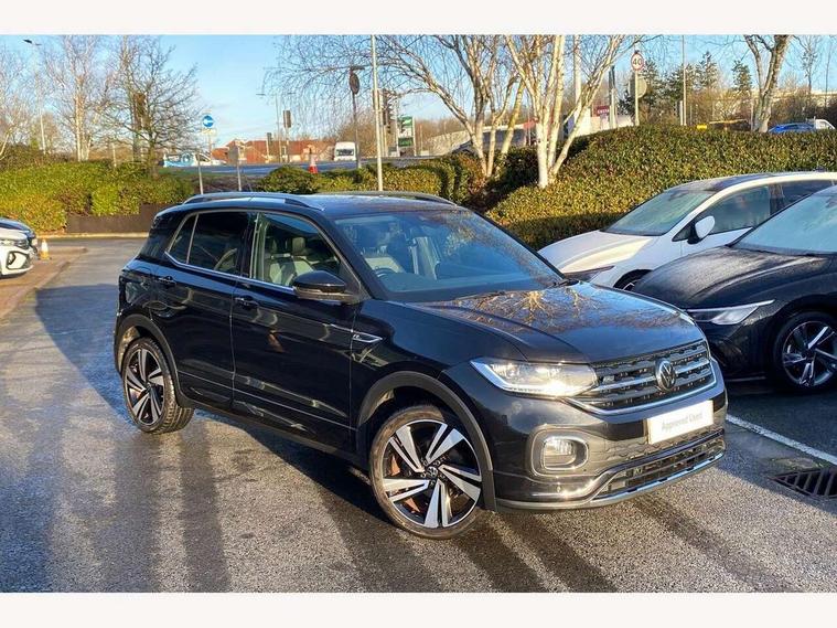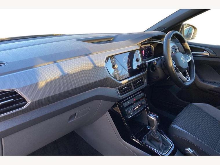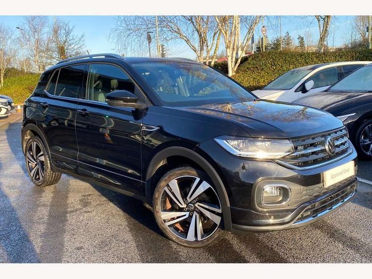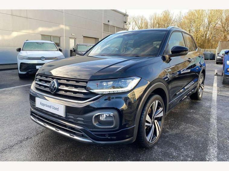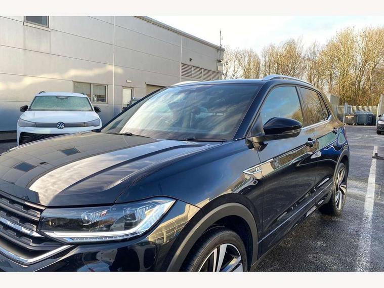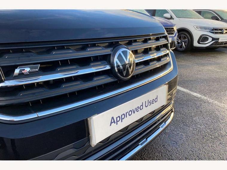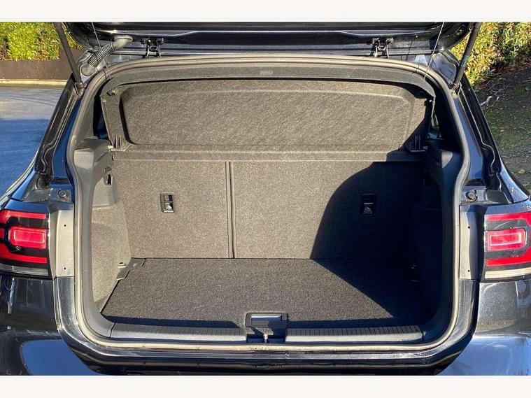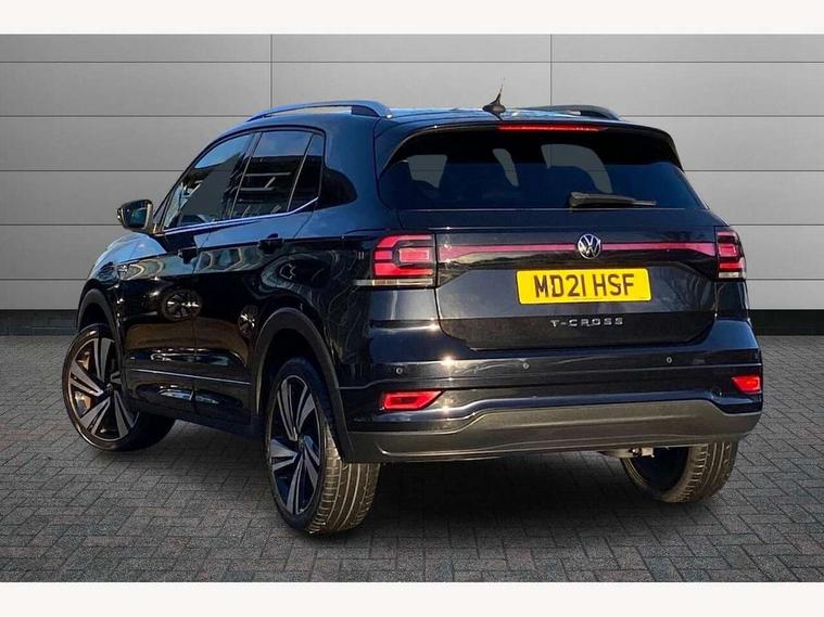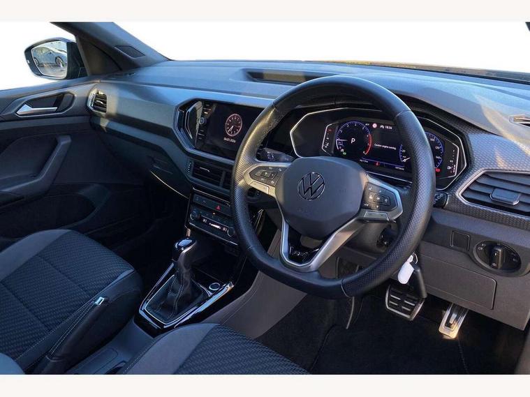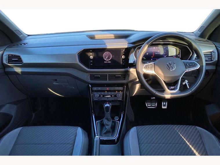 'Lights On' Reminder warning buzzer, 2D/3D map view, Adaptive cruise control including front assist, forward collision warning, autonomous emergency braking, speed limiter, Blind spot monitoring, Bluetooth telephone and audio connection for compatible devices, Car information display, Digital Cockpit Pro - Active info display, Driver alert system, eCall emergency call system, Lane assist, Multifunction computer with visual gear change recommendation for fuel consumption, Operating permit alteration, Power assisted speed sensitive steering, Speed limit display, Speedo, rev counter, electronic odometer, trip, service interval display, exterior temperature and fuel gauge, Stop/start system, Warning sound and light for doors and tailgate open, Warning sound and light for front seatbelts unfastened, We connect plus preparation, Wireless Car net app connect with Apple CarPlay, combined functionality of Apple CarPlay/Android Auto and MirrorLink, Battery regeneration during braking, Misfuel prevention device, 2x USB connection with USB charging sockets and in rear centre console, DAB Digital radio receiver, Diversity antenna for FM reception, Multi device interface (MDI) with USB connection, Music playback - MP3, WMA and AAC files, Premium USB cable for Apple or Android smartphone compatibility, Simultaneous pairing of 2 compatible mobile devices, SMS Functionality, Three route options - Fast, Short, Eco, Title and cover art display, Automatic dimming interior rear view mirror, Automatic hazard lights activation under emergency braking, Body colour door handles, Body colour rear roof spoiler, Body coloured bumpers, Dusk sensor + automatic driving lights, Dynamic headlight range control with self adjusting whilst driving, Front and rear electric windows, Front fog lights with static cornering function, Galvanised body, Heated rear window, High level 3rd brake light, LED dipped and main beam headlights with automatic range adjustment including separate unique signature LED daytime running lights, Lower door sills and door pillars in black, Manual coming/automatic leaving home lighting function, Radiator grille with chrome trim and chrome bezel front fog lamp, Rain sensor, Rear fog light on one side, reversing light on both sides, Rear lights incorporating LED technology, Rear tinted glass 65% approx light absorbing from B pillar backwards, Rear window aerial, Rear windscreen washer and wiper with interval delay, Reflectors in all doors, Silver roof rails, Stainless steel door sill protection, Tailgate with integrated roof spoiler, Unique R Line badging, Windscreen wipers/ intermittent wipe + 4 position delay, 12V Accessory socket in centre console, 2 Front and rear reading lights incorporating LED technology, 2 Zone electronic climate control with automatic air recirculation, 3 rear head restraints and 3 rear three point seat belts with ECE label, 60/40 split folding rear seat backrest, Ambient lighting and sourround lighting, Black headlining, Branded points of interest, Brushed stainless steel pedals, Carbon flag cloth upholstery, Drawer under drivers seat, Driver and front passenger sunvisor with vanity mirror, Driver's sunvisor with ticket holder, Dust and pollen filter, Front and rear carpet mats with contrast stitching, Front centre armrest with storage compartment, Front footwell illumination, Front seat back storage pockets, Front seat R Line logo with rear seat backrest, Front sports seat with height and lumbar adjustment, Glovebox, Heating and fresh air system with 4 stage blower, Height/reach adjust steering wheel, Instrument lighting white adjustable panel illumination, Interior light with delay, Isofix child seat preparation for 2 rear child seats, Leather trimmed three spoke multifunction steering wheel with contrast stitching and aluminium inserts with R Line logo, Luggage compartment cover, Luggage compartment lighting, Moveable and foldable Rear bench seat, Scuff plates in door apertures, Steering wheel paddle shift, Storage compartment in drivers and front passengers door, Variable boot floor, R Line styling pack - T-cross, Anti-lock Braking System (ABS) with Hydraulic Brake Assist (HBA), Automatic post collision braking system, Driver and front passenger safety-optimised head restraints, Drivers and Front Passengers airbags with front passengers airbag deactivation switch, ESC with EDL, ASR, EDTC and trailer stabilisation function, Extended and proactive pedestrian protection, Front and rear curtain airbags, Front seat side impact airbags, Height adjustable 3 point automatic front seatbelts with pretensioners, Hill start assist, Pre crash preventive occupant protection, Rigid safety cell with front and rear crumple zones, Single torn horn, Tyre pressure loss indicator, Volkswagen roadside assistance, Alarm with interior protection and deactivation via infotainment system, Child security locks in rear doors, Electronic engine immobiliser, Remote tailgate unlocking using key fob, Race decorative inserts in dash and doors, 18" Nevada black diamond turned alloy wheels + anti theft wheel bolts, Breakdown kit,