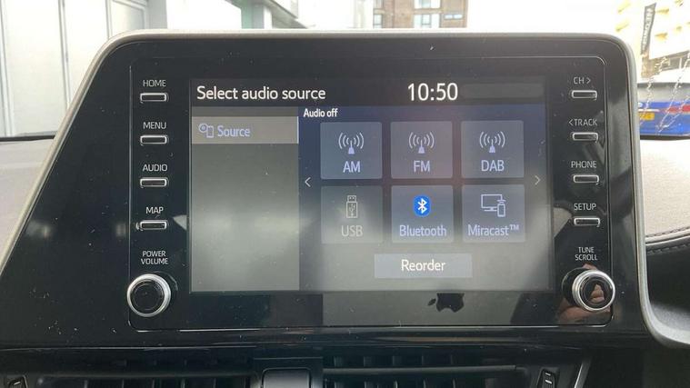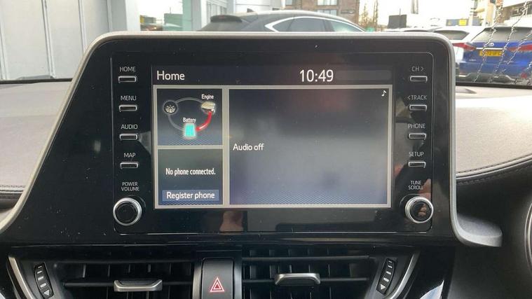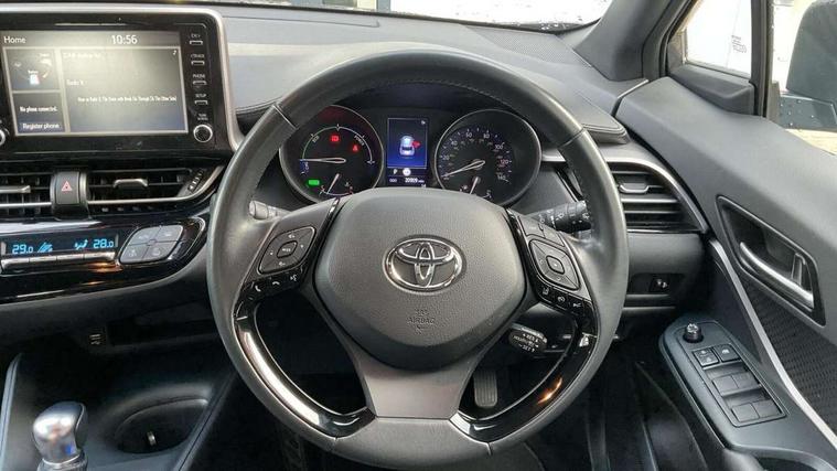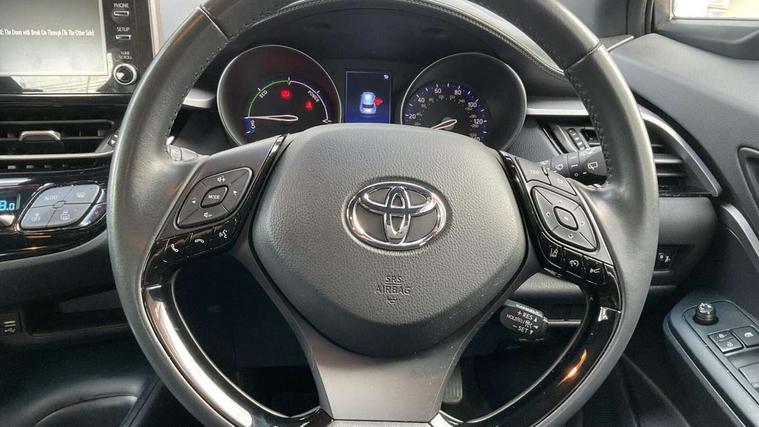 4.2" coloured TFT screen for multi-information display, Adaptive cruise control, Bluetooth connectivity, E-call, Electric power steering, Hybrid system indicator, Lane departure alert with steering control, Lane trace assist, Push button start, Push button tailgate release, Remote boot door release in cabin, Remote boot door release in key, Reversing camera, Road sign assist - RSA, Smart voice assist, Trip computer, Voice recognition, Vehicle Stability Control (VSC), 6 speakers, AM/FM radio, DAB Radio (Digital Audio Broadcasting), Toyota touch 2 multimedia system with 8" display, USB connector, Wi-fi connectivity, Anti-jam protection on power windows, Auto high beam, Auto up and down function on all power windows, Automatic headlights, Automatic headlights cut-off, Black and body coloured rear bumper, Black lower front grille, Black upper front grille, Body colour door handles, Body colour door mirrors, Body colour front spoiler lip, Body coloured front bumper, Boot door release with push button, Electric heated door mirrors, Follow me home headlights, Front and rear power windows, Front fog lights, Hard tonneau cover, Headlight cut off reminder, Honeycomb lower front grille, LED daytime running lights, LED High mounted stop light, LED rear brake lights, LED rear combination lights, Manual headlight levelling, Manually retractable door mirrors, Noise reduction layer on front windows and windscreen, Power adjustable door mirrors, Rear side wing doors, Rear spoiler, Rear tailgate, Rear window defogger, Rear window wiper, Reflective LED headlights, Shark fin antenna, UV-filter on driver and passenger windows, UV-filter on rear windows, 12v power outlet - front, 3 rear headrests, 3 seat bench in 2nd row, 3 spoke leather steering wheel, 60/40 split folding rear seat, Adjustable rear headrests, Adjustable speed limiter switch on steering wheel, Assist grips front and centre pillar, Audio and telephone switches on steering wheel, Black front door assist grips, Boot light, Chrome interior door handles, Cloth upholstery, Driver and front passenger personal light, Driver and front passenger Whiplash Injury Lessening seats, Dual zone automatic air conditioning, Floor mats, Front cupholders, Front head restraints, Front sports seats, Glovebox with internal light, Hooks for luggage holding net, Humidifying Nanoe air purifier, Illuminated entry system, Isofix attachments on rear seats, Leather gearshift, Light on driver sun visor, Light on passenger sun visor, Manual telescopic steering wheel, Manual tilt steering wheel, Manually adjustable lumbar support on driver seat, Manually height adjustable driver seat, Manually height adjustable front passenger seat, Manually reclining driver seat, Manually reclining front passenger seat, Manually sliding driver seat, Manually sliding front passenger seat, Microphone on front personal light, Mirror on driver sun visor, Mirror on passenger sun visor, Multimedia switches on steering wheel, Pollen filter, Shopping bag hooks, Single front passenger seat, Slow opening on lower glovebox, Voice recognition switch on steering wheel, 16 Disk front wheel brake, 3x3 point rear seatbelts, ABS+EBD+Brake assist, Electronic parking brake, Front and rear seatbelt reminder, Front passenger airbag on/off switch, Hill start assist control (HAC), Pre collision system with pedestrian detection, Pre-tensioners and force limiters, Rear door child safety locks, SRS Airbags - Driver + Front passenger, front side, front and rear curtain and driver's knee airbags, Toyota safety sense, Tyre pressure monitoring system, Tyre pressure warning system, Acoustic vehicle alert system (AVAS), Glass-breaking alarm sensors, Immobiliser, Intrusion alarm, Intrusion sensor, Motion sensor alarm, Power door locks, Power passenger window lock, Remote central locking, Black lower dashboard, Black upper dashboard, Grey deco line on upper dashboard, Matte black centre console, Tyre repair kit,