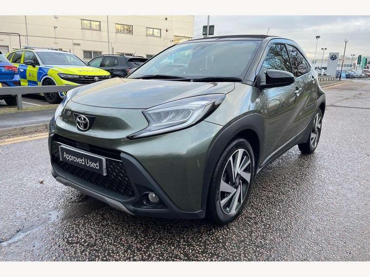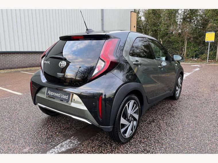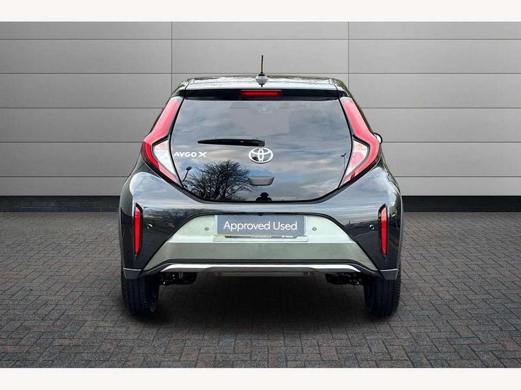 4.2" TFT colour screen, Adjustable speed limiter, Analogue speedometer, Bluetooth connectivity, Digital tachograph, Driver attention alert system, eCall emergency call system, ECO-driving indicator, Electric power steering, Front and rear parking sensors with auto brake, Intersection turn assist, Key reminder warning, Noise reduction kit, Pre collision system with emergency steering assist, Remote boot door release on key, Reversing camera with static guide lines, Smart entry and push button start, Speed limit display, Start and stop, Wireless charger, Wireless Smartphone Integration includes Apple CarPlay and Android auto, Vehicle Stability Control (VSC), 4 speakers, 9" HD multimedia display touch screen with Toyota smart connect, DAB digital audio broadcast, USB connector, Auto headlights, Auto wipers, Automatic headlights cut-off, Automatic high beam On/Off switch, Bicycle towing hook, Black fog light surrounds, Black side protection mouldings, Black wheel arch mouldings, Body colour door handles, Body coloured front bumper, Boot door scuff plate, Eclipse black rear bumper, Electric heated door mirrors, Follow me home headlights, Front and rear underruns in silver, Front fog lights, Front power windows, Gloss black door mirrors, Gloss black upper front grille, Headlight cut-off reminder, LED daytime running lights guide, LED front light guide, LED High mounted stop lamp, LED projector headlights, Manual day/night rear view mirror, Manual headlight levelling, Pagoda roof, Power adjustable door mirrors, Privacy glass, Rain sensor, Rear combination lights LED bulb type, Rear side wing doors, Rear windscreen defogger, Rear windscreen wiper, Remote hazard lights system, Short antenna, Variable intermittent windscreen wipers, 12v power outlet - front, 2 seat bench in 2nd row, 3 spoke leather steering wheel, 50/50 split folding rear seat, Adhesive roof headlining, Adjustable speed limiter switch on steering wheel, Audio and telephone switches on steering wheel, Auto air conditioning, Black roof lining, Body colour satin anodised insert on steering wheel, Boot light, Centre room light, Chrome interior door handles, Chrome surround on air conditioning buttons, Clean air filter, Floor mats, Front and rear cup holders, Front head rest deco art, Front head restraints, Gear shift indicator, Height adjustable driver seat, Intelligent adaptive cruise control switch on steering wheel, ISOFIX child restraint system on rear seats, Lane departure alert switch on steering wheel, Leather gearshift knob, Light blue ambient lighting in centre console, Manual tilt steering wheel, Manually reclining and sliding driver seat, Manually reclining and sliding front passenger seat, Multimedia switches on steering wheel, Paddle shift levers on steering wheel, Partial synthetic leather upholstery, Pollen filter, Rear door pockets, Rear head restraints, Remote air-conditioning system, Satin silver insert on gear shift knob, Single compartment glovebox with lights, Single front passenger seat, Soft tonneau cover, Sun visors with mirror on driver and passenger side, Voice recognition switch on steering wheel, Toyota safety sense pack - Aygo X, Anti lock braking system + Electronic brake force distribution, Child safety door lock, Emergency brake light signal (EBS), Hill start assist control (HAC), Passenger airbag on/off switch, Seat belt reminder for front and rear seats, Supplement restraints system (SRS) - 6 airbags, Traction control, Tyre pressure warning system, Immobiliser, Remote power door locks, Black wheel centre caps, Tyre repair kit,