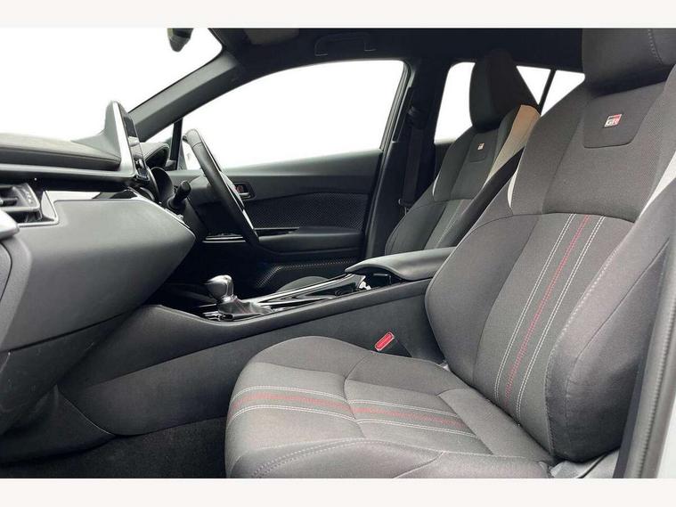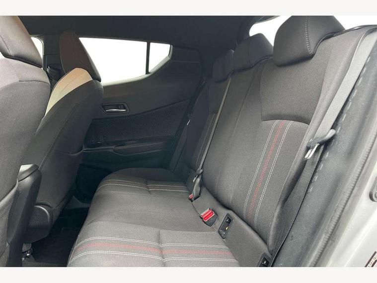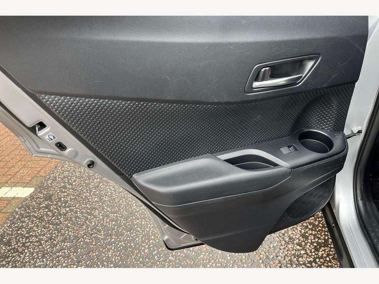 4.2" coloured TFT screen for multi-information display, Adaptive cruise control, Bluetooth connectivity, E-call, Electric power steering, Hybrid system indicator, Lane departure alert with steering control, Lane trace assist, Push button tailgate release, Remote boot door release in cabin, Remote boot door release in key, Reversing camera, Road sign assist - RSA, Simple Intelligent parking assist, Smart voice assist, Touch 2 Go navigation system, Trip computer, Voice recognition, Wireless smartphone integration, Vehicle Stability Control (VSC), 6 speakers, AM/FM radio, DAB Radio (Digital Audio Broadcasting), Toyota touch 2 multimedia system with 8" display, USB connector, Wi-fi connectivity, Adaptive front light system, Adaptive LED Headlights, Anti-jam protection on power windows, Auto high beam, Auto up and down function on all power windows, Automatic headlight levelling, Automatic headlights, Automatic headlights cut-off, Black and body coloured rear bumper, Black upper front grille, Body colour door handles, Body colour door mirrors, Body coloured front bumper, Boot door release with push button, Chrome front lower bumper, Electric heated door mirrors, Follow me home headlights, Front and rear power windows, Front spoiler lip in black, Headlight cut off reminder, Honeycomb lower front grille, LED daytime running lights, LED fog lights, LED front light guide, LED High mounted stop light, LED rear brake lights, LED rear combination lights, Noise reduction layer on front windows and windscreen, Power adjustable door mirrors, Privacy glass, Rain sensor, Rear sequential indicators, Rear side wing doors, Rear spoiler, Rear tailgate, Rear window defogger, Rear window wiper, Shark fin antenna, UV-filter on driver and passenger windows, UV-filter on rear windows, 12v power outlet - front, 3 rear headrests, 3 seat bench in 2nd row, 3 spoke perforated leather steering wheel, 60/40 split folding rear seat, Adjustable rear headrests, Adjustable speed limiter switch on steering wheel, Assist grips front and centre pillar, Audio and telephone switches on steering wheel, Black front door assist grips, Blue ambient lighting on front cup holders, Blue ambient lighting on front doors, Boot light, Chrome interior door handles, Cloth upholstery, Driver and front passenger personal light, Driver and front passenger Whiplash Injury Lessening seats, Driver and passenger seatback pockets, Dual zone automatic air conditioning, Floor mats, Front cupholders, Front head restraints, Front sports seats, Glovebox with internal light, Hard tonneau cover, Heated driver and front passenger seats, Hooks for luggage holding net, Humidifying Nanoe air purifier, Illuminated entry system, Isofix attachments on outer rear seats, Leather gearshift, Light on driver sun visor, Light on passenger sun visor, Manual telescopic steering wheel, Manual tilt steering wheel, Manually height adjustable driver seat, Manually height adjustable front passenger seat, Manually reclining driver seat, Manually reclining front passenger seat, Manually sliding driver seat, Manually sliding front passenger seat, Microphone on front personal light, Mirror on driver sun visor, Mirror on passenger sun visor, Multimedia switches on steering wheel, Pollen filter, Power adjustable lumbar support on driver seat, Shopping bag hooks, Single front passenger seat, Slow opening on lower glovebox, Voice recognition switch on steering wheel, Tech with parking sensor pack - C-HR, 16 Disk front wheel brake, 3x3 point rear seatbelts, ABS+EBD+Brake assist, Electronic parking brake, Front and rear seatbelt reminder, Front passenger airbag on/off switch, Hill start assist control (HAC), Pre collision system with pedestrian detection, Pre-tensioners and force limiters, Rear door child safety locks, SRS Airbags - Driver + Front passenger, front side, front and rear curtain and driver's knee airbags, Toyota safety sense, Tyre pressure monitoring system, Tyre pressure warning system, Acoustic vehicle alert system (AVAS), Glass-breaking alarm sensors, Immobiliser, Intrusion alarm, Intrusion sensor, Motion sensor alarm, Power door locks, Power passenger window lock, Remote central locking, Black lower dashboard, Black upper dashboard, Piano black console, Silver deco line on upper dashboard, 19" Black machined alloy wheels, Tyre repair kit,