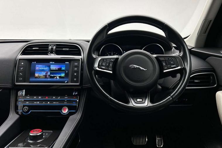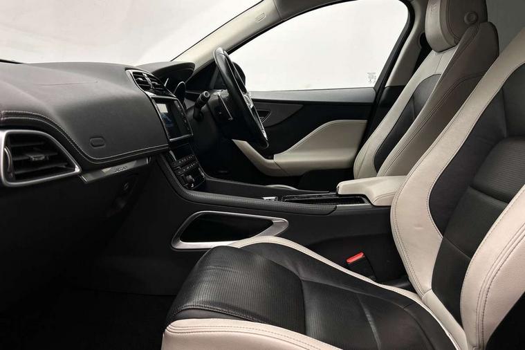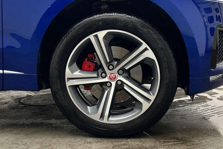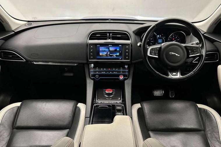 Auto speed limiter, Front parking aid, Lane departure warning system, Outside temperature gauge, Push button starter, Rear parking aid, Service interval indicator, Traffic sign recognition, Trip computer, Variable PAS, Adaptive dynamics, All terrain progress control, Configurable dynamics, Bluetooth connectivity including audio streaming, DAB Digital radio, Dynamic volume control, InControl app, InControl protect, 'S' Body kit, Approach Illumination, Auto dimming rear view mirror, Automatic headlights, Body colour bumpers, Body colour door mirrors, Electric front/rear windows with one touch/auto up/down, Front fog lights, Green tinted heat insulating glass, Headlight washers, Heated rear window with timer, Heated washer jets, LED tail lights, Rain sensor windscreen wipers, Rear wiper, Trailer stability assist, Variable front intermittent wipers, 12V power point front, 12V power point in luggage area, 2nd row air vents, 3 rear headrests, 40:20:40 split folding rear bench seat, Bright metal foot pedals, Centre armrest console, Centre console storage box, Fold flat front seats, Front centre armrest with storage compartment, Illuminated glovebox, Illuminated luggage compartment, ISOFIX on outer rear seats, Jaguar sense, JaguarDrive selector, Leather steering wheel, Multifunction steering wheel, Perforated grained leather upholstery with contrast stitching, Premium carpet mats, Rear armrest with 2 cupholders, Satin chrome gearshift paddles, Shopping hook in boot, Sunvisors with illuminated vanity mirrors, Tie down hooks in luggage area, Twin front covered cupholders, 350mm front brakes, 3x3 point rear seatbelts, ABS, Anti-whiplash front headrests, Autonomous emergency braking (AEB) with forward facing camera, Brake pad warning light, Driver/Front Passenger airbags, DSC - Dynamic Stability Control, Electronic parking brake, Emergency brake assist, Front and rear curtain airbags, Front and rear seatbelt reminder, Front passenger seat occupancy sensor, Front side airbags, Hill start assist, Power child locks, Red painted brake calipers, Torque vectoring brake, Traction control, Tyre pressure monitoring system, Immobiliser, Keyless Start, Perimeter alarm, Remote central locking, Valet mode, Luxtec door trim, Luxtec wrapped instrument panel,