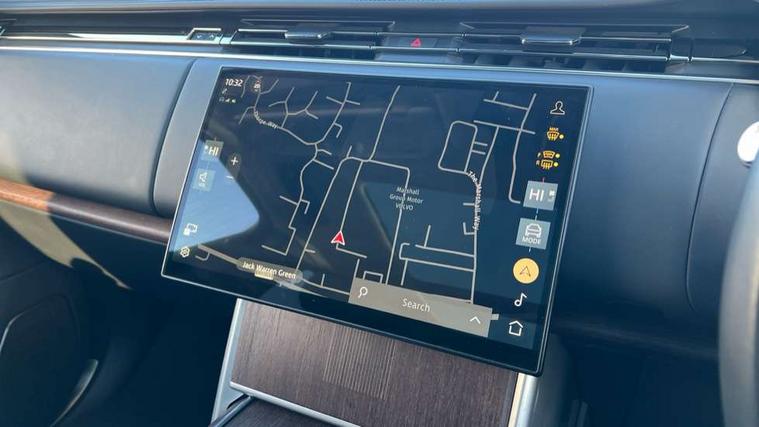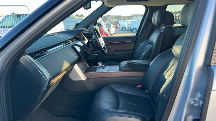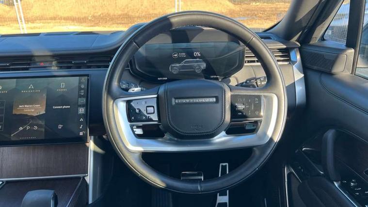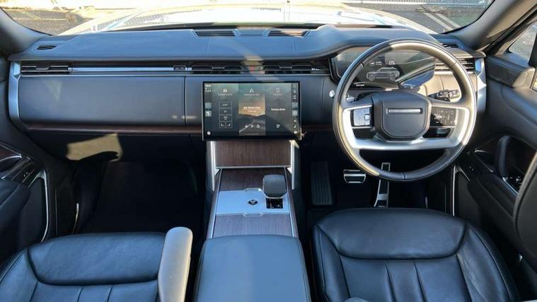 13.1" Touchscreen, 3D surround camera inc frwd traffic detection, vehicle clearance guidance, 3D view, clearsight ground view, manoevure light, 360 parking aid, wade sensing, All Terrain Info Centre, All wheel steering, Android Auto, Apple car play, Blind spot assist, Bluetooth connectivity streaming, Configurable programs, Driver condition response, Eco mode, Electric power assisted steering (EPAS), Emergency call service, Front and rear parking aid, Head up Display, Interactive driver display, Lane keep assist, Rear collision monitor, Rear traffic monitor, Remote, Traffic sign recognition with adaptive speed limiter, Wi-Fi Enabled with data plan, Wireless device charging with phone signal booster, 7 kW onboard charger, 8 speed automatic transmission, Active damper technology system, Adaptive dynamics, All terrain progress control, All Wheel Drive (AWD), Automatic access height, Home charging cable 5m Mode 2 including plugs, Public charging cable 5m Mode 2 including plugs, Terrain Response 2 Auto, Twin speed transfer box, Digital Audio Broadcast radio-DAB, Pivi pro including smart settings, Connected navigation pro, nuance speech, USB socket, Acoustic laminated windscreen, Animated directional indicators, Automatic headlights, Automatic levelling headlights, Centre high mounted stop light, ClearSight interior rear view mirror, Electric windows with one touch open/close and anti trap, Engine cover, Flush deployable exterior door handles, Front and rear recovery eyes, Front fog lights, Headlamp power wash, Heated rear window, Heated washer jets, Illuminated metal treadplates with Autobiography script, Laminated front and rear side glass, LED tail lights, Power fold, auto-dimming, heated door mirrors with approach lights, Rain sensing windscreen wipers, Rear boot, Rear fog lights, Rear side wing doors, Side repeater indicators in mirror, Solar attenuating windscreen, Trailer stability assist, Winter wiper park position, 12V power sockets, 3 seat bench in 2nd row, Air quality sensor, Auto folding loadspace cover, Bright metal pedals, Cabin air purification pro, Cabin lighting, Customer configurable single point entry, Driver and passenger front seat armrests, Easy boot loading, Ebony Carpet, Electric rear side window sunblinds, Four zone climate control, Front and rear cupholders, Front and rear grab handles, Front head restraints, Gearshift paddles, Heated steering wheel, Hook in load space, Loadspace light, Luggage tie down in loadspace, Multifunction steering wheel, Rear centre armrest, Rear head restraints, Rear ISOFIX, Single front passenger seat, SV bespoke carpet mats, Twin blade sunvisors with Illuminated vanity mirrors, Upper and lower glovebox, Versatile loadspace floor in tailgate, Online pack with data plan - Range Rover, 3x3 point rear seat belts, Anti-lock braking system (ABS), Black brake calipers, Brake hold function, Cornering brake control (CBC), Customer configurable autolock, DSC - Dynamic Stability Control, Electronic brake force distribution, Electronic parking brake, Electronic traction control, Emergency brake assist, Emergency braking, Front airbags with passenger seat occupant detector, Front side airbags, Hill descent control, Hill launch assist, Illuminated seat belt buckles, Low traction launch, Occupant protection assist, Power operated child locks, Roll stability control, Tyre pressure monitoring system (TPMS), Immobiliser, Intrusion sensor and alarm, Keyless entry, Locking wheel nuts, Remote central locking, Noble chrome controls,