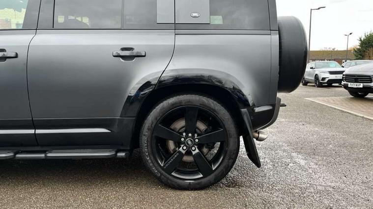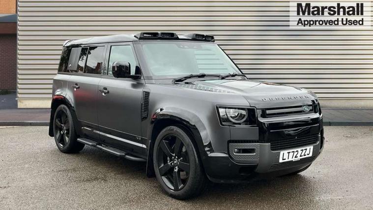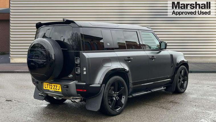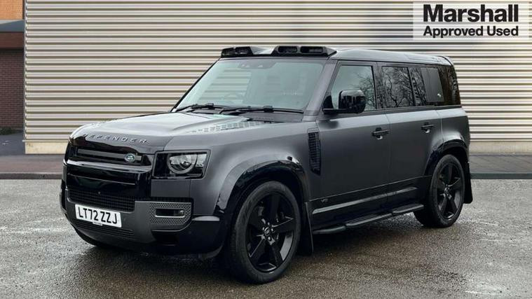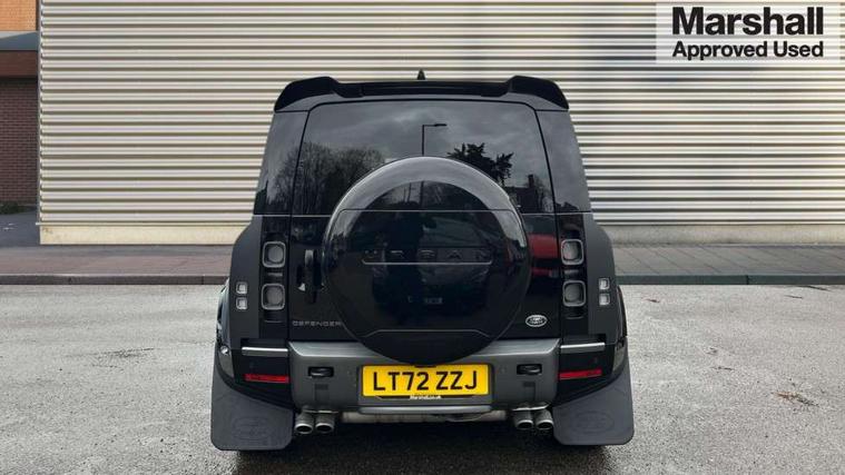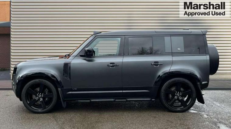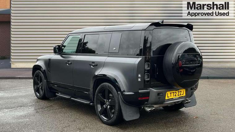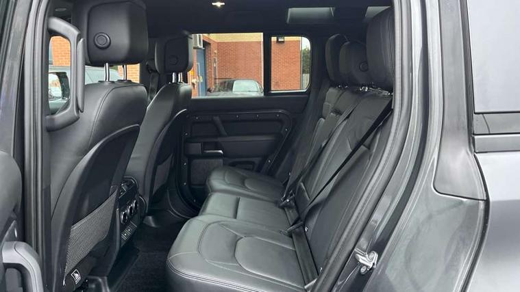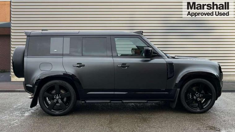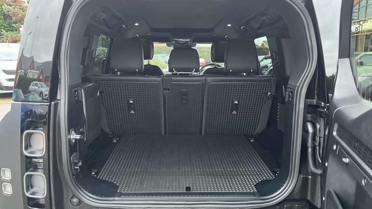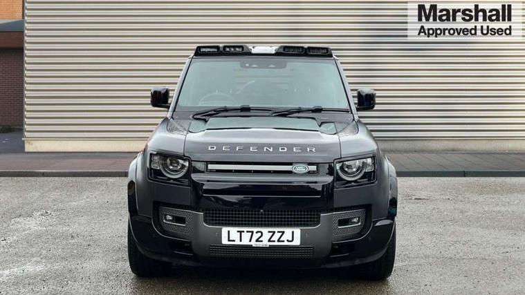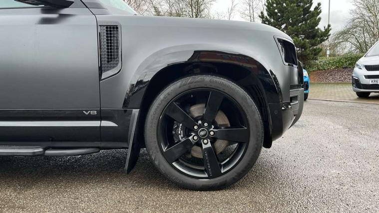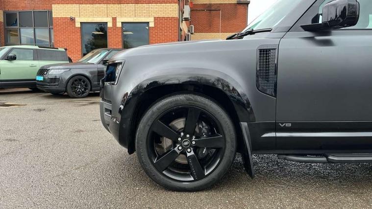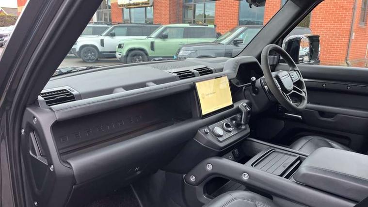 11.4" touchscreen, 360 degree parking aid, 3D Surround Camera with 360 View, 180 Rear View, Front Traffic Detection, Forward Vehicle Guidance, Tow Hitch Assist and clear sight Ground View, Adaptive cruise control, Android Auto, Apple CarPlay, Assisted tailgate with soft close, Blind spot assist, Bluetooth system, Brake pad wear indicator, Clear exit monitor, Connected navigation pro, Driver condition monitor, Electric power assisted steering (EPAS), Garage door opener (Homelink), Head up Display, Lane keep assist, Push button start, Rear collision monitor, Rear traffic monitor, Traffic sign recognition with adaptive speed limiter, Trip computer, Wade Sensing, Wireless device charging with phone signal booster, 8 speed automatic transmission, Adaptive dynamics, All terrain progress control, All wheel drive system, Configurable Terrain Response, Electronic active differential with brake torque vectoring, Electronic air suspension, Terrain Response 2 with dynamic program, Twin speed transfer box, DAB Radio (Digital Audio Broadcasting), Meridian 700w surround sound audio system with 15 speakers, Pivi pro connected, Advanced tow assist, Automatic headlight levelling, Automatic headlights, Black contrast bonnet, Black contrast roof, Black contrast tail door, Centre high mounted stop light, ClearSight interior rear view mirror, Darkened LED tail lights, Electric heated/power fold door mirrors with approach lights and auto dimming driver side, Electric windows with one touch open/close and anti-trap, Electrically deployable towbar, Follow me home lighting, Front fog lights, Gloss black contrast tail door, Headlamp power wash, Heated rear window with timer, Heated washer jets, Heated windscreen, Illuminated metal treadplates with V8 branding, Less roof rack or roof rails, Matrix LED headlights with signature DRL, Premium metallic paint, Privacy glass, Puddle lights, Quad outboard mounted exhaust pipes, Rain sensing windscreen wipers, Rear fog lights, Rear side wing doors, Rear wiper, Satin Protective Film, Side hinged tailgate, Signature graphic (with interior storage), Sliding panoramic roof, Solar attenuating windscreen, Trailer stability assist, V8 badge, 12V power socket in loadspace, 14 way heated and cooled electric adjustable memory front seats with 4 way manual headrests, 3 seat bench in 2nd row, 40:20:40 folding, heated rear seats with centre armrest, Air quality sensor, Alpine lights, Bright metal pedals, Cabin Air Purification plus, Domestic plug socket, Durable rubber cabin flooring, Durable rubber loadspace flooring, Ebony morzine headlining, Electric cabin pre conditioning, Electric reach + rake adjustable steering column, Extended leather upgrade, Footwell lights, Front centre console refrigerator compartment, Front passenger isofix child seat attachment, Heated steering wheel, Leather gearshift, Loadspace cover, Loadspace Hook, Multifunction steering wheel, Overhead stowage for sunglasses, Premium cabin lighting, Rear headrests, Rear ISOFIX, Rear reading lights, Satin chrome gearshift paddles, Single front passenger seat, Standard seat configuration, Storage glovebox, Suedecloth steering wheel, Sunvisors with illuminated vanity mirrors, Three-zone Climate Control with Rear Cooling Assist, Twin front cupholders with cover, Carpathian exterior pack - Defender, Online pack with data plan - Defender, 5 x 3 point seatbelts, ABS, Brake hold function, Cornering brake control (CBC), Cross car beam in satin black powder coat brushed finish, Customer configurable autolock, DSC - Dynamic Stability Control, EBD - Electronic brakeforce distribution, Electric parking brake (EPB), Emergency brake assist, Emergency braking, ESP + traction control, Front airbags with passenger seat occupant detector, HDC - Hill descent control, Hill launch assist, Low traction launch, Power operated child locks, Remote for (e-Call, Optimised assistance call, InControl app, Climate, beep and flash and door), RSC - Roll stability control, Seat belt reminder, TPMS (Tyre pressure monitoring system), Activity key, Alarm, Immobiliser, Intrusion sensor, Keyless entry, Locking wheel nuts, Robustec veneer,