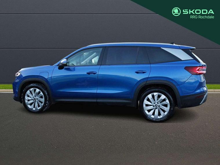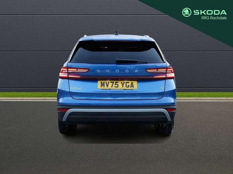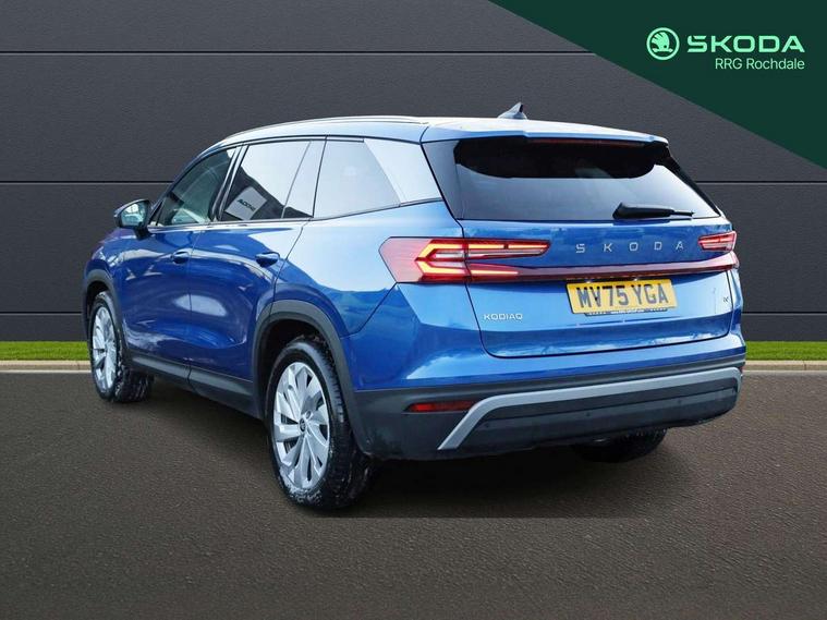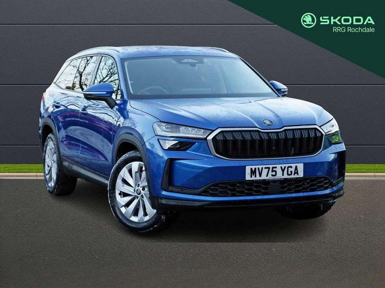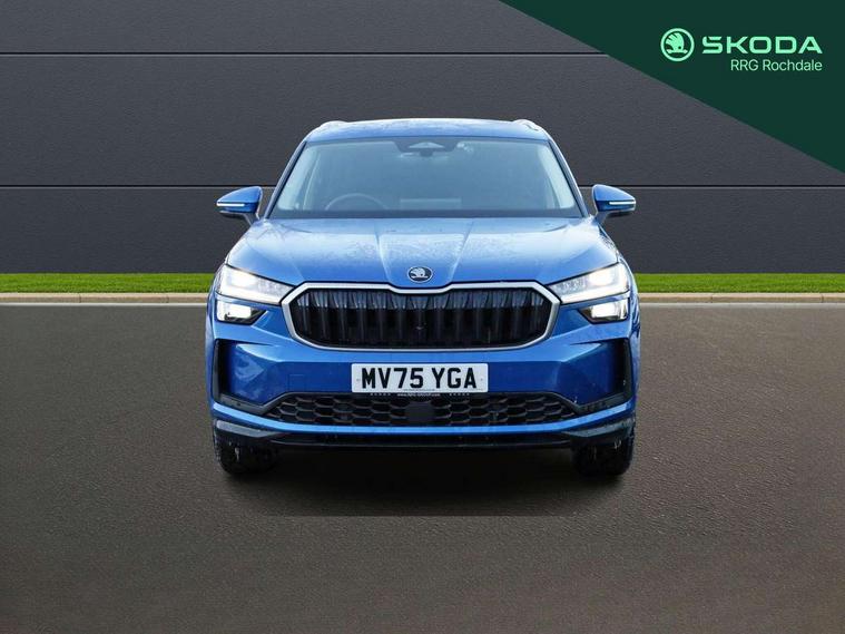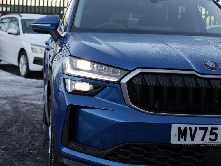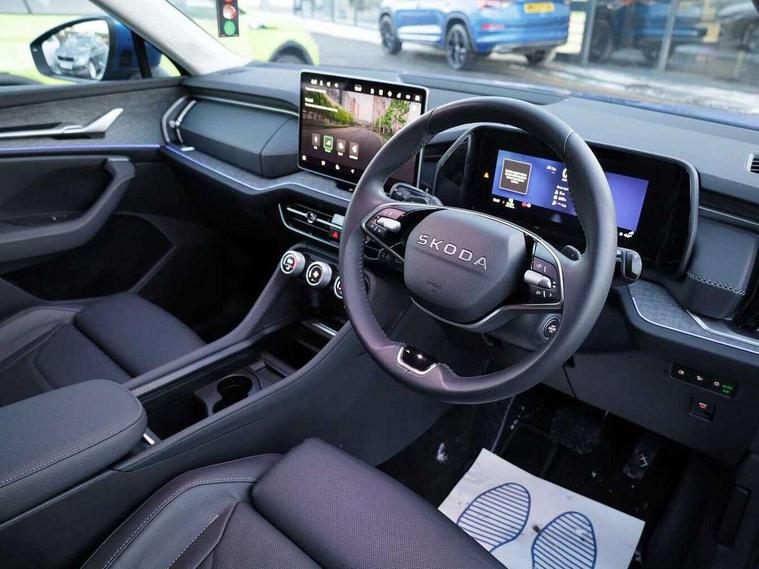 13" satellite navigation touchscreen display, Blind spot detection with door exit warning, Bluetooth system, ChatGPT functionality, Driver alert - Fatigue and drowsiness monitor, Dry display cleaner, Emergency call, Front and rear parking sensors, Front cross traffic assist, Lane assist, PAS, Rear traffic assist, Tailgate unlocking from outside, Traffic sign recognition, USB C Port x 2 in front centre console, Virtual Cockpit - 10.25" digital display, Voice control system, Wireless charging for two smartphones (15W) with cooling function, Wireless SmartLink for Apple CarPlay and Android Auto, 32A charging cable, Stop/start function, 2x USB-C in the rear, DAB Digital radio, Aero front windscreen wipers with intermittent function, Auto dimming rear view mirror, AWL (all weather lighting) and all weather light with cornering function, Black wheel arch surrounds, Body colour bumpers, Body colour door mirrors and handles, Cornering light and poor weather light, Electric folding /adjustable/separted heated/folding door mirrors, auto dimming with boarding sports and memory function, Electric front and rear windows, Exterior black decorative trims, Heat insulating glass in windshield, Heated rear window, Ice scraper in fuel tank cap, Invisible tailpipe, LED daytime running lights, LED third brake light in rear spoiler, Light assistant with automatic headlight control and coming home feature, Logo projection in door mirrors, Privacy glass, Rear roof spoiler, Rear side wing doors, Rear window wiper, Red decorative strip between rear LED lights, Safety reflectors on front and rear doors, Unique dark chrome design logo on alloy wheels, Window control switches with black trim, Windscreen wipers with rain sensor, Without engine designation, 1.5l bottle holder points in all door, 1x centre rear reading light, 3 configurable smart dials with 32mm coloured display, 3 seat bench in 2nd row, 4 foldable roof handles with rear coat hooks, Ambient interior lighting - Dashboard, front-door stowage compartments, front and rear door panels and footwell lighting, Automatic gear selector on steering column, Chrome interior door handles, Driver/front passenger reading lights, Fabric headlining, Fixed bench 40:60:40 split folding backrests, Front and rear floor mats, Front centre armrest with jumbo box storage compartment, cup holder and 12V socket, Height adjustable front headrests, Isofix child seat fittings in outer rear seats and front passenger with top tether, iV badging on boot, Manually adjustable steering column, Pollen filter, Rear centre armrest with cupholders, Rear seat boot backrest release, Single front passenger seat, Skoda lettering on steering wheel, Storage pocket including mobile phone pockets on the backs of the front seats, Sunvisors with illuminated vanity mirrors, Three rear height adjustable headrests, Ticket holder on A Pillar, Tri zone climate control, Umbrella in door panel x1 made from sustainable materials, Upper and lower glovebox with card holder and coin compartment, USB C port by rear view mirror for charging only (15W), Exterior styling pack - Kodiaq, Auto door release and activation of warning lights in the event of an accident, Driver and front passenger airbag with knee airbag and front passenger airbag deactivation, Electric child locks, Electronic parking brake, ESC (incl. ABS+EMD+MSR+ASR+EDL+HBA+DSR+RBS+ESBS+MCB+TSA+XDS), Front assist with braking reaction to vehicles, pedestrians and cyclists, Front disc brakes, Fuel cut off safety device, Height adjustable front 3 point seatbelts + pretensioners, Hill hold assist, Junction assist with automatic emergency braking, Rear disc brakes, Safety vest holder in door, Seat belt reminder for all seats, Three point rear seat belts, Two tone horn, Tyre pressure monitor, Anti-theft wheel bolts, Immobiliser, Remote central locking with 2 keys, Breakdown kit, Tool kit,