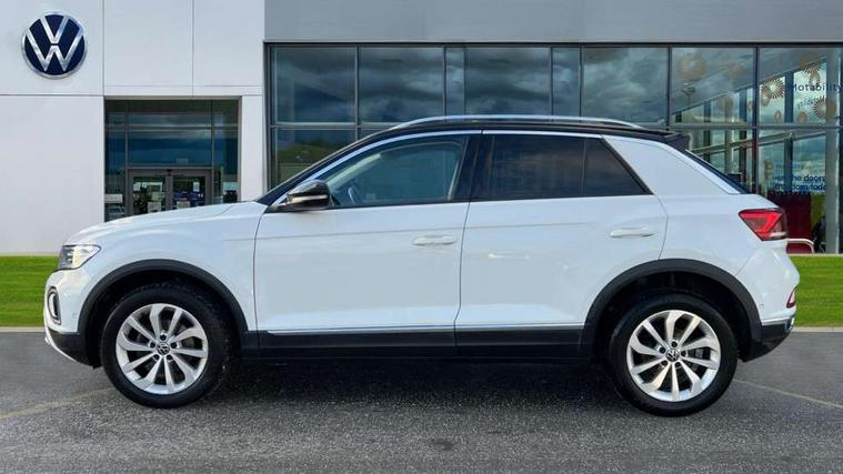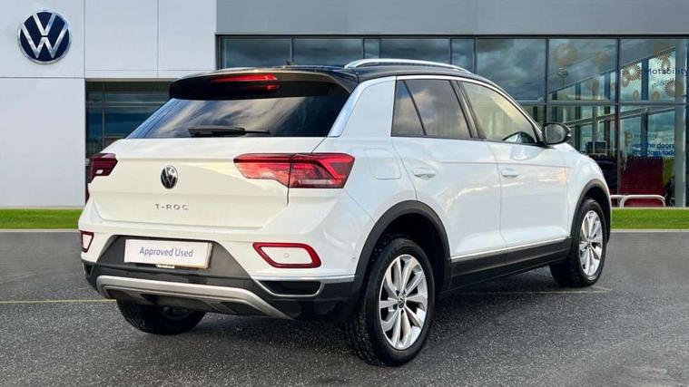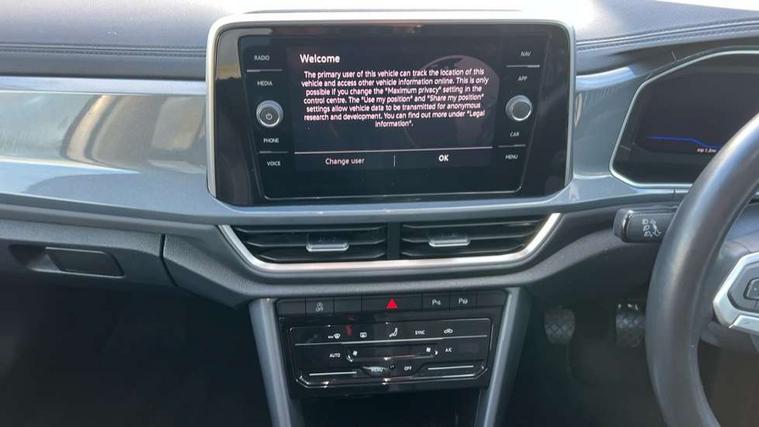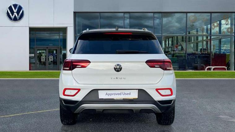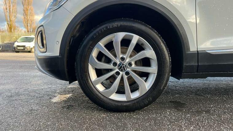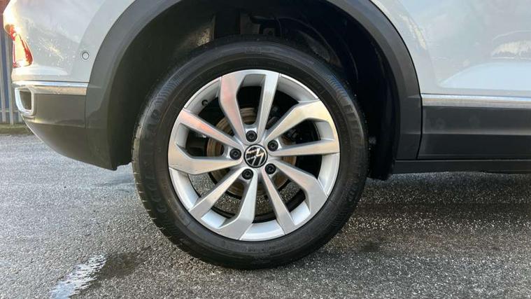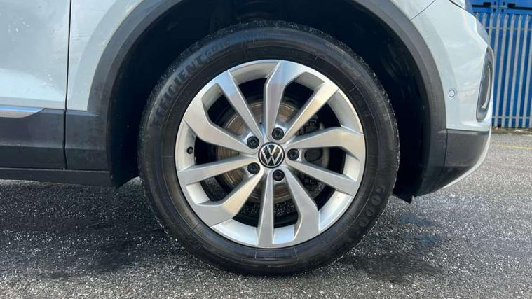10.25" Digital cockpit pro, Bluetooth mobile phone interface, Driver alert system with fatigue detection, Driver tips and journey analysis, Dynamic road sign display, Emergency call service, Lane keeping system Lane Assist, Modified key software - reduce switch off time for key status change to Long no motion, Online services, Park assist including front and rear parking sensors, Power assisted speed sensitive steering, Service interval indicator, Tailgate/trunk lid release from outside, Think blue trainer driver tips and journey analysis, Warning sound and light for front seatbelts unfastened, Wireless app connect, Battery regeneration during braking, Front shock absorption, Rear shock absorption chassis with increased ride height, Start/stop function with battery regeneration, Diversity antenna for FM reception, Front and rear 6 speakers, Music playback - MP3, WMA and AAC files, Premium USB cable in choice of either Apple or Android smartphone compatibility, SD card slot, Simultaneous pairing of 2 compatible mobile devices, Title and cover art display, We Connect and We Connect Plus functionality, 3rd brake light, Auto dimming interior rear view mirror, Automatic hazard lights activation under emergency braking, Automatic headlight control with LED separate daytime running lights with coming/leaving home function, Body colour sports bumpers with silver metallic underbody fascia, Dynamic headlight range control with self adjusting whilst driving, Extended roof spoiler, Exterior mirrors aspherical on driver side, convex on front passenger side, External USB type C socket and charging sockets, Front windscreen wiper with intermittent wipe and 4 position delay, Heated rear window, LED Plus headlamps, LED rear combination lamps, LED rear number plate lights, LED tail lamp rear comination lamps, Light mode for poor weather, rain, fog or snow, Power windows with comfort operation and circuit breaker, Rain sensor, Rear exhaust tailpipe, Rear fog light on one side and reversing lights on both sides, Rear side wing doors, Rear wash/wipe with intermittent wipe setting, Remote electrically foldable door mirrors, puddle lights and reverse activated passenger's door mirror, 12V power socket in centre console, 3 rear head restraints, 3 seat bench in 2nd row, 4 load lashing points in luggage compartment, Air care climatronic air conditoning system with active combination filter and 2-zone temperature control, Chrome plated radiator grille inserts, air vent surrounds and light switch surrounds, Door and side trim panel with leatherette insert, Drawer under drivers seat, Front + rear carpet mats, Front centre armrest, Front comfort sports seats, Front cupholders x 2, Front footwell illumination, Instrument lighting, white adjustable panel illumination, Interior ambient lighting and surround lighting, Interior light delay, Isofix child seat preparation, Leather gearshift handle, LED interior light with switch off delay/dimmer and 2 front/rear LED reading lights, Load-through provision with cup holder when folded down ('Unsplit rear seat bench, split folding backrest, with centre armrest), Luggage compartment lighting, Non-folding front passenger seat backrest, Single front passenger seat, Storage compartment in left and right luggage area, Storage compartment in rear doors, Storage compartments in driver and front passenger doors, Sunvisors with illuminated vanity mirrors, Variable boot floor, height adjustable and removable, Driver assistance pack without proactive passenger protection - T-Roc, 3 point height adj front seatbelts + pretensioners, 3 point seatbelts in outer rear with ECE label, ABS, Child locks on rear doors, Driver and front passenger airbag with front passenger airbag deactivation, Driver and front passenger safety-optimised head restraints, Drivers seatbelt reminder, Electronic parking brake, Electronic Stability Control (ESC) inc EDL (Electronic Differential Lock) and ASR (Traction Control), Front and rear passengers curtain airbag system including front side airbags, Front assist with city emergency braking and pedestrian monitoring, Front disc brakes, Front seat side impact airbags, Predictive pedestrian protection, Rear disc brakes, Single tone horn, Tyre pressure loss indicator, Volkswagen roadside assistance, Alarm with interior protection, Anti-theft alarm system with interior monitoring, backup horn, and towing protection, Remote central locking with SAFELOCK, radio remote control with 2 remote control folding keys, Trims for alloy wheels,