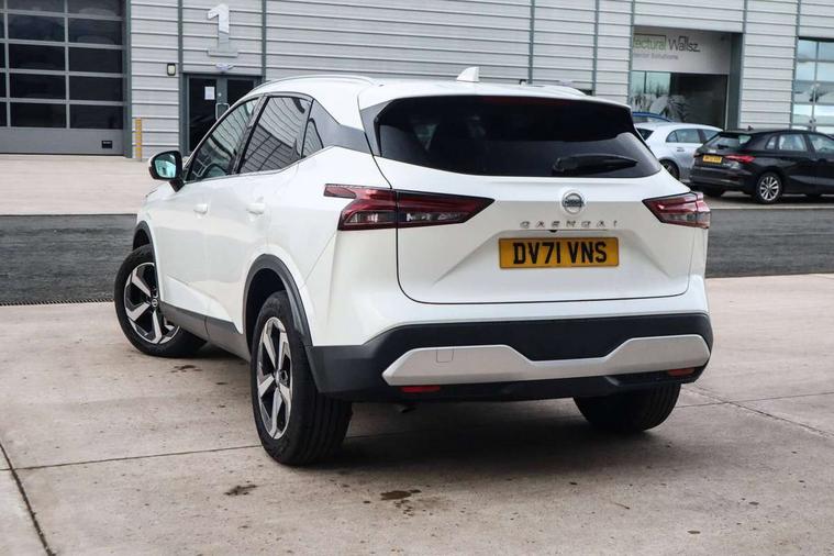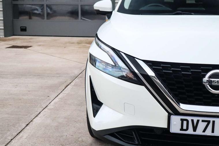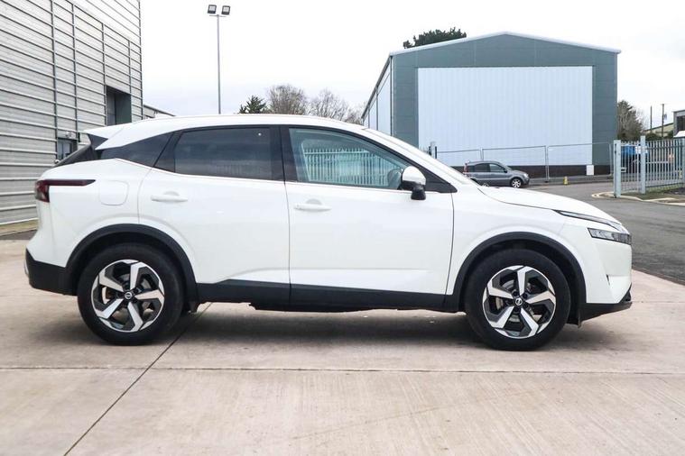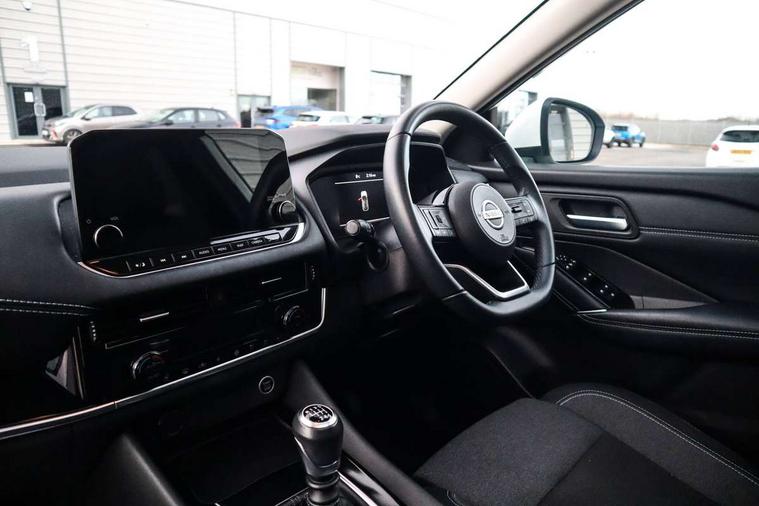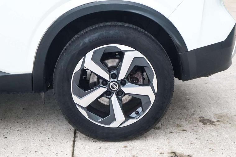 7" High definition full colour TFT screen combimeter, Blind spot warning, Drive modes (sport, normal, eco), Electric speed sensitive power steering, Emergency and breakdown call, Front and rear parking sensors, Idle stop/start system, Intelligent Cruise control (ICC), Intelligent driver alert system, Intelligent forward collision warning, Intelligent lane intervention, Lane departure prevention, Lane departure warning system, Maximum speed limiter, Moving object detection, Push button starter, Rear cross traffic alert, Traffic sign recognition with legal speed adjustment, Trip computer, 6 speakers, AM/FM audio system with DAB, Bluetooth audio streaming, Front USB connections (Type-A and Type-C), Rear USB charging only ports (Type-A and Type-C), Auto dimming rear view mirror, Auto rear wiper when reversing, Body colour mirror caps, Body coloured door handles, Bodyside mouldings, Chrome side window finisher, Electric auto folding door mirrors, Electrically adjustable and heated door mirrors with LED turn indicator, Follow me home headlights, High beam assist, Intelligent auto headlights, LED daytime running lights, LED Headlights, LED rear lights, One touch front and rear electric windows with remote opening and closing, Partially body coloured bumpers, Privacy glass, Rear reversing light (bulb lighting), Rear roof spoiler, Rear styling plate, Shark fin antenna, Splash free rain sensing wipers, Super UV and infrared cut glass, Three blink turn signal, 12v power socket in dashboard and luggage, 2 way electrical driver lumbar adjustment, 2x Rear coat hooks, 3 rear headrests, 4 grab handles, 6 Luggage hooks - 4 on floor, 2 on side, 60/40 split folding rear seat, Ambient lighting around centre console, Centre console storage tray, Chrome interior door handles, Cloth monoform upholstery, Driver and front passenger sunvisors with illuminated vanity mirrors, Driver seat back pocket, Dual zone automatic climate control with pollen filter, Front centre console and armrest, Front cupholder, Front door with bottle holders, Glovebox with light, Hard trunk cover, Height adjustable driver's seat, Height adjustable front headrests, Leather shift knob, Leather steering wheel, Luggage board system, Luggage space lighting, Manually adjustable passenger (slide recline + lifter), Multifunction steering wheel, Passenger seat back pocket, Rear armrest with 2 cupholders, Rear door bottle holders, Soft PVC kneepad, Steering wheel switches, Sunglasses holder, Tilt/telescopic adjustable steering wheel, Two rear isofix child seat anchorage points with top tether, Welcome light and console tray ambient lighting, Connectivity Pack - Qashqai, 3x3 point rear seatbelt pretensioners + load limiters, ABS, ESP, EBD and brake assist, Active brake limited slip, Auto hold function, Child locks on rear doors, Curtain and front side, far side airbags, Driver and passenger airbags, Driver, passenger and 2nd row rear seat belt reminder, Electronic parking brake, Front seatbelt pretensioners + load limiters, Height adjustable front seatbelts, Hill start assist, Intelligent blind spot intervention, Intelligent front emergency braking with pedestrian, cyclist recognition and junction assist, Intelligent rear automatic braking, Tyre pressure monitoring system, Vehicle dynamic control, Capless fuel filler, Engine immobiliser, Nissan i-key, Remote central door locking with deadlocking, Thatcham Cat.1 alarm, 18" Diamond cut alloy wheels,
