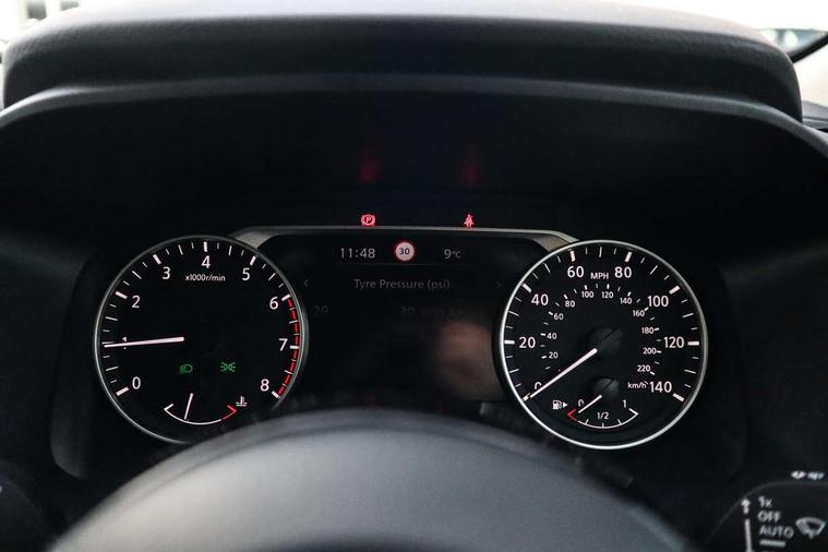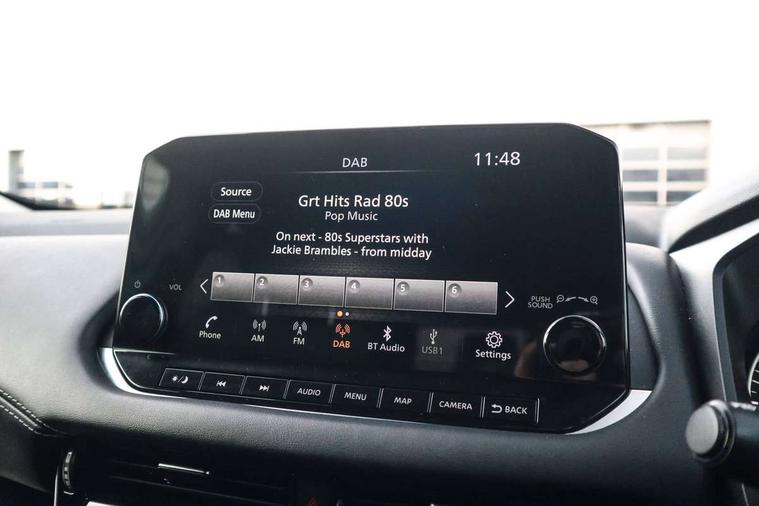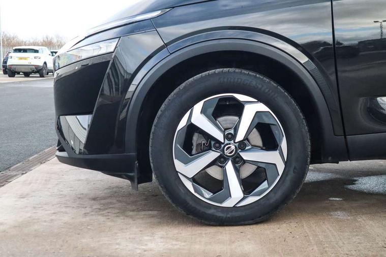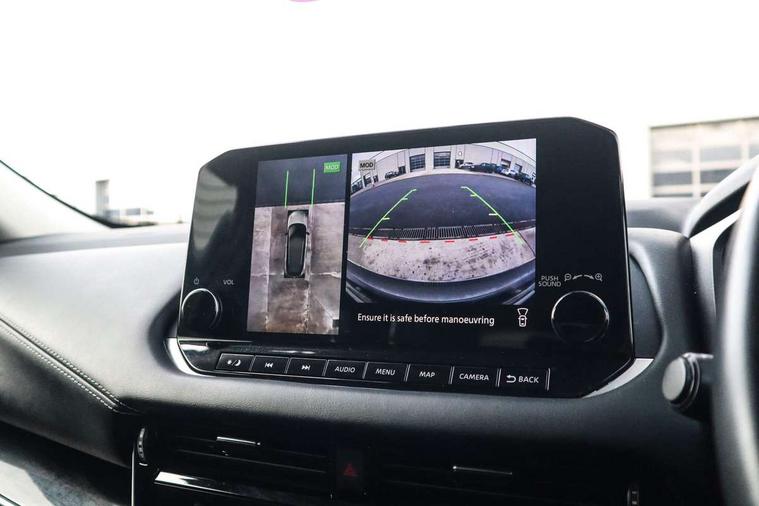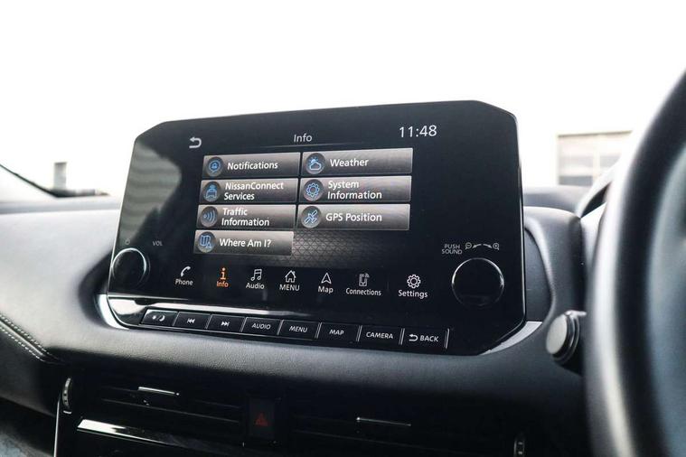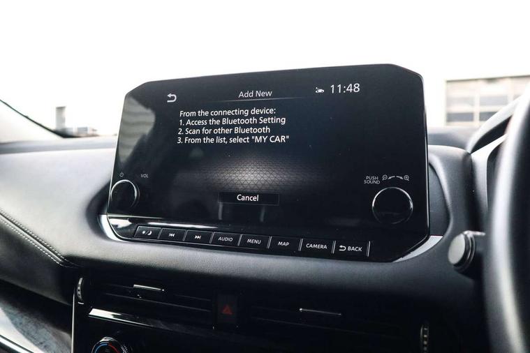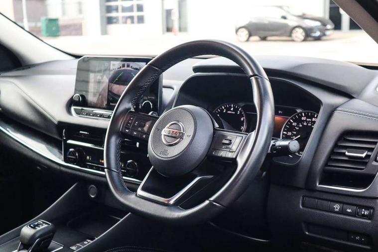Android auto/Apple CarPlay (Wired), Blind spot warning, Drive modes (sport, normal, eco), Electric speed sensitive power steering, Emergency and breakdown call, Full Digital 12.3" TFT Digital Combimeter, Google maps services - search, weather, 3D maps and Google street view, Idle stop/start system, Intelligent around view monitor, Intelligent Cruise control (ICC), Intelligent driver alert system, Intelligent forward collision warning, Intelligent lane intervention, Lane departure prevention, Lane departure warning system, Maximum speed limiter, Moving object detection, Nissan connect 12.3 inch touchscreen infotainment system, Nissan connect navigation, Push button starter, Rear cross traffic alert, Rear parking sensors, Rear view camera, Remote control services - door locks, lights, horn and car locator, Telematics - notifications and connectivity services, TomTom live traffic services, Traffic sign recognition with legal speed adjustment, Trip computer, Virtual personal assistant and firmware over the air capability, Wireless apple carplay, 6 speakers, AM/FM audio system with DAB, Bluetooth audio streaming, Front USB connections (Type-A and Type-C), Rear USB charging only ports (Type-A and Type-C), Auto dimming rear view mirror, Auto rear wiper when reversing, Automatic hazard signal with emergency stop signal, Body colour mirror caps, Body coloured door handles, Bodyside mouldings, Chrome side window finisher, Door handle with button, Electric auto folding door mirrors, Electrically adjustable and heated door mirrors with LED turn indicator, Follow me home headlights, High beam assist, Intelligent auto headlights, LED daytime running lights, LED Headlights, LED rear lights, One touch front and rear electric windows with remote opening and closing, Partially body coloured bumpers, Privacy glass, Rear bumper with graphite insert, Rear reversing light (bulb lighting), Rear roof spoiler, Rear side wing doors, Rear styling plate, Shark fin antenna, Splash free rain sensing wipers, Super UV and infrared cut glass, Three blink turn signal, 12v power socket in dashboard and luggage, 2x Rear coat hooks, 3 bench rear seats in 2nd row, 3 rear headrests, 4 folding assist grip, 6 Luggage hooks - 4 on floor, 2 on side, 6-way manually adjustable driver's seat, 60/40 split folding rear seat bench, Ambient lighting around centre console, Centre console storage tray, Chrome interior door handles, Cloth monoform upholstery, Driver and front passenger sunvisors with illuminated vanity mirrors, Driver seat back pocket, Dual zone automatic climate control with pollen filter, Electrically adjustable lumbar support for driver, Front and rear door storage, Front centre console and armrest, Front cupholders x 2, Front door with bottle holders, Glovebox with light, Hard trunk cover, Height adjustable driver's seat, Height adjustable front headrests, Height adjustable passenger seat, Leather steering wheel, Luggage board system, Luggage space lighting, Manually adjustable passenger (slide recline + lifter), Multifunction steering wheel, Passenger seat back pocket, Rear armrest with 2 cupholders, Rear door bottle holders, Single front passenger seat, Soft PVC kneepad, Steering wheel gearshift paddles, Steering wheel switches, Sunglasses holder, Tilt/telescopic adjustable steering wheel, Two rear isofix child seat anchorage points with top tether, Welcome light and console tray ambient lighting, 3x3 point rear seatbelt pretensioners + load limiters, ABS with EBD and brake assist, Active brake limited slip, Auto hold function, Child locks on rear doors, Curtain and front side, far side airbags, Driver and passenger airbags, Driver, passenger and 2nd row rear seat belt reminder, Electronic parking brake, Front seatbelt pretensioners + load limiters, Height adjustable front seatbelts, Hill start assist, Intelligent blind spot intervention, Intelligent front emergency braking with pedestrian, cyclist recognition and junction assist, Intelligent rear automatic braking, Tyre pressure monitoring system, Vehicle dynamic control, Capless fuel filler, Engine immobiliser, Intelligent Key, Remote central door locking with deadlocking, Thatcham Cat.1 alarm, Interior instrumental panel B finisher, 18" Diamond cut alloy wheels, Tyre puncture repair kit,
