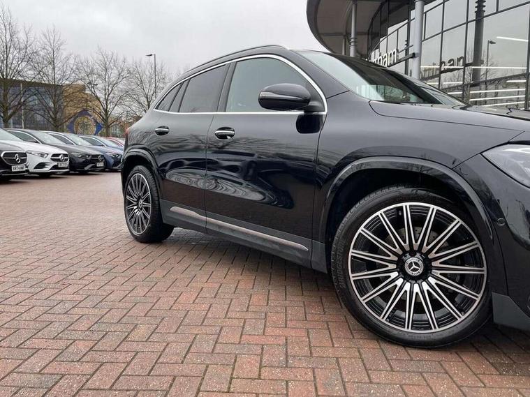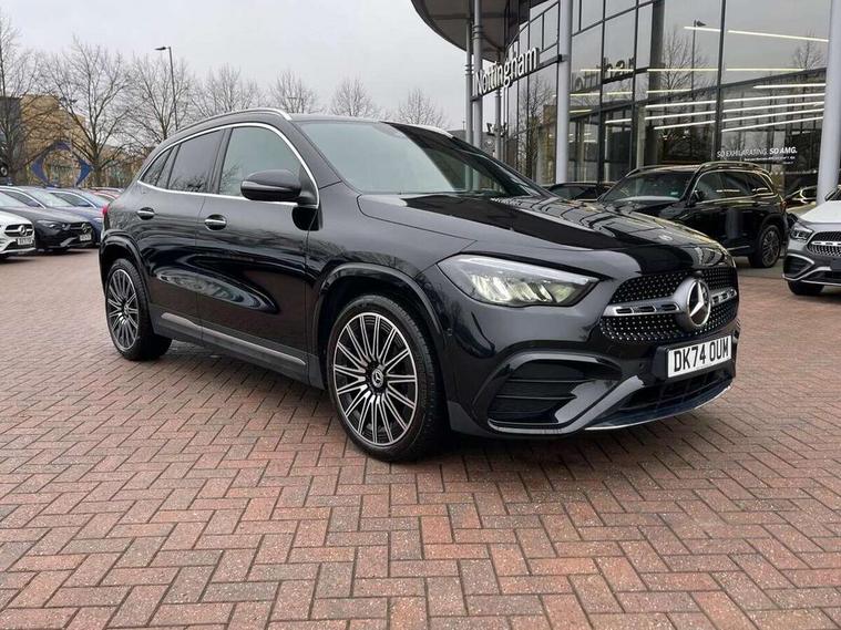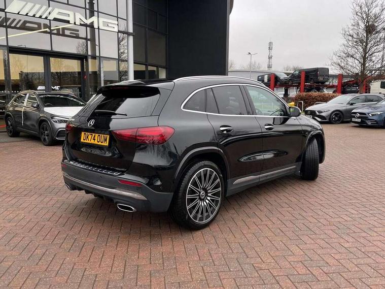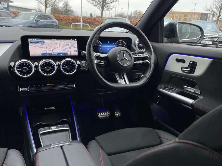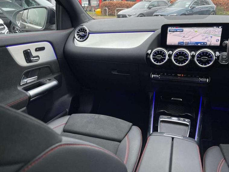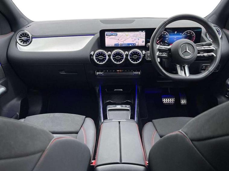 10.25 inch touchscreen central media display, 10.25" Digital instrument cluster display screen, Attention assist, Blind spot assist, Direct steering, DYNAMIC SELECT with a choice of driving modes (ECO, Comfort, Sport and Individual), Easy-pack tailgate, ECO start/stop function, Fingerprint scanner, Fluid level warning indicator for fuel, oil, coolant and washer fluid, Hard-disk navigation, Hey Mercedes Voice activation, Lamp failure indicator, Lane keeping assist (LKA), Mercedes me connect including emergency call system, accident recovery, breakdown and maintenance management, Mercedes me remote services, Multi function trip computer, Outside temperature gauge, Owners manual and service booklet in English, Pre-installation of private car share, Radio aerial integrated into front and rear windshields, Service indicator (ASSYST), Smartphone integration with Apple CarPlay and Android auto, Speed limit assist, Wireless charging, Lowered comfort suspension, Rear axle multi-link, Bluetooth connectivity including audio streaming, DAB Digital radio, MBUX multimedia system, Mercedes-Benz (225w) sound system with 10 speakers, Adaptive brake lights, Adaptive highbeam assist, Aluminium roof rails, AMG front apron with front splitter in the colour of the vehicle with chrome trim element, AMG rear apron with visible tailpipe trim and chrome trim element, AMG specific/dual flow exhaust pipes in chrome (non-functional), Automatic headlamp activation, Beltline trim and window line trim strip in high gloss aluminium, Black grained side sill trim with chrome inlay, Body coloured door handles with chrome insert for keyless entry, Car wash function, Dark privacy glass from B-pillar backwards, Electric front windows, Electric rear windows, Electrically adjustable and heated door mirrors with integrated LED indicators, Exhaust system with 2 Visible tailpipe trim elements and rear apron with trim in chrome, Heat insulating dark tinted glass, Heated glass rear windscreen + timer control, Illuminated door sill panels with Mercedes-Benz lettering, Interior mirror with black reading lamps and frameless, LED high performance headlamps with integrated LED daytime running lights, LED tail lights, LED third brake light, Radiator diamond grille with chrome pins and central Mercedes star, single louvre in matt grey with chrome inserts and black highlights, Rain sensor windscreen wipers, Rear fog lights, Rear side wing doors, Rear wiper, Wheel arch liners in the colour of the vehicle, 3 seat bench in 2nd row, 3 spoke flat bottom multifunction nappa leather steering wheel, 40:20:40 split folding rear seat backrests, Adjustable head restraints, Air conditioning - air vents with silver chrome surround, Air conditioning - Two zone thermotronic luxury automatic climate control with display, AMG floor mats, Auto Mercedes-Benz child seat recognition sensor, Black roof lining, Courtesy light in boot, Electrically adjustable front memory seats with four way lumbar support, Fluorescent jacket, Front centre armrest with stowage, Galvanished gear shift paddles on steering wheel in silver chrome, Heated front seats, Illuminated glovebox, Interior lighting - 64 colour Ambient lighting, Luggage net on driver/front passenger seat backrest, Manually height and reach adjustable steering column, Single front passenger seat, Sports pedals in brushed stainless steel with black rubber studs, Sports seats, Sports steering wheel, Stowage compartment in centre console, Stowage compartment with retractable cover, Sunvisors with illuminated vanity mirrors, Twin front cup holders, Two outer rear seat isofix and top tether child seat fixing points, Comfort seat pack - GLA Class, Interior lighting with light and sight pack - GLA, Keyless go comfort package - GLA, Mirror pack - GLA Class, Parking package with reversing camera - GLA, USB package plus - GLA, 3 rear 3 point seatbelts, ABS with Brake Assist, Active bonnet pedestrain safety measure which detects an impact and raises bonnet by 65mm, Active brake assist includes forward collision warning system with autonomous braking, Adaptive brake assist with hold function and hill start assist, Black seatbelts, Bonnet with power domes, Brake pad wear warning indicator, Childproof locks manually operated for rear doors and electrically operated for rear power windows, Crash responsive emergency lighting, Driver and passenger head and side airbags, Drivers knee airbag, Dual stage driver/passenger airbags, Electronic parking brake, ESP curve dynamic assist, ESP with ASR, Front and rear seatbelt reminder, Front brake callipers with Mercedes Benz logo lettering on front, Front brake discs internally ventilated and perforated, Front passenger seat occupancy sensor, Sports braking system, Tyre pressure monitoring system, Warning triangle and first aid kit, Window airbags, Alarm system with immobiliser and interior protection -Thatcham category 1, Guard 360 degree vehicle protection, Keyless Go starting function, Remote central locking and crash sensor with emergency opening function, Light longitudinal grain aluminium trim, 20" AMG multi spoke light alloy wheels aerodynamically optimised and painted in black with a high-sheen finish RVU, Summer tyres, Tirefit tyre sealant kit,