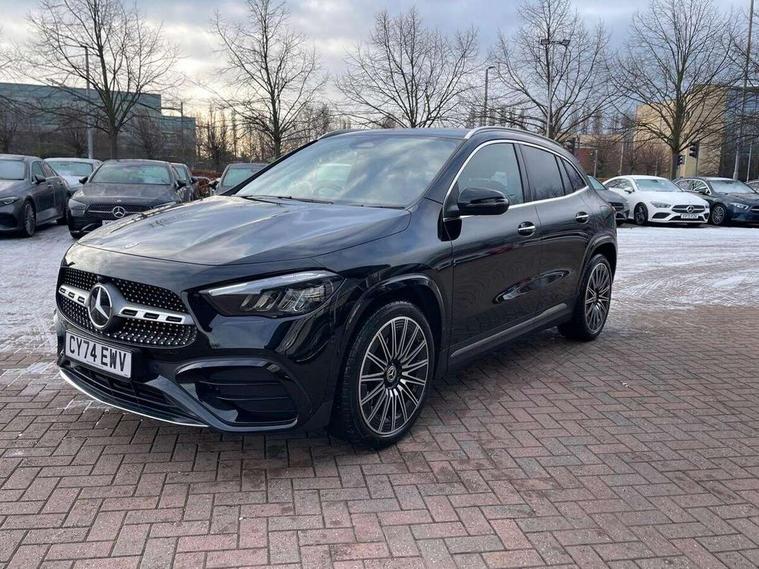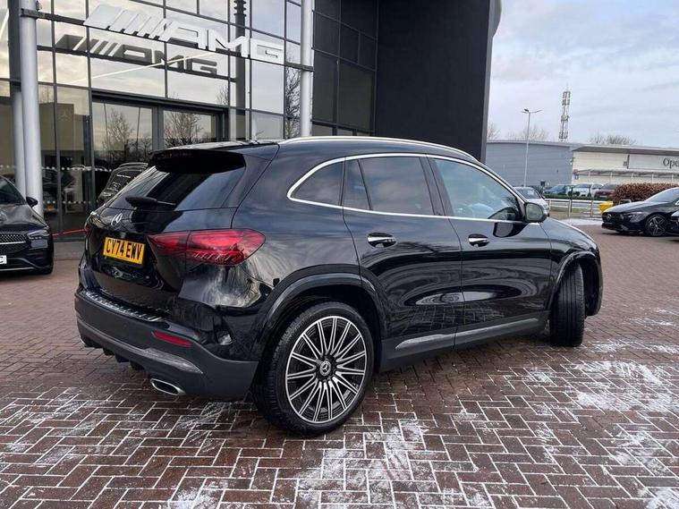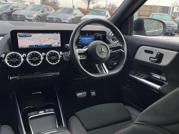 10.25 inch touchscreen central media display, 10.25" Digital instrument cluster display screen, Attention assist, Blind spot assist, Direct steering, DYNAMIC SELECT with a choice of driving modes (ECO, Comfort, Sport and Individual), Easy-pack tailgate, ECO start/stop function, Fingerprint scanner, Fluid level warning indicator for fuel, oil, coolant and washer fluid, Hard-disk navigation, Hey Mercedes Voice activation, Lamp failure indicator, Lane keeping assist (LKA), Mercedes me connect including emergency call system, accident recovery, breakdown and maintenance management, Mercedes me remote services, Multi function trip computer, Outside temperature gauge, Owners manual and service booklet in English, Pre-installation of private car share, Radio aerial integrated into front and rear windshields, Service indicator (ASSYST), Smartphone integration with Apple CarPlay and Android auto, Speed limit assist, Wireless charging, Lowered comfort suspension, Rear axle multi-link, Bluetooth connectivity including audio streaming, DAB Digital radio, MBUX multimedia system, Mercedes-Benz (225w) sound system with 10 speakers, Adaptive brake lights, Adaptive highbeam assist, Aluminium roof rails, AMG front apron with front splitter in the colour of the vehicle with chrome trim element, AMG rear apron with visible tailpipe trim and chrome trim element, AMG specific/dual flow exhaust pipes in chrome (non-functional), Automatic headlamp activation, Beltline trim and window line trim strip in high gloss aluminium, Black grained side sill trim with chrome inlay, Body coloured door handles with chrome insert for keyless entry, Car wash function, Dark privacy glass from B-pillar backwards, Electric front windows, Electric rear windows, Electrically adjustable and heated door mirrors with integrated LED indicators, Exhaust system with 2 Visible tailpipe trim elements and rear apron with trim in chrome, Heat insulating dark tinted glass, Heated glass rear windscreen + timer control, Illuminated door sill panels with Mercedes-Benz lettering, Interior mirror with black reading lamps and frameless, LED high performance headlamps with integrated LED daytime running lights, LED tail lights, LED third brake light, Radiator diamond grille with chrome pins and central Mercedes star, single louvre in matt grey with chrome inserts and black highlights, Rain sensor windscreen wipers, Rear fog lights, Rear side wing doors, Rear wiper, Wheel arch liners in the colour of the vehicle, 3 seat bench in 2nd row, 3 spoke flat bottom multifunction nappa leather steering wheel, 40:20:40 split folding rear seat backrests, Adjustable head restraints, Air conditioning - air vents with silver chrome surround, Air conditioning - Two zone thermotronic luxury automatic climate control with display, AMG floor mats, Auto Mercedes-Benz child seat recognition sensor, Black roof lining, Courtesy light in boot, Electrically adjustable front memory seats with four way lumbar support, Fluorescent jacket, Front centre armrest with stowage, Galvanished gear shift paddles on steering wheel in silver chrome, Heated front seats, Illuminated glovebox, Interior lighting - 64 colour Ambient lighting, Luggage net on driver/front passenger seat backrest, Manually height and reach adjustable steering column, Single front passenger seat, Sports pedals in brushed stainless steel with black rubber studs, Sports seats, Sports steering wheel, Stowage compartment in centre console, Stowage compartment with retractable cover, Sunvisors with illuminated vanity mirrors, Twin front cup holders, Two outer rear seat isofix and top tether child seat fixing points, Comfort seat pack - GLA Class, Interior lighting with light and sight pack - GLA, Keyless go comfort package - GLA, Mirror pack - GLA Class, Parking package with reversing camera - GLA, USB package plus - GLA, 3 rear 3 point seatbelts, ABS with Brake Assist, Active bonnet pedestrain safety measure which detects an impact and raises bonnet by 65mm, Active brake assist includes forward collision warning system with autonomous braking, Adaptive brake assist with hold function and hill start assist, Black seatbelts, Bonnet with power domes, Brake pad wear warning indicator, Childproof locks manually operated for rear doors and electrically operated for rear power windows, Crash responsive emergency lighting, Driver and passenger head and side airbags, Drivers knee airbag, Dual stage driver/passenger airbags, Electronic parking brake, ESP curve dynamic assist, ESP with ASR, Front and rear seatbelt reminder, Front brake callipers with Mercedes Benz logo lettering on front, Front brake discs internally ventilated and perforated, Front passenger seat occupancy sensor, Sports braking system, Tyre pressure monitoring system, Warning triangle and first aid kit, Window airbags, Alarm system with immobiliser and interior protection -Thatcham category 1, Guard 360 degree vehicle protection, Keyless Go starting function, Remote central locking and crash sensor with emergency opening function, Light longitudinal grain aluminium trim, 20" AMG multi spoke light alloy wheels aerodynamically optimised and painted in black with a high-sheen finish RVU, Summer tyres, Tirefit tyre sealant kit,