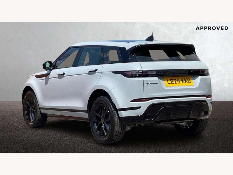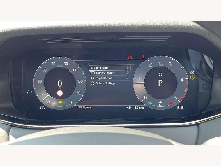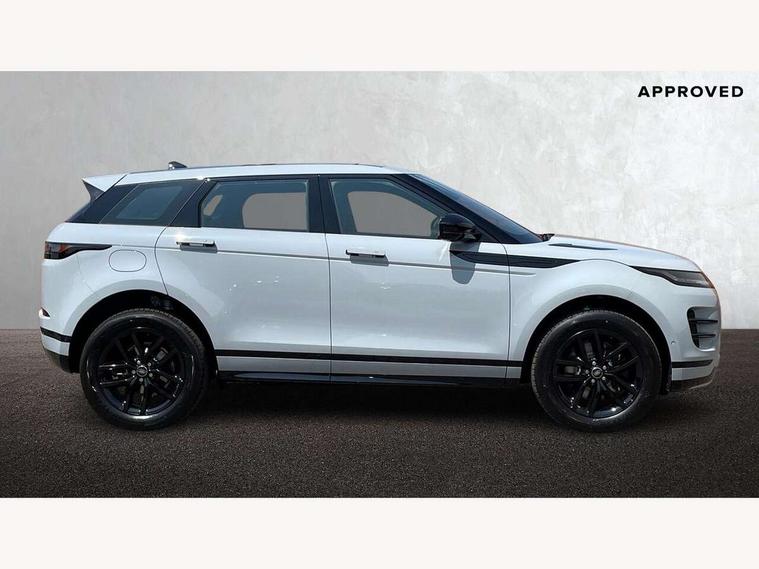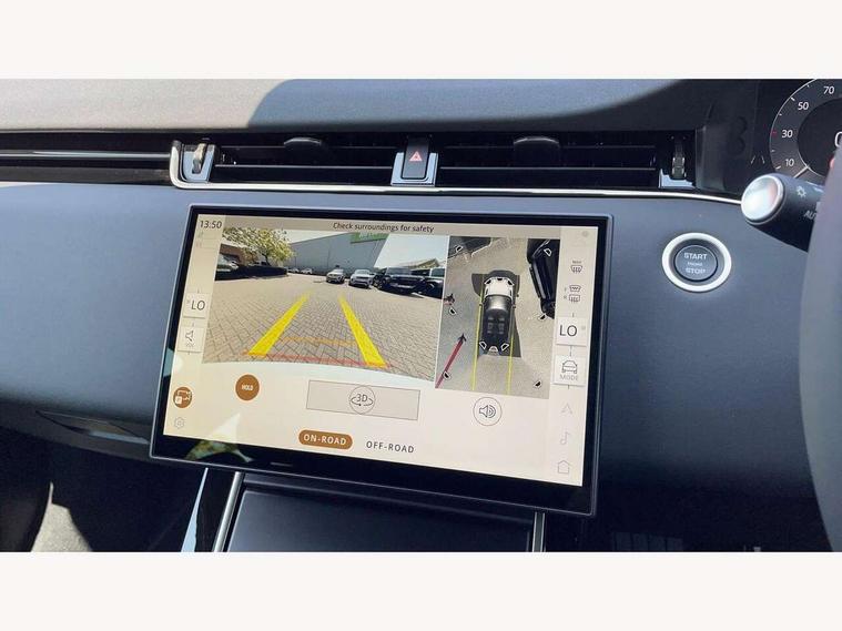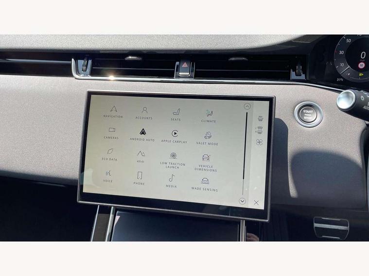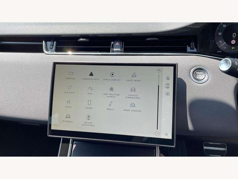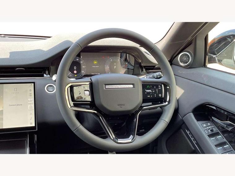 11.4" touch screen, 3D 360 degree surround camera with wade sensing, Adaptive cruise control, Android Auto, Apple car play, Blind spot assist, Bluetooth connectivity, Brake pad wear indicator warning light, Driver condition monitor, eCall emergency system, Eco mode, Electronic power assisted steering (EPAS), Front and rear parking sensors with auto brake, InControl remote, Interactive driver display, Land Rover InControl apps, Lane keep assist, Pivi pro connected includes diamond pivi variant, smart settings, connected navigation pro, nuance speech licence, Powered tailgate/boot lid, Rear collision monitor, Rear traffic monitor, Tailgate, Traffic sign recognition with adaptive speed limiter, Voice control system, Wireless device charging, All terrain progress control, Diesel exhaust fluid (DEF) large tank, Efficient Driveline, Large fuel tank, Terrain Response 2, Digital Audio Broadcast radio-DAB, Steering wheel mounted controls, Acoustic laminated windscreen, Auto headlights, Auto high beam assist, Automatic headlight levelling, Electric windows with one touch open/close and anti trap, Flush deployable exterior door handles, Front and rear recovery eyes, Heated rear window with timer, Heated washer jets, Heated windscreen, LED headlights with signature DRL and LED tail Lights, Power fold, auto-dimming, heated door mirrors with approach lights and auto dimming driver side, Rain sensing windscreen wipers, Rear animated directional indicators, Rear fog lights, Rear side wing doors, Rear wiper, Side repeater indicators in mirror, Tailgate spoiler, Third brake light, Winter wiper park position, 12 way driver memory and 10 way passenger electric front seats with 2 way manual headrest + 4 way lumbar support, 40:20:40 split folding rear seats with centre headrest and armrest, Ambient interior lighting, Bright metal pedals, Carpet mats, Chrome tread plates with range rover branding Includes stainless steel loadspace scuff plate with etched graphic, Customer configurable single point entry, Front and rear cupholders, Heated front seats, Heated steering wheel, Isofix system on outer rear seats, Manually adjustable steering column, Overhead lighting console, Overhead stowage for sunglasses, Passive front head restraints, Rear air vents, Rear head restraints, Satin chrome gearshift paddles, SE Grained leather upholstery, Single passenger seat, Standard steering wheel with Moonlight Bezel, Sunvisors with illuminated vanity mirrors, Twin sliding front centre armrest, Power socket pack 2 - Evoque, 3 rear 3 point seatbelts, Anti-lock braking system (ABS), Brake hold function, Customer configurable autolock, DSC - Dynamic Stability Control, Electronic brake force distribution, Electronic parking brake, Electronic traction control, Emergency braking, Front and rear seatbelt reminder, Hill descent control, Hill launch assist, Low traction launch, Occupant protection assist, Passenger seat occupant detector, Power operated child locks, Roll stability control, Six airbags - Driver and passenger airbags/driver knee airbag/front side airbag and curtain airbags, Torque vectoring brake, Tyre pressure monitoring system, Alarm, Immobiliser, Intrusion sensor, Keyless entry, Locking wheel nuts, All season tyres,