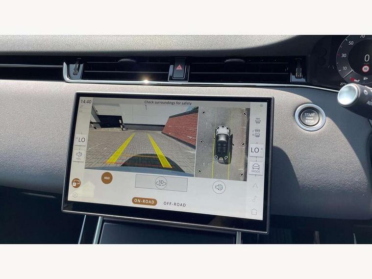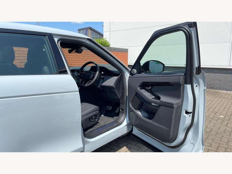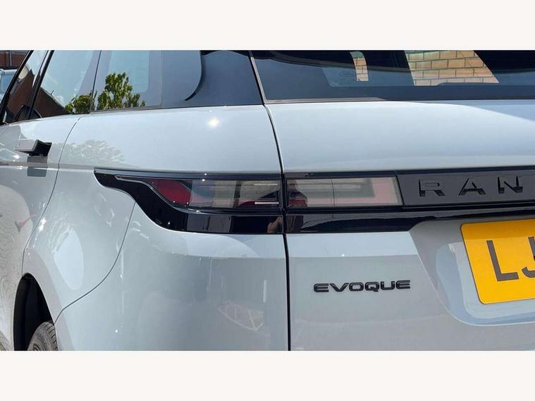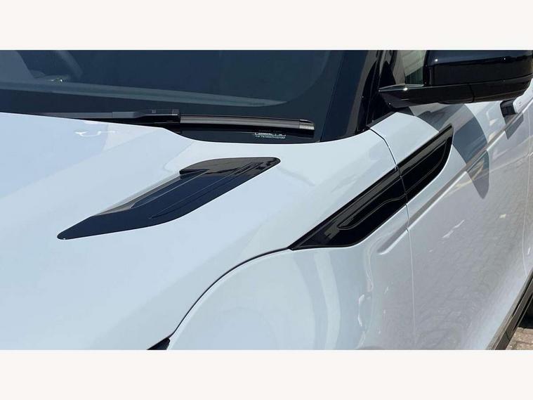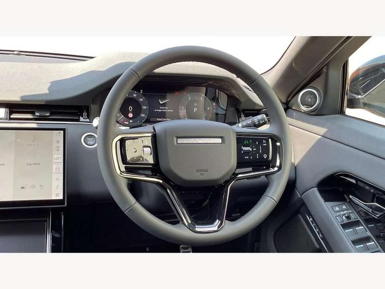 11.4" touch screen, 3D 360 degree surround camera with wade sensing, Adaptive cruise control, Android Auto, Apple car play, Blind spot assist, Bluetooth connectivity, Brake pad wear indicator warning light, Driver condition monitor, eCall emergency system, Eco mode, Electronic power assisted steering (EPAS), Front and rear parking sensors with auto brake, InControl remote, Interactive driver display, Land Rover InControl apps, Lane keep assist, Pivi pro connected includes diamond pivi variant, smart settings, connected navigation pro, nuance speech licence, Powered tailgate/boot lid, Rear collision monitor, Rear traffic monitor, Tailgate, Traffic sign recognition with adaptive speed limiter, Voice control system, Wireless device charging, All terrain progress control, Diesel exhaust fluid (DEF) large tank, Efficient Driveline, Large fuel tank, Terrain Response 2, Digital Audio Broadcast radio-DAB, Steering wheel mounted controls, Acoustic laminated windscreen, Auto headlights, Auto high beam assist, Automatic headlight levelling, Electric windows with one touch open/close and anti trap, Flush deployable exterior door handles, Front and rear recovery eyes, Heated rear window with timer, Heated washer jets, Heated windscreen, LED headlights with signature DRL and LED tail Lights, Power fold, auto-dimming, heated door mirrors with approach lights and auto dimming driver side, Rain sensing windscreen wipers, Rear animated directional indicators, Rear fog lights, Rear side wing doors, Rear wiper, Side repeater indicators in mirror, Tailgate spoiler, Third brake light, Winter wiper park position, 12 way driver memory and 10 way passenger electric front seats with 2 way manual headrest + 4 way lumbar support, 40:20:40 split folding rear seats with centre headrest and armrest, Ambient interior lighting, Bright metal pedals, Carpet mats, Chrome tread plates with range rover branding Includes stainless steel loadspace scuff plate with etched graphic, Customer configurable single point entry, Front and rear cupholders, Heated front seats, Heated steering wheel, Isofix system on outer rear seats, Manually adjustable steering column, Overhead lighting console, Overhead stowage for sunglasses, Passive front head restraints, Rear air vents, Rear head restraints, Satin chrome gearshift paddles, SE Grained leather upholstery, Single passenger seat, Standard steering wheel with Moonlight Bezel, Sunvisors with illuminated vanity mirrors, Twin sliding front centre armrest, Power socket pack 2 - Evoque, 3 rear 3 point seatbelts, Anti-lock braking system (ABS), Brake hold function, Customer configurable autolock, DSC - Dynamic Stability Control, Electronic brake force distribution, Electronic parking brake, Electronic traction control, Emergency braking, Front and rear seatbelt reminder, Hill descent control, Hill launch assist, Low traction launch, Occupant protection assist, Passenger seat occupant detector, Power operated child locks, Roll stability control, Six airbags - Driver and passenger airbags/driver knee airbag/front side airbag and curtain airbags, Torque vectoring brake, Tyre pressure monitoring system, Alarm, Immobiliser, Intrusion sensor, Keyless entry, Locking wheel nuts, All season tyres,