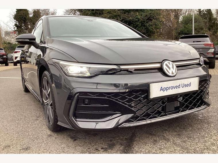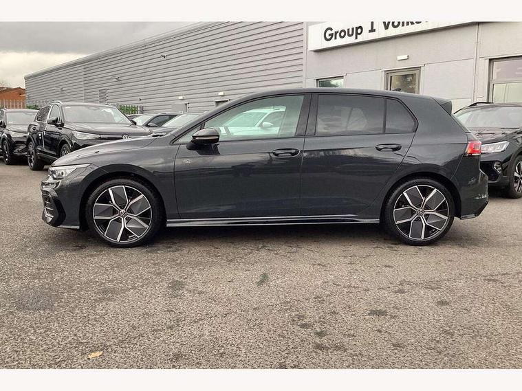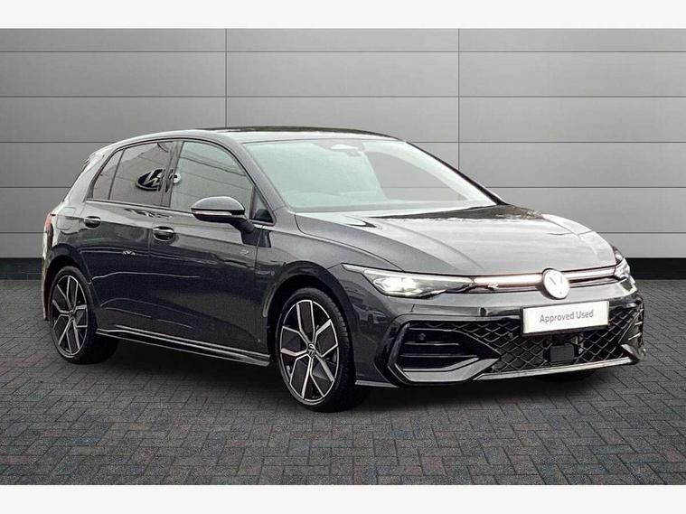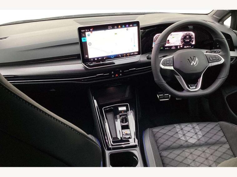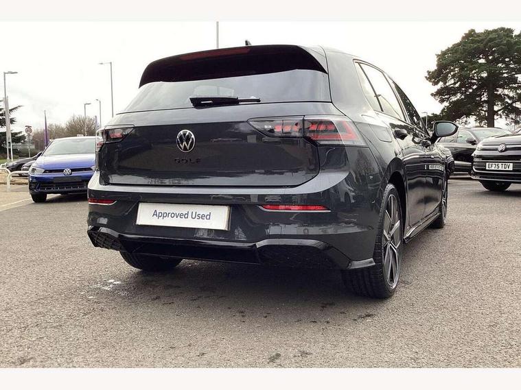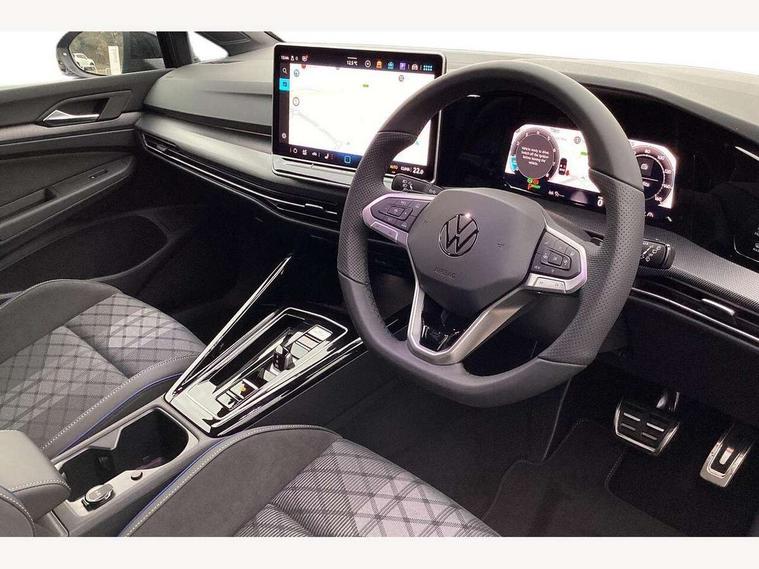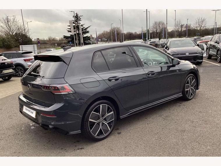 Activated carbon canister, Adaptive cruise control (ACC), Advanced driver attention and drowsiness monitor, Dynamic road sign display, Dynamic steering, E-Sim card for online connectivity, eCall emergency call system, Multi-color Digital cockpit pro, selection of different info profile possible, Multifunction front facing camera for distance control, Navigation system, Oncoming vehicle braking when turning including swerve support, Speed limiter, Speedo, rev counter, electronic odometer, trip, service interval display, exterior temperature and fuel gauge, Traffic jam assist, Voice enhancer and voice control, Warning signal and warning light for front and rear seatbelts not fastened, We connect plus preparation, We connect preparation, Wireless app connect, Hybrid propulsion system, Petrol Particulate Filter, Start-stop system with battery regeneration (recuperation - energy recovery during braking), XDS electronic differential lock for improved traction and handling, 2 USB C ports in front, 2 USB charging sockets on the centre console in the rear charging capacity upto 45W, Digital radio reception (DAB), Diversity antenna for FM reception, Gaming platform via car app, Infotainment system with 12.9" display, Mobile phone interface with inductive charging feature, 3rd brake light, Auto dimming rear view mirror, Automatic headlamp activation with Coming home and Leaving home feature, Body colored bumpers in R-Line style, Body colour door handles, Exterior ambient lighting, Exterior mirrors convex on the left and aspherical on the right, Front and rear electric windows, Heat insulating windshield made of laminated glass, LED separate daytime running light, Rain sensor, Rear exhaust tailpipe, Rear fog light on one side and reversing lights on both sides, Rear side wing doors, Rear windscreen washer and wiper with interval delay, Remote electrically foldable door mirrors, puddle lights and reverse activated passenger's door mirror, Volkswagen logo in front, illuminated lighting animation with wake up/goodbye scenario and illuminated door handles, Welcome light with surround lighting, 12V socket in front centre console, 12V socket in luggage compartment, 3 rear head restraints, 3 seat bench in 2nd row, Ambient lighting with 30 colour including LED light unit in front footwell with selectable light colour, Black roof lining, Brushed stainless steel pedals, Chrome plated radiator grille inserts, air vent surrounds and light switch surrounds, Door insert, side trim panel and arm support in leatherette, Front + rear black carpet mats, Front centre armrest, Front seat lumbar support adjuster, Integrated front head restraints, ISOFIX anchors for child seats on outer rear bench seats and on front passanger seat compatible for i-Size, Luggage compartment lighting, Manual height adjustable front passenger seat, Manually height adjustable driver seat, Plastic gear knob, Premium sports seats in front, Rear cupholder and loadthough, Sardegna cloth upholstery with front and outer rear seats Art Velour inner sides of bolsters, Single front passenger seat, Split folding backrest with centre armrest and unsplit rear seat bench, Sun visors with illuminated vanity mirrors, Titanium black instrument panel, Black exterior Styling package with Matrix LED headlights - Golf, Winter package - Golf DSG Estate/Hatchback, 3 point height adj front seatbelts + pretensioners, 3 rear three point seatbelts, ABS, Autonomous emergency braking front assist with pedestrian and cyclist monitoring, Child locks on rear doors, Driver and front passenger airbag with front passenger airbag deactivation, Electronic parking brake with auto hold, ESC (Electronic Stability Control), Extended pedestrian protection measures, Hill start assist, Rear disc brakes, Two tone horn, Tyre pressure loss indicator, Volkswagen roadside assistance, Anti theft wheel bolts, Preparation for alcohol interlock, Decorative inserts carbon grey for dashboard and front door trim panels, 18" Leeds alloy wheels, Tool kit for tyre mobility set, Tyre mobility kit Includes 12V compressor and tyre sealant,