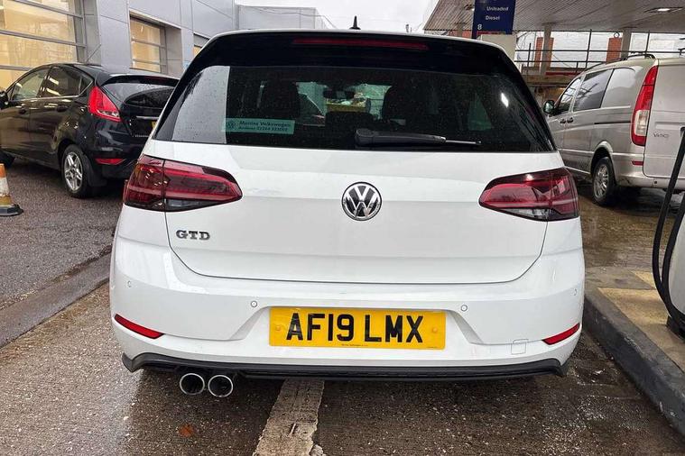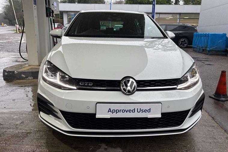 'Lights On' Reminder warning buzzer, ACC - Adaptive cruise control with front assist, forward collision warning, distance monitoring, city emergency brake and speed limiter, Bluetooth telephone and audio connection for compatible devices, Brake pad wear indicator warning light, Driver alert system, Driver profile selection, Driving Mode Selection with four preset modes - Eco, normal, sport or individual modes, Instrument cluster in white, Lane assist with dynamic light assist and traffic sign recognition, Misfuelling protection device, Multifunction computer with visual gear change recommendation for fuel consumption, Progressive power assisted steering, Push tank flap, Rear view camera, Speedo, rev counter, electronic odometer, trip, service interval display, exterior temperature and fuel gauge, Stop/start system, Warning buzzer and light for front seatbelts unfastened, Anti-tramp function, Battery regeneration during braking, Diesel particulate filter, Lowered sports suspension, XDS plus electronic differential lock, Composition media system, DAB Digital radio receiver, MP3/WMA compatability, Multi device interface (MDI) with USB connection, Premium USB cable in choice of either Apple or Android smartphone compatibility, SD card slot, SMS Functionality, USB and SD card connectivity, Volkswagen media control, 3D-LED tinted rear light clusters with indicator sweep function, Black rear diffuser, Body colour door handles, Body colour door mirrors with integrated indicators, Body colour rear roof spoiler, Body colour sports bumpers, Dusk sensor + automatic driving lights, Electric front windows, Electric rear windows, Electrically adjustable and heated door mirrors, Fully galvanised body, Heated rear windscreen, High level 3rd brake light incorporating LED Technology, Honeycomb radiator grille - black, LED daytime running lights, LED front fog lights with static cornering light function, Rear fog lamp, Rear window aerial, Rear window wash/wipe with intermittent wipe, Reflectors in all doors, Shiny black aerofoil downside, Sill extensions, Twin exhaust tailpipe, Unique GTD badging, Uniquely shaped front/rear bumpers, Windscreen wipers/ intermittent wipe + 4 position delay, 12V socket in luggage compartment, 3 rear headrests, 4 load lashing points in luggage compartment, 60/40 split folding rear seat backrest, Bag hook in luggage compartment x 2, Black headlining, Climate control - 2 zone electronic air conditioning with automatic air recirculation and allergy filter, Cooled glovebox, Dust/pollen filter, Front + rear carpet mats, Front centre armrest with storage compartment and two rear air vents, Front seat back storage pockets, Grab handles front x 2, rear x 2 with integrated coat hooks, Height and reach adjustable steering wheel, Illuminated door sills, Illuminated vanity mirrors, Instrument lighting white adjustable panel illumination, Interior light delay, Isofix preparation for 2 rear child seats, Leather gear knob and handbrake grip, Load through provision with rear centre armrest and cupholders x2, Luggage compartment lighting, Multifunction leather steering wheel with GTE logo and selector lever boot grip with grey stitching including paddle shift, Overhead storage box, Stainless steel pedals, Storage box in luggage compartment, Storage compartment in roof console with cover, Storage compartments in front doors, Storage compartments in rear doors, Stowable luggage compartment cover, Sun visors, Variable boot floor, height adjustable and removable, Ambient lighting pack - Golf, Convenience Pack - Golf, Light and Sight pack - Golf, Mirror pack - Golf, 3 rear three point seatbelts, Airbags - Driver's and front passenger's, curtain airbag, Driver's knee, front side impact and passenger's airbag deactivation switch, Anti-lock Braking System (ABS) with Hydraulic Brake Assist (HBA), Automatic post collision braking system, Child locks on rear doors, Driver/Passenger optimised head restraints, Electronic parking brake with auto hold, Electronic stability control (ESC) including Electronic differential lock (EDL) and ASR (Traction control) with deactivation via infotainment system, Front ventilated disc brakes and rear disc brakes, Pre crash preventive occupant protection, Three point height adjustable front seatbelts with tensioners, Tyre pressure loss indicator, Alarm with interior protection and deactivation via infotainment system, Electronic engine immobiliser, Keyless entry with start/stop button on centre console, Remote central locking with 2 remote folding keys, Chrome plated air vent surround, Chrome plated electric mirror adjustment light switch surround, Honeycomb black decorative inserts, Piano black centre console, Steel space saver spare wheel,