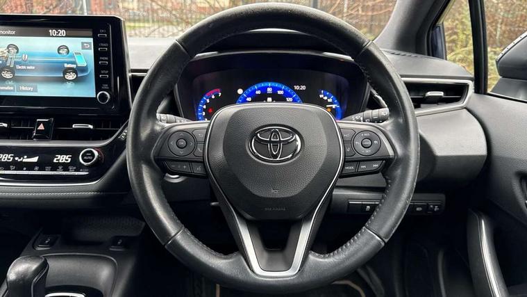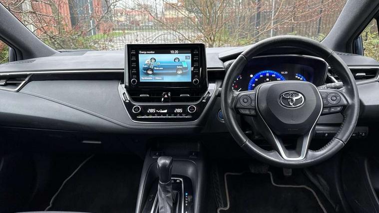 7" Multi information display screen, Bluetooth telephone connectivity, Connected car functionality upgrade, tracker, remote status and e-care, Dynamic radar cruise control (with RSA) including switch on steering wheel, E-call, Electrically assisted power steering, EV drive indicator, Lane Departure Alert (LDA) switch on steering wheel, Memory on adjustable speed limiter, Push button start, Reversing camera, Smartphone integration with Apple CarPlay and Android auto, Gasoline particulate filter, Vehicle Stability Control (VSC), 6 speakers, 8" Touchscreen with MM19 Multimedia system and voice recognition, AM/FM radio, DAB Digital radio, USB and Aux in connectors + 12V front outlet, Anti-jam protection on power windows, Auto up and down function on all power windows, Automatic headlights with high beam assist, Black metallic surround on lower front grille, Black toyota logo in front, Black window frames, Body colour rear spoiler, Body coloured bumpers, Body coloured door mirrors, Body coloured outside door handles, Follow me home headlights, LED daytime running lights, LED front fog lights, LED Headlights, LED High mounted stop light, Manual day/night rear view mirror, Power adjustable heated door mirrors, Power front windows, Power rear windows, Rain sensor, Rear side wing doors, Rear window defogger, Rear window wiper, Shark fin antenna, Time adjustment on intermittent wiper, Turning signal integrated indicators in door mirrors, Unique lower skirt, Unique side rocker with black insert, UV-filter on driver and passenger windows, 3 rear headrests, 3 seat bench in 2nd row, 3 spoke leather steering wheel + gear knob, 60/40 split folding rear seat, Adjustable speed limiter switch on steering wheel, Audio, multimedia and telephone switches on steering wheel, Boot light, Centre room light, Clean air filter, Driver and front passenger personal light, Driver and passenger assist grip, Driver and passenger sun visor with mirror and light, Dual zone automatic air conditioning with ECO mode switch, Fabric armrests, Front and rear cup and bottle holders, Front door pockets, Front head restraints, Front passenger seat, Heated driver and front passenger seats, Illuminated entry system in room lamp, ISOFIX seat fixing (2 fixings on rear outer seats), Leather gear shift with satin chrome on gear shift console, Manual height adjustable for driver and front passenger seat, Parcel shelf, Passenger seat back pocket, Pollen filter, Power adjustable lumbar support on driver seat, Power window switches with satin chrome inserts, Quilted fabric upholstery with grey stitches seats, Rear armrest with 2 cupholders, Rear passenger coat hooks (2), Satin chrome inside door handles, Shopping bag hooks in luggage compartment, Sliding armrest on centre console box, Slow opening glovebox with lights, Tilt/telescopic steering column, Voice recognition switch on steering wheel, Whiplash Injury Lessening (WIL) feature (active headrest) for seats, Toyota safety sense 2 pack - Corolla, 3x3 point rear seatbelts, Adjustable driver and front passenger seat belt extender to top anchor point, Anti lock braking system + Electronic brake force distribution, Brake assist function, Child locks on rear doors, Downhill Assist Control (DAC), Electronic parking brake, Emergency brake light signal (EBS), Front passenger airbag on/off switch, Front seatbelt reminder, HAC - Hill start assist control, Rear seat belt reminder, Seatbelt pretensioners and force limiters, Supplemental restraint system (SRS) 7 airbags - dual driver, dual side curtain, side impact and driver knee airbags, Traction control, Tyre pressure warning system, Acoustic vehicle alert system (AVAS), Alarm with motion sensor and immobilizer, Remote central locking + deadlocks, Satin chrome dash trim, Soft touch texture on upper dashboard, Unique wheel finish with red wheel cap,