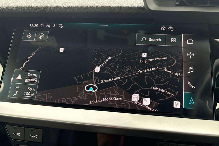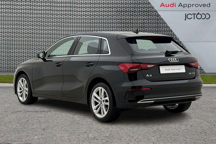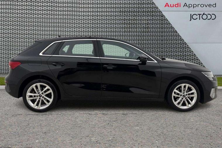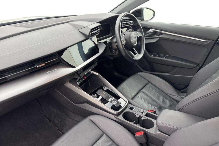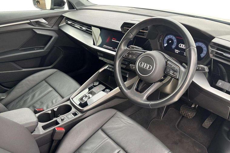 Audi drive select (Auto, Comfort, Dynamic, Efficiency and Individual), Audi smartphone interface, Audi Virtual Cockpit - 10.25" digital and colour instrument cluster, Automatic start/stop system with recuperation, Bluetooth interface, Collision avoidance assistant, e-Call (emergency call), Electromechanical power speed sensitive steering, Lane departure warning system, MMI Navigation Plus with high resolution 10.1" colour touch screen display, Service indicator, Trip computer, Voice control system with natural language interaction, Standard suspension, 2xUSB-C connection with data and charging functions, 6 passive loudspeakers, DAB Digital radio, 3rd brake light, Acoustic glass windscreen, Aluminium window trim, Auto dimming frameless rear view mirror, Body colour exterior mirrors, Body colour roof spoiler, Electrically adjustable/heated/folding/auto dimming door mirrors with integrated LED indications + kerb view function for passenger side, Front electric windows, LED daytime running lights, LED headlights and halogen rear lights, Light and rain sensors, Rear electric windows, Rear side wing doors, Rear window, rear door windows and rear side windows in clear glass, Rear wiper, 12V socket and storage compartment in front centre console, 3 seat bench in 2nd row, 3 spoke leather multifunction steering wheel with paddle shift, 40/20/40 split folding rear seat bench with cupholder, Dual zone electronic climate control, Front and rear centre armrest, Front and rear headrests, Front door sill trims with aluminium inlay, Front/rear floor mats, Height and reach adjustable steering wheel, Interior lighting - Front and rear roof module including reading lights, glove compartment light and right hand side, Luggage compartment floor covering, Manual boot compartment lid, Manually adjustable front seats, Seat side bolsters, Single front passenger seat, Steel grey cloth headlining, Twin leather upholstery, Aluminium interior elements pack - A3 Sportback, Sport styling pack - A3 Sportback, 3x3 point rear seat belts, Audi pre sense front, Driver and front passenger airbag with passenger airbag deactivation, Electronic Stabilisation Control (ESC) including ABS, ASR and EDL, First aid kit with warning triangle and 2 safety vests, Front side airbags with head airbags and interaction airbag, Pre-sense front with pedestrian and cyclist detection, Seatbelt monitoring, Tyre pressure loss indicator, Anti theft alarm, Anti-theft wheel bolts, Electronically operated child lock, Immobiliser, Remote control central locking, Inlays with silk effect paint in platinum grey,