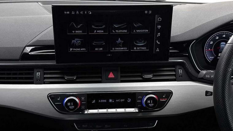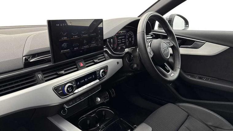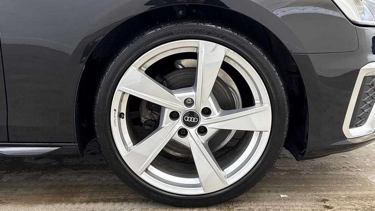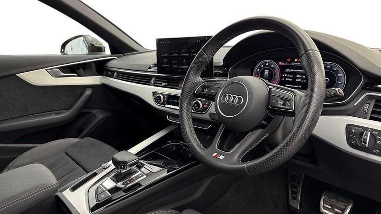 Audi connect safety and service (e-call), Audi connect with Amazon Alexa Integration, Audi drive select, Audi smartphone interface, Audi virtual cockpit, Automatic start-stop system with coasting functionality and efficiency programme, Bluetooth interface, Electromechanical power steering, Email, calendar and text messages displayed via MMI, MMI Navigation plus with MMI touch includes 10.1" high resolution colour MMI display, 3D map, Power operated tailgate, Voice control system, 54 litre fuel tank, Sports suspension lowered by 23mm, 2 USB charging ports, 8 passive loudspeakers, DAB digital radio reception, Aluminium roof rails, Auto dimming rear view mirror, Body colour door handles, Body colour front spoiler lip, Body colour side sill trim, Body coloured door mirrors, Electrically folding auto dimming/adjustable/heated door mirrors with LED side indicators and kerb view function for passenger side, Grained matt black side air inlets with matt aluminium silver inlay, High beam assistant, Honeycomb structure radiator grille in grained matt black, LED headlights with LED rear lights + dynamic rear indicators + headlight adjustment and high beam, turning light + LED daytime running lights, LED third brake light, Matt aluminium silver tailpipe trim, Privacy glass, Rain and light sensors, Rear side wing doors, Rear wiper, S Line badges on the front wings, S line front and rear bumpers with side skirts, S Line rear diffuser in matt anthracite black with trim strip in matt aluminium silver, S Line roof edge spoiler, Variable intermittent front wash/wipe, Windscreen with acoustic glazing, 3 spoke high multi-function sports leather steering wheel grips in perforated leather with S badging including paddle shift, 4 way electric lumbar support for driver and front passenger, 40/20/40 split folding 3 rear seat bench in 3 parts with rear centre armrest, Black cloth headlining, Black perforated leather gearknob, Contrast stitching on seats, steering wheel and gear lever gaiter, Deluxe 3 zone electronic climate control, Door sill trims with aluminium inlay, Electric load area cover, Front and rear head restraints, Front centre armrest, Heated front seats, Illuminated door sill trims with S logo, ISOFIX child seat mounting and top tether, Manual seat adjustment, Single front passenger seat, Stainless steel pedals and foot rest, High gloss package - A4, LED Interior light pack - A4/S4, 3 rear seatbelts, 6 airbags - Driver, front passenger, curtain and side windows, Electronic Stabilisation Control (ESC) including ABS, ASR and EDL, Hill hold assist, Multi collision brake assist, Pop-up bonnet for pedestrian protection, Pre sense city, Rear door child safety locks, Seatbelt monitoring, Warning triangle and first aid kit, Anti theft alarm, Anti theft wheel bolts, Central locking, Keyless Go, Matt brushed aluminium inlays, Tool kit, Tyre repair kit,