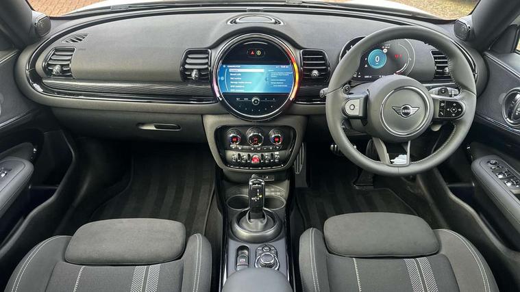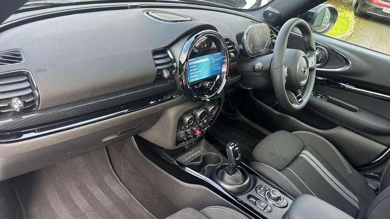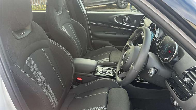 Active Guard incl speed limiting and lane departure functions with auto steering, and front collision warning with brake intervention, Automatic start/stop function with brake energy recuperation, Compatible mobile phone bluetooth with audio streaming, Digital cockpit, Electro-mechanical speed dependant steering assistance, Instrument cluster, Mini E-call, MINI TeleServices, On board computer, Rear parking distance control, Double Vanos system, Fully variable valve control, High precision injection, Performance Control, Steptronic sport transmission with double clutch and steering wheel paddles, FM tuner and DAB digital radio, Bonnet scoop, Chrome fuel filler cap, Dynamic brake lights, Electric windows, Heated rear window, Heated windscreen washer jets, John Cooper Works - aerodynamic kit (front and rear apron, spoiler), front and rear sport bumpers and part-painted side sills with door sill finishers, John Cooper Works rear spoiler, LED headlights with closed ring as daytime driving lights, LED rear light with union jack design, Metal door sill strips with Cooper S imprint, Model logo, Model logo on rear doors, Radiator grille, Rain sensor with auto headlights, Rear fog lights, Rear window wiper, Side scuttle panel with integrated indicator, Split rear doors, Sun/heat protection glass, Twin exhaust tailpipe, White indicator lenses, 12V Accessory socket in centre console, 360L luggage compartment capacity, 4 lashing eyes in luggage compartment, 60/40 split folding rear seat, Anthracite headlining with grab handles and clothes hooks, Chrome interior highlights, Cupholders, English handbook, Glove compartment, Height and length steering column adjustment, Interior lighting with 12 basic colours selectable via toggle switch in roof, Isofix rear child seat preparation, John Cooper Works perforated leather steering wheel with contrast stitching in chilli red and John Cooper Works logo, John Cooper Works sports seat with integrated headrest, adjustable thigh support and John Cooper Works logo, Leather gearshift lever and handbrake gaiters, LED reading lights, vanity mirror lights, front foot well light and spotlight on front seats, Manual air conditioning, Multifunction steering wheel, Storage compartments in doors, Sunvisors with vanity mirrors, Toolkit, Excitement pack - Clubman, Navigation pack - Clubman, 2 tone horn, 3 point seatbelts on all seats, 6 Airbags - front, side, head and seat belt tensioners, Anti-lock braking system (ABS), DSC - Dynamic Stability Control, Electronic handbrake, Front and rear disc brakes, Tyre pressure monitoring system, Alarm system with tilt sensor, monitoring doors, bonnet interior and tailgate, Auto drive away locking, Deadlocking function, Electronic vehicle immobiliser, Locking wheel bolts, Start/stop toggle with keyless go,