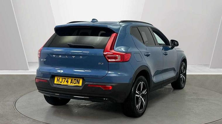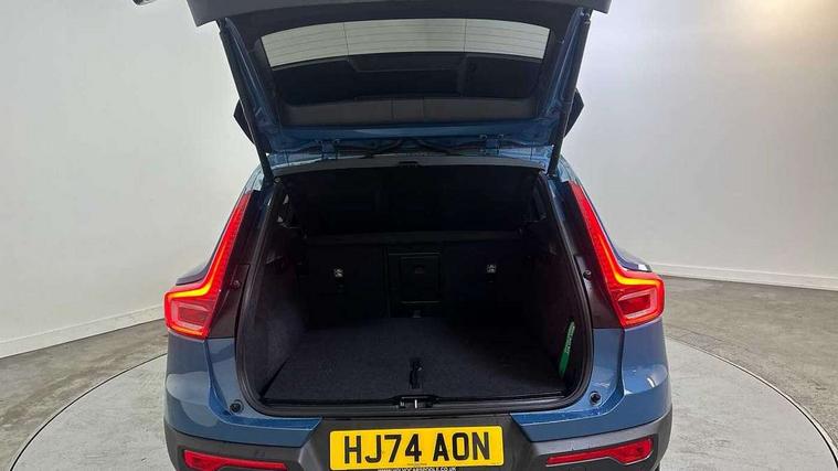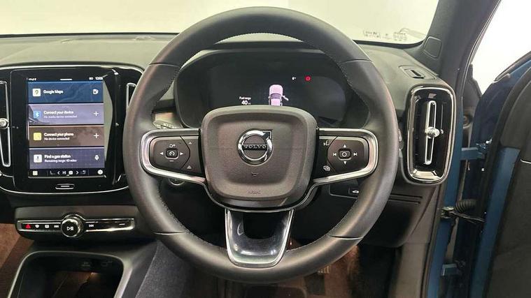 12.3" Progressive Driver Display, 9" centre console portrait touch screen, Adjustable steering wheel force, Android auto (Wired), Apple carplay (wired), Bluetooth handsfree system, Driver alert control, Driver assistance (pilot assist and adaptive cruise control), Driver awareness - Blind spot information system with steer assist, cross traffic alert with autobrake and rear collision warning and mitigation, E-call, Front park assist, Google automotive services - Enabled entertainment apps, navigation with google maps, voice recognition with google assistant, Hands free power tailgate, Intelligent speed assistance, Lane keeping aid, Oncoming Lane Mitigation, Rear park assist, Speed sensitive steering, Volvo cars services with app - Driving journal, emergency and breakdown call, engine remote start, remote door locking/unlocking and vehicle dashboard, Wireless/Inductive Mobile Phone Charging, Automatic transmission with start/stop and manual change functions, Dynamic chassis, DAB Digital radio, Steering wheel mounted remote controls, Adaptive brake lights with high level LED brake lights, Auto dimming feature for exterior door mirrors, Auto dimming interior mirror, Automatic headlamp levelling, Automatic LED Headlights + Active high beam incorporating daytime running lights, Front aluminium tread plates, Front and rear electric windows, High gloss black front and rear skid plate, High gloss black front bumper deco, High gloss black mesh front grille with high gloss black surround, High gloss black window trim, Home safe and approach lighting, Integrated roof rails in high gloss black, LED front fog lights, Puddle lights, Rain sensor with automatic windscreen wiper activation, Rear side wing doors, Rear wiper, Roof antenna, Roof spoiler, Visible VIN plate, 12V socket in front tunnel console and luggage compartment, 2-Zone electronic climate control with CleanZone air quality system and pollen filter, 3 seat bench in 2nd row, 3 Spoke tailored steering wheel with chrome trim, 60/40 versatile split folding rear seat, Centre console cupholders and storage, Charcoal headlining, Connect textile/microtech upholstery, Flexible load floor and grocery bag holder, Floor mats, Front cabin courtesy lights, Front door pocket, front cupholder, ambient front door, rear reading, rear courtesy, instrument panel and tailgate lighting, Front footwell illumination, Front headrests, Front reading lights, Front seat cushion extensions, Front side step illumination (under door), Glovebox bag hook, Heated front seats, Height adjustable passenger seat, Height/reach adjustable steering column, High gloss centre tunnel deco, Illuminated glovebox, Illuminated luggage compartment, Illuminated vanity mirrors + ticket holder, Integrated waste bin, Isofix attachments on outer rear seats, Load cover, Load protection net, Multi directional lumbar support for driver and passenger seat, Power driver seat with memory + exterior mirrors memory, Rear armrest with cupholders, Rear headrests, Single front passenger seat, Underfloor cargo storage, Climate pack without heated front seats - XC40, 3x3 point rear seatbelts, City safety with steering support with Pedestrian + cyclist + front collision warning with full auto brake and rear auto brake, Driver and passenger airbags, Drivers knee airbag, Electronic parking brake with auto hold, First aid kit, Front and outer rear seatbelt reminder and pretensioners, Front seats SIPS airbags, Hill descent control, Hill start assist, Inflatable curtain, Passenger airbag cut-off device, Power child locks on rear doors, Road sign information display, Run off Road Protection, SIPS (Side Impact Protection System), Slippery road and hazard light alert, Stability and Traction Control with Spin control, Engine Drag Control and Corner Traction Control, Tyre pressure monitoring system, Vehicle deceleration control with Anti-lock Brake System, Electronic Brake Distribution and Emergency Brake Assist, Warning triangle, WHIPS whiplash protection system - front, 2 x Key integrated remote control central locking including with deadlocking system and auto open/close windows, Anti-theft alarm including immobiliser/volume sensor + level sensor, Keyless drive includes keyless entry and keyless start, Locking wheel nuts,