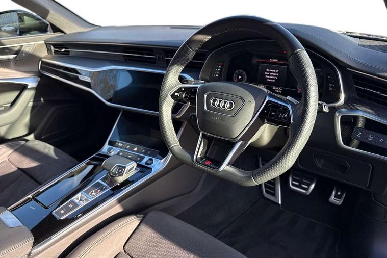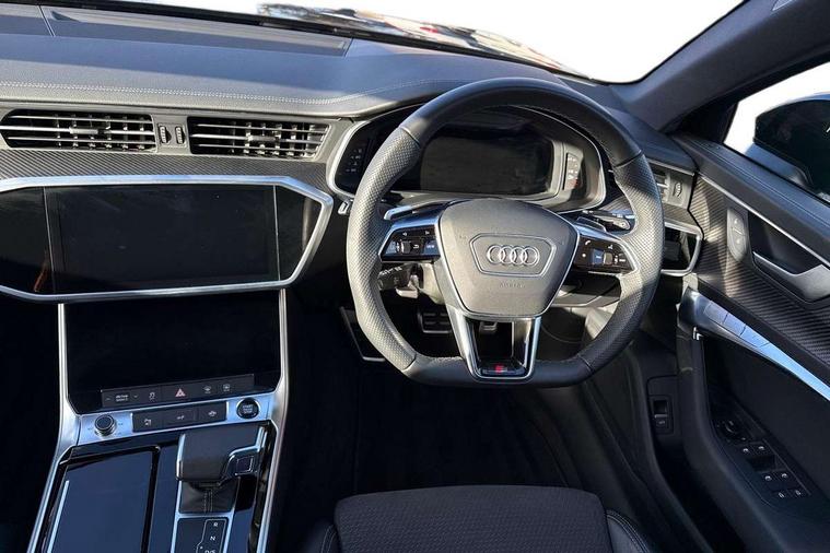 7" high resolution colour driver information display system, Audi connect safety and service (e-call), Audi connect with Amazon Alexa Integration, Audi drive select, Audi parking system plus - acoustic and visual park assist system for front and rear, Automatic start/stop system with coasting functionality, Bluetooth interface, Lane departure warning system, Power operated tailgate, Progressive steering, Rear view camera, Service interval indicator, Smartphone interface includes wireless Apple carplay/Android Auto, Voice control system, 12V Mild hybrid, 24 litre AdBlue tank, Diesel particulate filter, Quattro on demand, Sports suspension, Audi front music interface, Audi sound system, Auxiliary input socket, DAB Digital radio, USB connection, Black roof rails, Electric front/rear windows, Frameless auto dimming interior rear view mirror, Front intermittent wipers, Gloss black highlights on the exterior area of the Audi Single frame, Gloss black highlights on the front and rear bumpers, Gloss black highlights on the radiator grille, Gloss black highlights on the side windows trim strips, Headlight washers, Heat insulating darkened glass in side and rear windows, Heat insulating glass in windshield, LED signature front daytime running light, LED third brake light, Matrix LED headlights, Matt black rear diffuser with diffuser strip and tailpipes in chrome, Matt black side air intake grille with inlay in matt aluminium, Privacy glass, Rain and light sensors, Rear roof spoiler, Rear side wing doors, Rear wiper, Signature rear LED light design, 2 zone deluxe electronic climate control, 4 way electric lumbar support for driver and front passenger, 40/20/40 split folding 3 rear seat bench in 3 parts with rear centre armrest, Black cloth headlining, Black front and rear carpet floor mat, Black steering wheel insert, Electrically adjustable front seats with driver memory, Front centre armrest, Front head restraints, Heated front seats, Height/reach adjust steering wheel, Illuminated door sill trims with S logo, Illuminated sun visors with vanity mirrors, ISOFIX child seat mounting and Top Tether with front passenger airbag deactivation, Leather gear knob, Luggage compartment system, Rear headrests, Single front passenger seat, Stainless steel pedals and foot rest, LED Interior Ambient Lighting Pack - A6, Non smoking pack - A6, Technology pack - A6, 3 point seatbelts on all seats, Airbags - Front side, front and rear including head, Audi pre-sense front, Black seatbelts, EBD - Electronic brakeforce distribution, Electromechanical parking brake, Electronic Stability Control (ESC) including ABS, ASR and EDL, Extended pedestrian protection measures, Manual child proof rear door locks, Seatbelt monitoring, Tyre pressure warning light, Warning triangle and first aid kit, Anti theft alarm with tow away protection, Anti-theft wheel bolts and wheel loosening detection, Immobiliser, Keyless Go, Remote central locking, Carbon twill inlays, 20" 5 V spoke star design Audi sport cast aluminium alloy wheels in matt grey look,