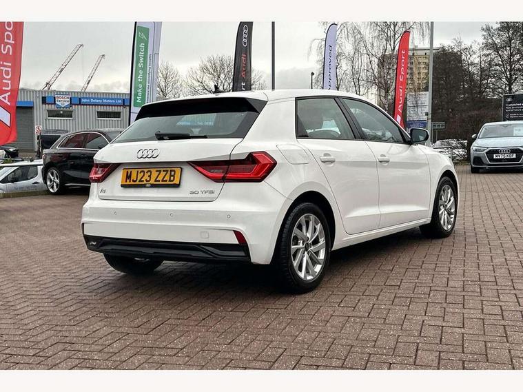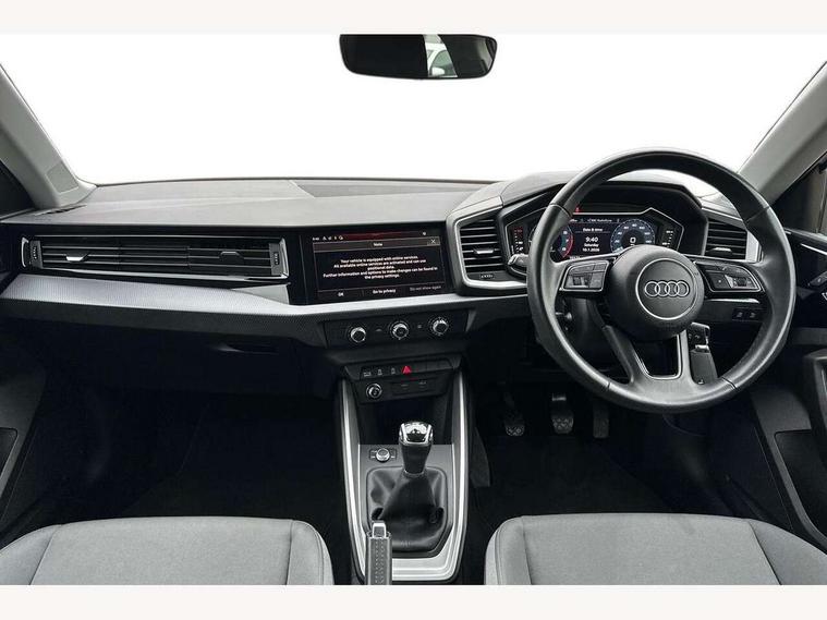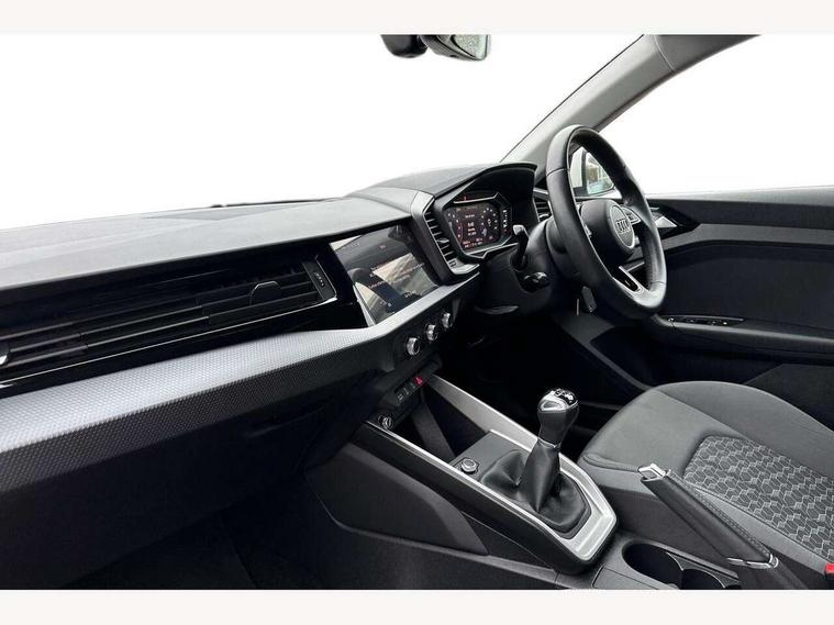 10.25" Digital instrument cluster display classis style instrument dials + speed, odometer, time, outside temperature, telephone menu + fuel level warning, Audi drive select - power steering assistance + engine, Audi smartphone interface with connect compatible smartphone via USB directly MMI display + Nav, music, third party apps controlled via MMI controller, Automatic start/stop system, Bluetooth interface, Cruise control, Driver's information system, Electromechanical power steering, Emergency e-call, Lane departure warning system, Rear parking sensor, Service interval indicator, Speed limiter, Voice control system, Washer fluid level indicator, Dynamic suspension, 2 x USB type C connection points, 6 passive loudspeakers, DAB Digital radio, MMI radio plus with 10.1" colour MMI display screen and MMI touch, Auto dimming rear view mirror, Body coloured bumpers, Body coloured door mirrors, Electric front and rear windows, Electrically adjustable, heated, folding door mirrors with integrated LED side indicator, Front side air inlets in grained matt black and C frame in anthracite black, Heat insulating glass windscreen and side windows, Heated rear windscreen, High level LED brake light, LED headlights with LED rear lights + dynamic rear indicators + headlight adjustment and high beam, turning light + LED daytime running lights, Radiator grille and rear diffuser in matt anthracite black, Radiator protective grille frame in matt aluminium silver, Rain and light sensors, Rear fog lights, Rear side wing doors, Rear wiper, Side front spoiler lips in grained matt black, 12V socket in centre console with two cup holders, 3 rear seats with headrests, 3 seat bench in 2nd row, 3 spoke leather multifunction plus steering wheel, 40:60 Split folding rear seat or folded fully, Black front and rear floor mats, Door sill trims with aluminium inlay, Driver and passenger seat with manual height adjust with forward and backwards adjustment, Front head restraints, Front passenger seat, Grey cloth headlining, Height and reach adjustable steering wheel, ISOFIX child seat mounting for front passenger and outer rear seats including top tether attachment point of outer rear seats, Leather gear knob with aluminium trim, Leatherette handbrake grip, Luggage compartment light with front and rear reading lights, Manual air conditioning, Manually adjustable lumbar support in front seats, Novum cloth upholstery with front sport seats, Luggage compartment pack - A1, 3x3 point rear seatbelts, Audi pre-sense front with pedestrain and cyclist recognition, Brake assist function, Driver and front passenger airbag with front side and head airbags, Electronic Stability Control including ABS, EBD, ASR and EDL, Front passenger airbag deactivation switch, Hill hold assist, Manual rear child locks, Seatbelt height adjustment for front seats, Seatbelt monitoring, Tyre pressure warning light, Warning triangle and first aid kit, Anti theft alarm, Anti theft wheel bolts and loose wheel warning, Immobiliser, Remote central locking with 2 foldaway keys, Aluminium trim for control switches, air vents and digital instrument cluster, Black dashboard, Silver grey accent areas including air vents, door handle recesses and centre console in diamond paint finish, Slate grey inlays polygon structure in fine paint finish,