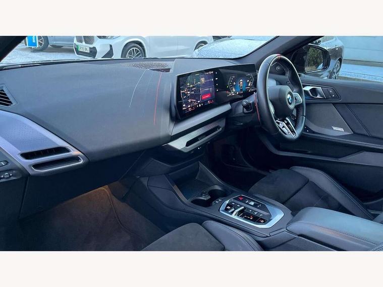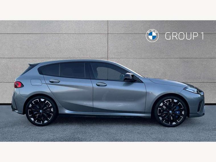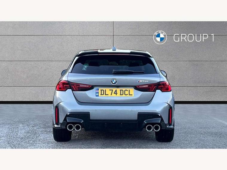 Active guard plus, Attentiveness assist, Bluetooth / WiFi interface for wireless connection of mobile terminal devices and audio streaming, BMW ConnectedDrive online services, BMW Live cockpit plus, BMW Teleservices, Check Control warning system for monitoring of lights and door/luggage compartment open warning, Cruise control with speed limiter, Eco pro mode, Electric power steering, Electro hydraulically controlled multi-plate clutch transfers drive to rear axle and with power take-off device located on the front differential., Energy efficient operating strategy, Front and rear parking sensors, Front axle single joint with specific axle kinematics to minimise drive influences on steering + provide increased rigidity agile driving behaviour, Gearshift time display in manual mode, Integrated owners handbook, Lane departure warning system, M Sports steering with M135i xDrive specific settings, Oil sensor for level and grade, On board computer, Optimum shift indicator, Park assist including reversing assistant, lateral parking aid and reversing assist camera, Personal Profile, Pull away assistant, Rigidly mounted rear subframe - Multi link construction with separate spring / damper configuration and excellent driving characteristics, Speed limit Info including no-overtaking indicator, Speedometer, Sporty fast gear shifting in sport mode, 49 litre fuel tank, Aluminium lightweight construction, Anti roll bar front and rear, Balancer shaft, Double VANOS, Drive Performance Control, Eight speed sport automatic transmission with gearshift paddle switches, Electronic differential lock, Electronic selector lever, Engine cover with M performance designation, High precision injection, Launch control, M Adaptive suspension, M135i specific heavily de-throttled engine intake air guide, M135i specific high-performance cooling package, M135i specific larger turbocharger with integrated divert-air valve, Petrol Particulate Filter, Twin tube gas filled shock absorbers with degressive characteristic curve, VALVETRONIC engine management, Variable, stepless and infinitely adjustable distribution of drive torque between the front and rear axles, xDrive intelligent all wheel drive with M135i specific reinforced components, DAB Digital radio, Harman/Kardon surround sound audio system with 464W amplifier power, 9 channels and 16 speakers, Auto dimming rear view mirror, Automatic headlight beam throw control, Automatic windscreen wipers and automatic headlight, Body colour door handles, Body colour roof trims, Cerium grey exterior mirror caps, Direction indicator side lights in exterior mirrors, Electrically adjustable exterior mirror with mirror adjustment switch on drivers armrest and aspheric on driver side, convex on passenger side, Exhaust tailpipe, Cerium Grey with bevelled finish - twin, round 100mm, left and right split, Fading support, Folding side mirrors with auto dimming/folding wing mirrors with auto dimming, Follow me home headlights, Front and rear bumper system with replaceable deformation elements, Front and rear electric windows with open and close fingertip control, anti trap facility and comfort closing, Front door sill finishers with M135i designation, Green tinted heat protection glazing, High gloss shadowline window frame, Recess cover mirror frames and B/C pillar embelisher trim, High level third brake light, Integrated front windscreen with washer jets, Kidney grille frame in Cerium Grey with Mesh design, LED daytime running lights, LED eyebrow turn indicators, LED Headlights, Lightweight engineering, M Performance exhaust system with valve control and minimised exhaust back pressure, M Performance specific setup, M sport roof spoiler, Matt black air guide grilles, Matt black wheel arch trim, Nearside reverse light in rear light cluster, Preparation for high beam assistant, Rear fog lights, Rear side wing doors, Rear window wiper, Reinforced crank drive, new pistons and adapted con rods, Shark fin antenna, Sun protection glass, Trailer stabilisation logic, Visible VIN plate, Welcome lighting, 12V power socket in front centre console with blanking plug, 3 rear seat head restraints, 3 seat bench in 2nd row, 3 spoke sports leather steering wheel with black leather and stitching, pearl chrome decorative finish, specific M Badge, Anthracite headlining, Black boot net with lashing eyes, Cargo function on 2nd seat row, Child seat ISOFIX attachment for two outer rear seats and front passenger seat with anchorage points, Conditioned based service, Driver and front passenger backrest net on rear, Driver and front passenger seat heating, Driver side folding compartment in instrument panel, Folding rear clothes hook, Four grab handles integrated in roof lining, Front and rear door pockets with bottle holders, Front and rear side armrest integrated into door trim, Front armrest, Glove compartment, Height adjustable front head restraints, Luggage compartment for bag hooks on left and right, foldable luggage compartment liner and four lashing eyelets, Manual adjust steering wheel, Multi-function controls for steering wheel, Rear seat backrest with manual 60:40 split folding with 3 top tether clips integrated on rear of seat panels, Single front passenger seat, Storage compartment in centre console, Storage compartment in luggage compartment, Stowage of the parcel shelf in luggage compartment trim, Sun visors with vanity mirrors and insert tab, Two front centre console cupholders, Type C two USB ports in rear centre console, Velour floor mats, Connected pack professional - 1 Series, Interior lights pack - 1 Series, M Sport exterior styling aerodynamics pack - 1 Series 135i, 2 tone horn, 3 point seatbelts on all seats, front pyrotechnic belt tensioners, stopper and belt force limiters, rear coded belt buckles, Airbags - Front driver/passenger, front and rear curtain head protection, front side, manual deactivation of front passenger airbag, Anti lock braking system (ABS) with brake assist, BMW emergency c