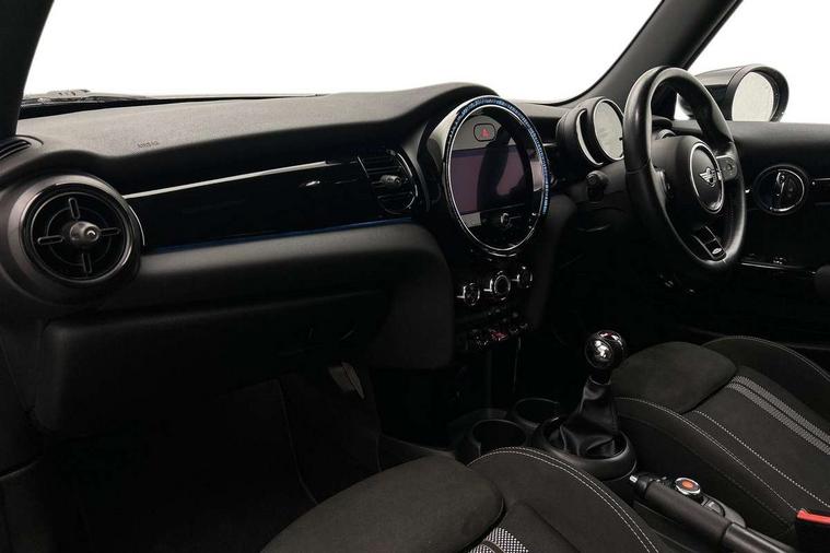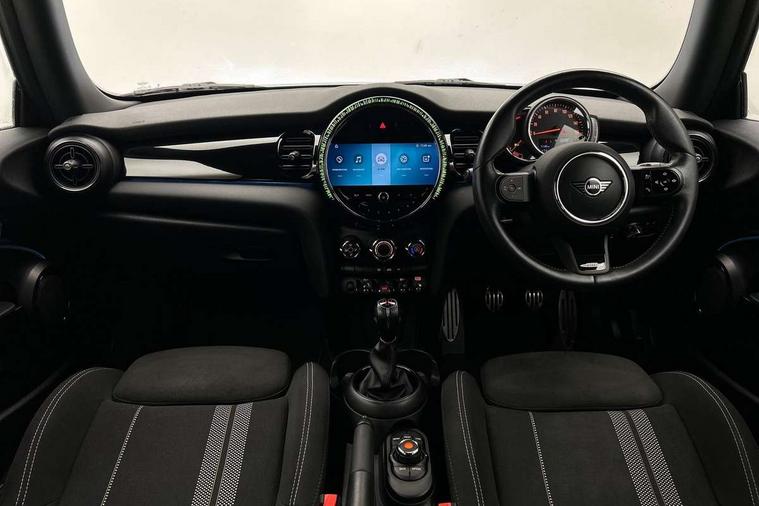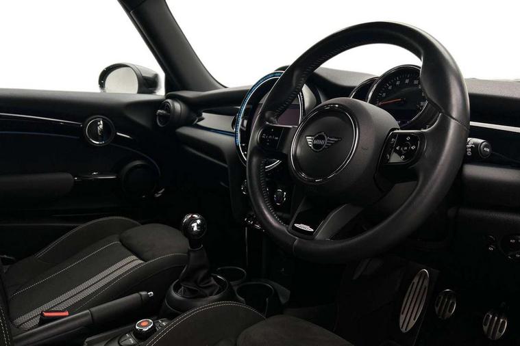 Automatic start/stop function with brake energy recuperation, Compatible mobile phone bluetooth with audio streaming, Cruise control with brake assist, Electro-mechanical speed dependant steering assistance, Flexible car sharing preparation, Instrument cluster, MINI Driving Modes - centre toggle switch to control driving setting (sport, mid and green), Mini E-call, MINI TeleServices, On board computer, Rear park distance control, Service interval indicator, 6 Speed manual transmission including gear change indicator display, Adaptive suspension, Double Vanos system, Fully variable valve control, High precision injection, Performance Control, 4 speakers in front door trims and underneath front seats, 8.8" touchscreen with LED ring, FM tuner and DAB digital radio, Automatic headlight activation switch, Bonnet scoop, Dynamic brake lights, Electric front windows, Heated rear window, Heated windscreen washer jets, JCW Aerodynamic kit - Front and rear bumpers with sporty JCW styling and part-painted side sills with MINI John Cooper Works door sill finishers, John Cooper Works rear spoiler, LED headlight with closed ring and daytime driving lights, Metal door sill strips with Cooper S, Model logo Cooper S on right of tailgate, Radiator grille chrome border with honeycomb structure including S Badge, Rain sensor window wipers, Rear fog lights, Rear LED lights with union jack design, Rear window wiper, Side scuttle panel with integrated indicator, Sun/heat protection glass, Two central exhaust tailpipes with chrome finisher, White indicator lenses, 12V Accessory socket in centre console, 4 lashing eyes in luggage compartment, 60/40 split folding rear seat, Anthracite headliner including grab handles and clothes hooks, Carbon black colour line - Knee roll and door armrest, Chrome interior highlights, Cupholders, Front and rear isofix with front passenger airbag deactivation, Glove compartment, Height and length steering column adjustment, Interior lighting with 12 different colours across the dashboard, underneath door bezel with illuminated laser-engraved design on central display, JCW Sport seats with integrated headrests, adjustable thigh support and John Cooper Works logo, Leatherette gearshift lever and handbrake gaiters, LED reading lights, vanity mirror lights, front foot well light and spotlight on front seats, Manual air conditioning, Mechanical seat adjustment - forward/back & backrest for front seats and driver seat height adjust, Multifunction steering wheel, Passenger seat height adjuster, Storage compartments in doors, Storage pocket on back of front seats, Sunvisors with vanity mirrors, Velour floor mats, Walknappa leather steering wheel with grey seam and John Cooper Works badge on Piano Black lower steering wheel spoke, Piano black exterior pack - Mini Hatchback Cooper S, 3 point seatbelts on all four seats, 6 Airbags - front, side, head and seat belt tensioners, Anti-lock braking system (ABS), DSC - Dynamic Stability Control, Front and rear disc brakes, Two tone horn, Tyre pressure monitoring system, Alarm system with tilt sensor, monitoring doors, bonnet interior and tailgate, Electronic vehicle immobiliser, Start/stop toggle with keyless go, Piano black interior trim, Tool kit,