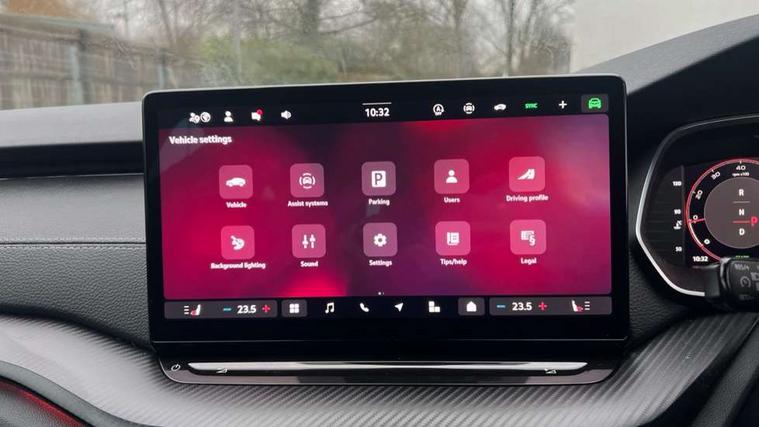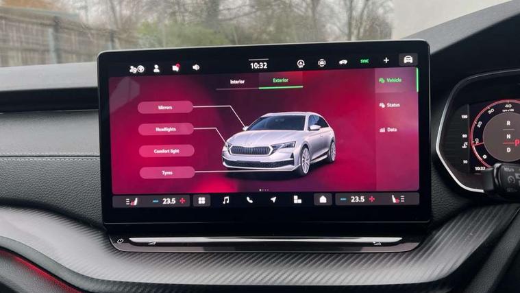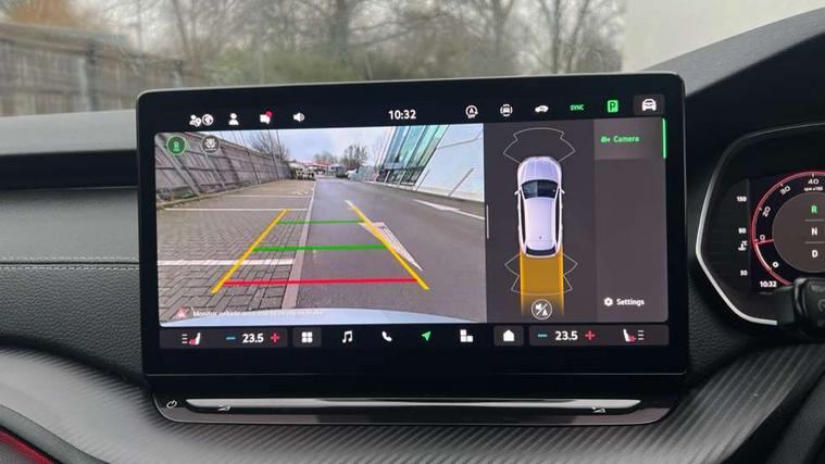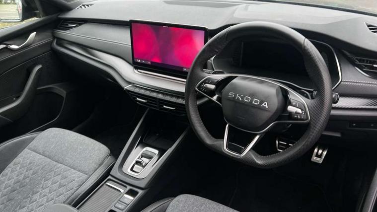 1x USB Typc C port in rear view mirror, 4x USB Type C ports - 2x in front centre console and 2x in rear (45W), Drive mode selection, Driver fatigue sensor, eCall emergency system, Front assist system, Progressive dynamic steering, Traffic sign recognition, Turn Assist, Virtual Cockpit - 10.25" digital display, Voice control system, Wireless charging (15W) with cooling function, Wireless SmartLink for Apple CarPlay and Android Auto, Sports suspension with 15mm lower, 13" touchscreen display with navigation, DAB Digital radio, Aero front windscreen wipers with intermittent function, Auto dimming rear view mirror, Body colour bumpers, Body colour door handles, Electric front and rear windows, Exterior gloss black sports styling including front grille, window surrounds, door mirrors and badging, Gloss black diffuser, Gloss black roof rails, Gloss black spoiler, Heated rear windscreen, High beam control, High level third brake light, Ice scraper in fuel cap, LED daytime running lights, Logo projection in front doors, Rain and light sensors, Rear fog light on one side, Rear privacy glass, Rear side wing doors, Rear window wiper, 12 volt socket in boot, 3 rear headrests, 3 seat bench in 2nd row, 4 foldable roof handles, Aluminium pedals, Front head restraints, Front sport seats, Heated front seats, Illuminated glovebox, Interior door handles in dark chrome, Jumbo Box storage, Luggage compartment lighting x2 lights, Mechanical rear seat release from boot, Single front passenger seat, Steering wheel in black leather with black stitching, Storage compartments in left and right of boot, Sun visors with mirrors, Sunglasses storage, Ticket holder, Umbrella in door panel, Unsplit rear bench seat, split folding backrest with centre armrest with cupholder, SportLine Design Selection pack - Octavia, 3x3 point rear seat belts, Alarm with interior monitoring, tilt sensor and back up horn, Curtain airbags and front side airbags, Driver and front passenger airbags, Drivers knee airbag, Electronic parking brake, ESC including ABS, EBV, MSR, ASR, EDS, HBA, DSR, Front central airbag, Hill hold assist, ISOFIX on front passenger seat and outer rear seats, Passenger airbag deactivate switch, Three point seat belts in front and rear, Two tone horn, Tyre pressure monitor, Visual and acoustic seat belt reminder, Warning reflectors in front door, Anti-theft wheel bolts, Keyless start/stop, Remote central locking, Gloss black air vent surrounds,