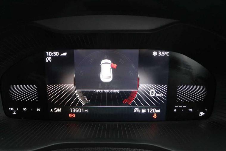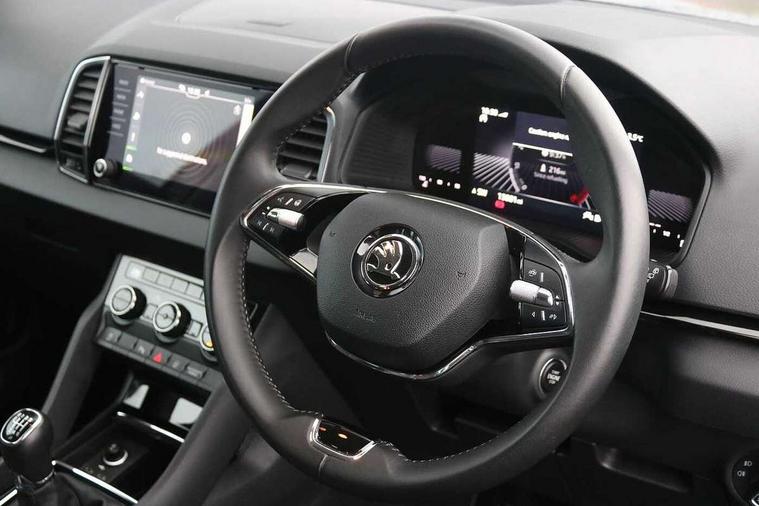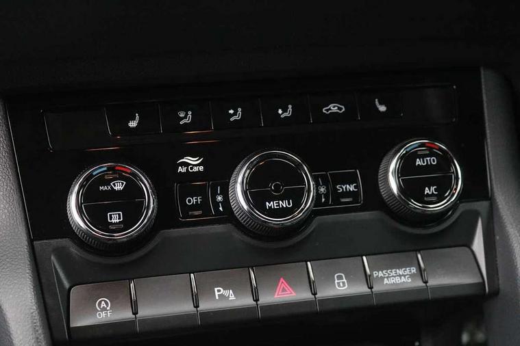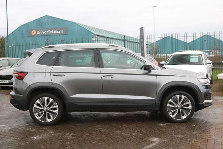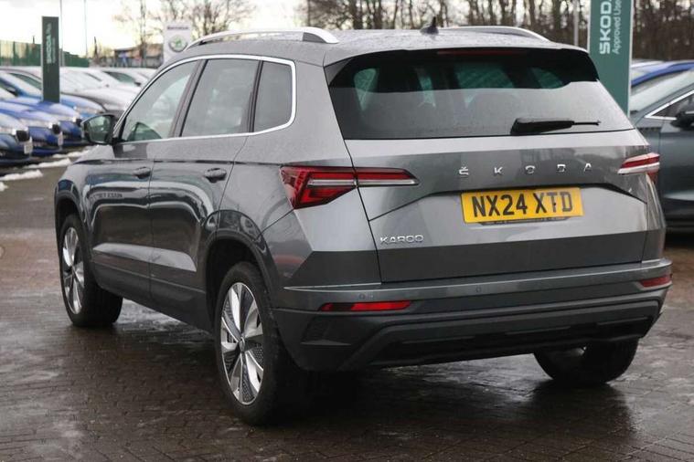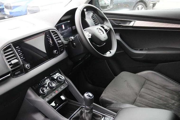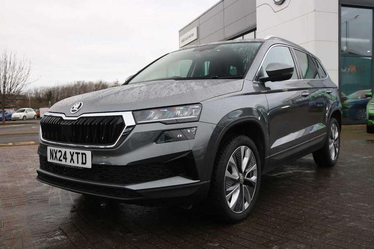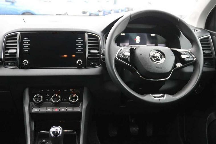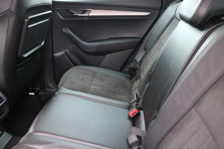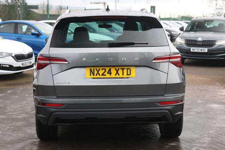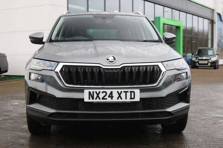 8" Digital display, Advanced driver attention and drowsiness monitor, Emergency services call system, Outside temperature gauge, Sensor for driver assistance systems, Service interval indicator, SmartLink wireless for Apple and wired for Android, Start/stop system with regenerative braking, USB C Port x 2 in front centre console, Virtual Cockpit - 10.25" digital display, Wireless smartphone charging, DAB radio with Bluetooth, USB connection, Acoustic glass, Aero front windscreen wipers with intermittent function, Auto dimming rear view mirror with light and rain sensors, Black electric window control buttons, Body colour door mirrors and handles, Electric front and rear windows with child proof lock, Heated rear windscreen, LED 3rd brake light, LED daytime running lights, LED rear lights with high functionality welcome effect and dynamic indicators, Light assistant (coming/leaving home/tunnel light), Plastic scuff plates in door apertures, Privacy glass, Rear side wing doors, Rear spoiler, Rear window wiper with washer system and intermittent control, Safety reflectors on front doors, 1.5 litre bottle holders in driver and front passenger door panels, 12V socket in boot, 12v socket in front centre armrest with storage compartment and rear air vents, 2 spoke leather heated multifunction steering wheel, 2 x Tablet holder, 3 rear height adjustable headrests, 3 seat bench in 2nd row, 4 foldable roof handles with rear coat hooks, Black floor carpet, Chrome inner door handles, Double sided boot floor, Foldable hooks in the boot, Front head restraints, Height adjustable front three point seats belts with tensioners, Height/reach adjust steering wheel, Ice scraper, Illuminated glovebox, Illuminated luggage compartment, Interior noise suppression, Isofix child seat preparation for front passenger seat, Isofix child seat preparation outer rear, Manual lumbar support for front seats, Pearl grey interior ceiling, Pen holder, Pollen filter, Rear boot cover, Rear reading lights, Rubbish bin door, Safety vest holder, Single front passenger seat, Storage box in upper central dashboard closed, Sunvisors with illuminated vanity mirrors, Textile floor mats, Ticket holder, Design Pack - Karoq, Non Smokers pack, Parking pack - Karoq, Automatic door unlocking in case of crash, Automatic fuel cut off in case of crash, Driver airbag, Electronic parking brake with auto hold function, Emergency rear braking signal, ESC including ABS, MSR, ASR, EDS, HBA, DSR, RBS, MKB and traction control, Front side airbags, Head airbags, Hill hold control, Knee airbags, Passenger airbag with switch-off function, Pedestrian monitor, Seatbelt reminder signalisation and pretensioner for all seats, Three point seatbelts rear, Two tone horn, Tyre pressure monitor, Alarm with interior monitoring, back up horn and tilt sensor with safe function, Electronic engine immobiliser, Keyless entry and start/stop, Remote central locking with 2 remote folding keys, Black centre console, Chrome framed air vents, Satin black dashboard, 18" Procyon silver alloy wheels with anthracite aero inserts, Anti-theft wheel bolts protection, Breakdown and tool kit,