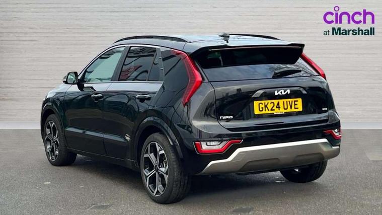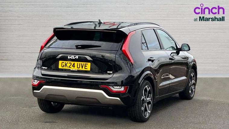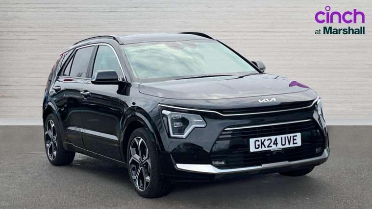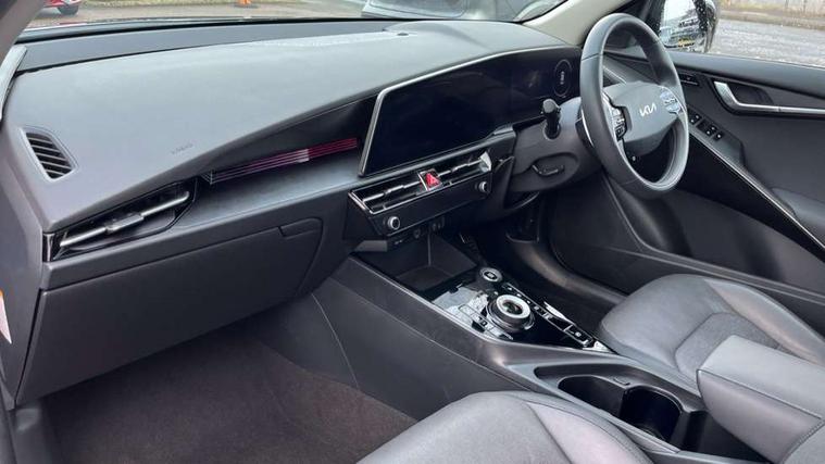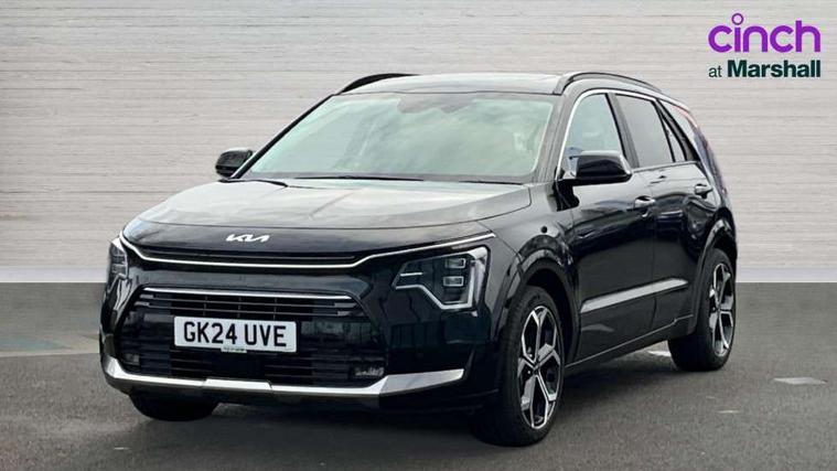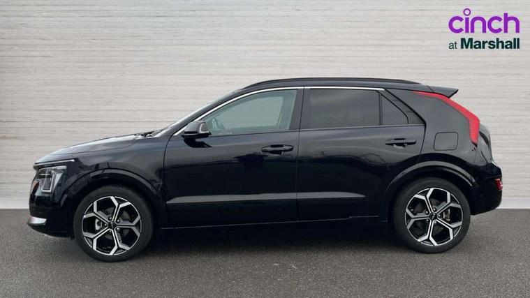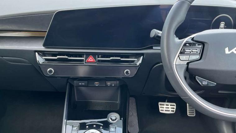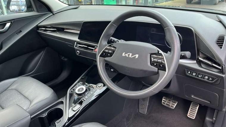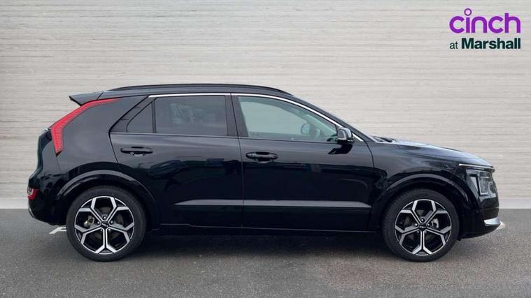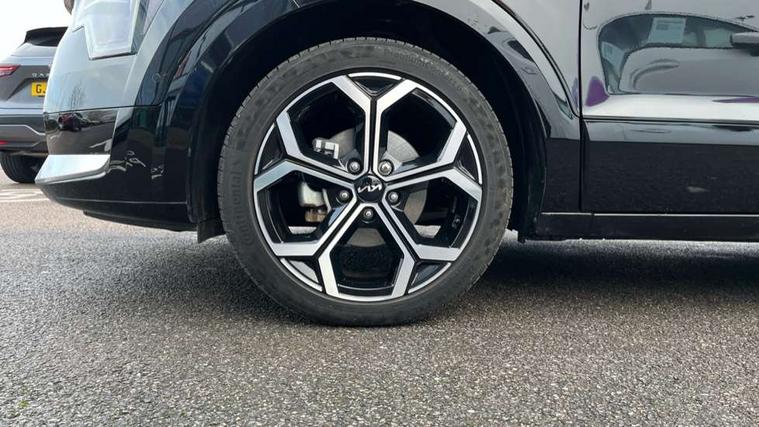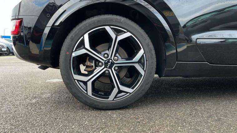 10.25" Supervision colour cluster display, 10.25" touchscreen satellite navigation, Adaptive smart cruise control function (SCC) with stop and go, Apple car play/Android Auto with voice control, Blind spot collision avoidance assist, Drive mode select (Eco, sport), E-call, Emergency stop signalling system, Forward Collision-Avoidance Assist (FCA) 1.5 - City/Pedestrian/Cyclist/Junction turning, Front parking sensors, Head up Display, Highway Driving Assist (HDA), Kia Connect (UVO), Lane Following Assist (LFA), Lane keep assist, Motor driven power steering, Parking collision avoidance assist (PCA), Power opening/closing tailgate, Rear cross traffic alert, Rear parking sensors, Remote smart parking assist, Reversing camera with dynamic guide lines, Safe exit warning (SEW), Speed limit assist, Trip computer with distance/fuel consumption/average speed, Wireless Smartphone charger, 220v AC Inverter, 'Shark fin' mobile antenna, 2 Front USB Charge port (one for C-type/one for USB), 2 type C USB ports on front seats, 6 speakers, Bluetooth with music streaming, DAB Digital radio, Steering wheel mounted controls, Acoustic windshield, All round electric windows with drivers and front passenger auto up/down and safety function, Auto dimming rear view mirror, Automatic defog system, Automatic headlight control system, Black grille with chrome surround, Body colour bumpers, Body colour exterior door handles, Deluxe door scuff plates, Dual LED headlights (low and high projection), Electric heated door mirrors, Electrically folding door mirrors, Front and rear chrome skid plates, Front fog lights, Heated rear window with timer, High gloss black cladding, High gloss black door mirrors, LED daytime running lights, LED rear combination lights, LED third brake light, One touch single tilting/sliding power sunroof, Privacy glass - Rear windows and tailgate, Rain sensing front wipers, Rear fog lights, Rear side wing doors, Rear spoiler, Rear wiper, Roof rails, Solar glass windscreen, Welcome and follow-me home light functionality, Windscreen Washer Level Warning, 12V socket in front, 12V socket in luggage compartment, 3 seat bench in 2nd row, 60:40 split remote folding rear seats, All-round height adjustable headrests, Aluminium pedals, Artificial leather centre console storage box, Artificial leather steering wheel, Centre console cupholder, Chrome coating interior door handles, Driver and front passenger power adjusted seat, Driver power adjusted memory seat, Driver/passenger sunvisors with illuminated vanity mirrors, Drivers seat power lumbar support, Dual zone automatic air conditioning, Front and rear door storage, Heated front seats, Heated outer rear seats, Heated steering wheel, Illuminated glovebox, Interior door lock/unlock function, ISOFIX Child seat top tethers and anchor fixings, LED overhead console, 2nd row and luggage lamp, Luggage area load cover, Luggage board, Paddle shifts, Passenger premium relaxation seat, Power adjustable lumbar support on front passenger seat, Rear armrest, Seatback pocket - driver, Seatback pocket - front passenger, Shift by wire SBW, Single front passenger seat, Tilt/telescopic adjustable steering wheel, Vegan leather upholstery, Ventilated front seats, Ventiliation ducts to rear compartment, Towing pack - Niro, 3 point seatbelts on all seats, ABS, Automatic unlocking of doors in case of impact, Centre side front airbags, Curtain and side airbags, Drivers knee airbag, Dual shell horn, Electric parking brake with auto hold function, Electronic stability control, Front passenger airbag deactivation, Height adjustable front seatbelts, Hill start assist control (HAC), Manual rear child locks, Rear seat alert system, Traction control, Tyre pressure monitoring system, Alarm system and engine immobiliser, Deadlocks, Engine Start/Stop Button with Smart Entry System, Locking wheel nuts, Visible vehicle identification number, Warranty - 7 Years/ 100, 000 miles, Centre fascia chopped carbon, 18" Alloy wheels, Tyre mobility kit,