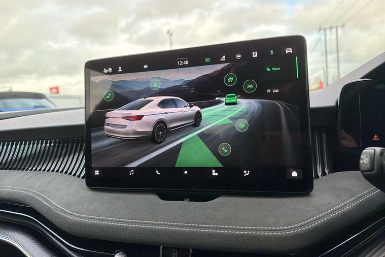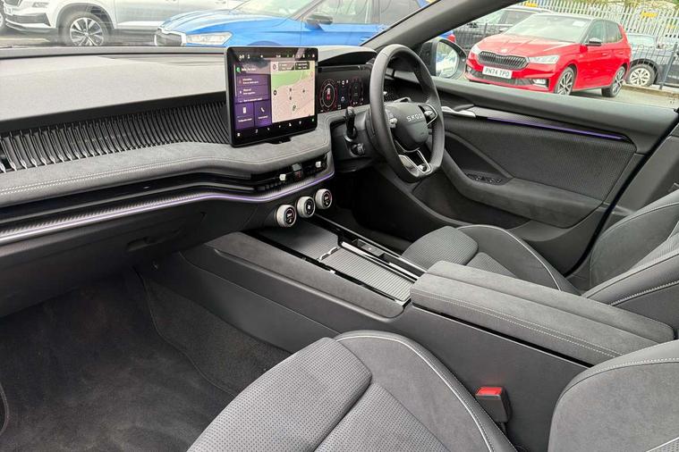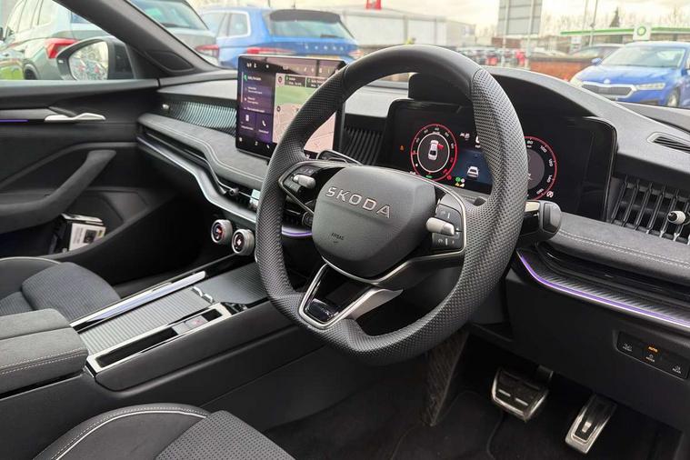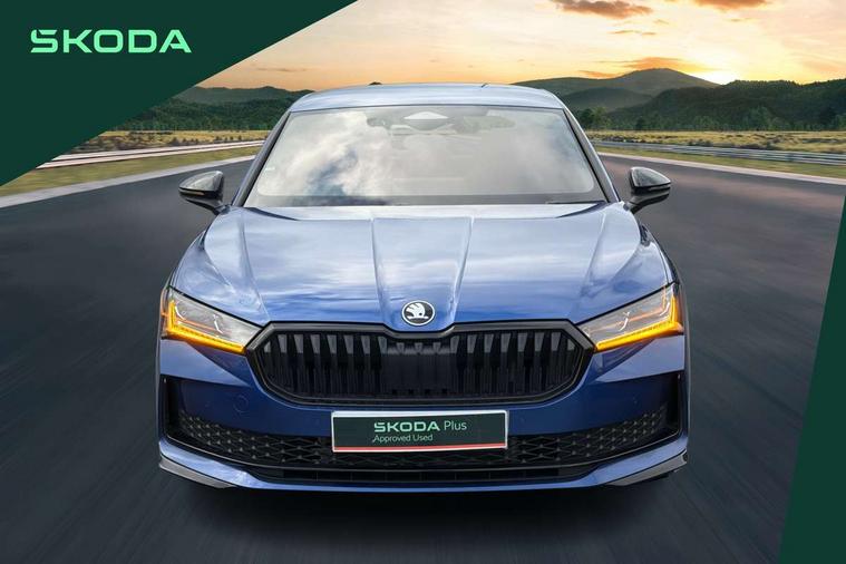 13" touchscreen display with satellite navigation, 4x USB-C ports (2x in front centre console and 2x in rear) (45W), Adaptive cruise control with speed assist, lane assist plus and traffic tram assist, Blind spot detection with door exit warning, Bluetooth system, CareConnect and Emergency Call, ChatGPT functionality, Driver fatigue sensor, Front assist with extended predictive pedestrian protection, Front cross traffic assist, PAS, Quick start all heating software functionality, Stop/start engine system, Traffic sign recognition, Turn assist with evasive assistance, Virtual Cockpit - 10.25" digital display, Voice control system, Washer for rear camera, Wireless charging for one smartphone (15W) with cooling function, Wireless smartlink apple carplay, SmartLink+ android auto, Dynamic chassis control plus with progressive dynamic steering, DAB Digital radio, Display cleaner, FM radio connection, Web radio connection, Acoustic side windows and interior noise suppression, Backdrop lighting, Black exterior styling window and grille surrounds, Body colour door handles, Dynamic range control with poor weather light and integrated fog light, Electrically adjustable, heated, folding and driver side auto-dimming door mirrors with memory function, integrated indicators and logo projection, Frameless auto-dimming rear view mirror with USB-C, Gloss black door mirrors, Ice scraper in fuel tank cap, LED 3rd brake light, Light assist with High beam control, Light assistant (coming/leaving home/tunnel light), Privacy glass, Rear fog lights (x2), Rear side wing doors, Skoda lettering in black, Sportline badging, Sports bumpers, Windscreen wipers with rain sensor, 12V socket 1x centre console 1x boot, 14-way electrically adjustable, memory, front seats with 4-way pneumatic lumbar support, and extendable thigh support with smart comfort entry aid, 2x cargo elements in boot, 2x light in boot, 3 seat bench in 2nd row, 60:40 Split folding rear seats, Aluminium pedals, Bottle holders in the front doors 1.5 litre bottle and rear 1.5 litre bottle, Cup holder in front with easy open mat, Front armrest with storage box, Front sports seats, Heated and ventilated front seats, Height adjustable front and rear head restraints, Illuminated glovebox, Interior lights with control switches, Isofix child seat fittings in outer rear and front passenger seats, LED front and rear reading lights, Single front passenger seat, Skoda lettering on steering wheel, Storage compartment with cover, Storage pockets on back of front seats, Sun visors with illuminated vanity mirrors, Ticket holder on A Pillar, Tri zone climate control, Umbrella in driver's door, Light and view package - Superb, Transport package - Superb Hatchback, 3 rear seatbelts, 8 Airbags - Front driver and passenger, front side driver and passenger, centre, curtain front and rear, drivers knee, Crew protect assist, Driver and passenger seatbelts with warning light, Electronic parking brake, ESC including ABS, EBV, MSR, ASR, EDS, HBA, DSR, RBS, CBC, multi-collision brake (MKB) and Auto hold, Hill hold assist, Power operated child lock in rear doors, Alarm with interior monitoring tilt sensor and back up horn, Backrest remote release from trunk, Electronic engine immobiliser, Keyless start/stop, Remote central locking with SAFE system, Third key, Walk away locking, Decorative front door sills, 19" Torcular polished black alloy wheels with anti theft wheel bolts,