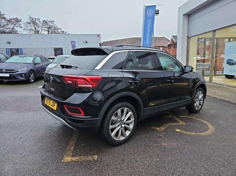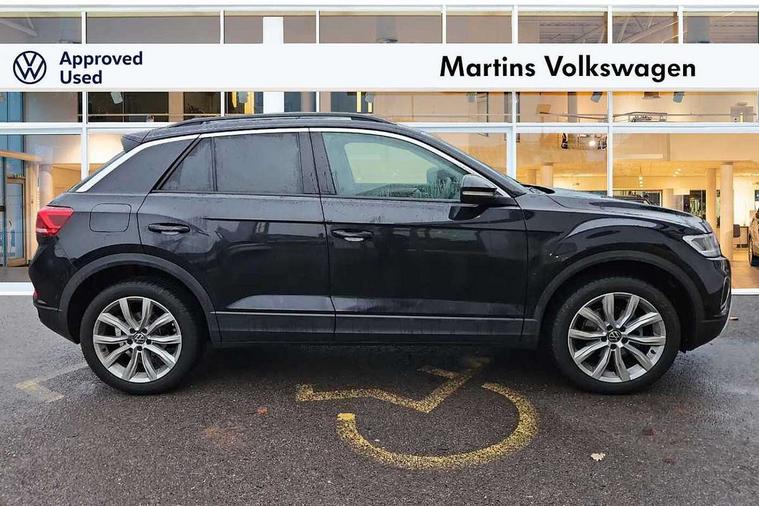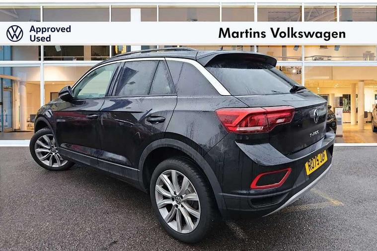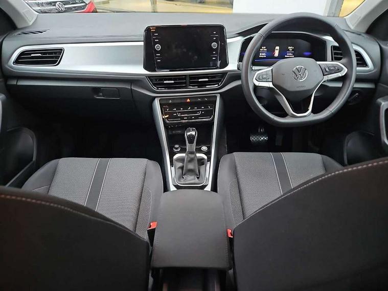 Advanced driver attention and drowsiness monitor, Dynamic road sign display, Emergency call service, Lane keeping system Lane Assist, Mobile phone interface, Modified key software - reduce switch off time for key status change to Long no motion, Online services, Park assist including front and rear parking sensors, Power assisted speed sensitive steering, Rear view camera, Service interval indicator, Tailgate/trunk lid release from outside, Think blue trainer driver tips and journey analysis, Warning sound and light for front seatbelts unfastened, Wireless app connect, Battery regeneration during braking, Front shock absorption, Rear shock absorption chassis with increased ride height, Start/stop function with battery regeneration, DAB Digital radio, Diversity antenna for FM reception, Music playback - MP3, WMA and AAC files, SD card slot, Simultaneous pairing of 2 compatible mobile devices, Title and cover art display, We Connect and We Connect Plus functionality, Auto dimming interior rear view mirror, Automatic hazard lights activation under emergency braking, Automatic headlight control with LED separate daytime running lights with coming/leaving home function, Black roof rails, Body coloured bumpers and radiator grille with chrome trim and front fog lamps with chrome bezel, Body coloured exterior mirror housings and door handles, Electrically adjustable and heated door mirrors, Extended roof spoiler, Exterior mirrors aspherical on driver side, convex on front passenger side, External USB type C socket and charging sockets, Front windscreen wiper with intermittent wipe and 4 position delay, Heated rear window, LED 3rd brake light, LED rear combination lamps, LED rear number plate lights, Power windows with comfort operation and circuit breaker, Privacy glass for rear side windows and rear window, Rain sensor, Rear exhaust tailpipe, Rear fog light on one side and reversing lights on both sides, Rear side wing doors, Rear wash/wipe with intermittent wipe setting, Remote electrically foldable door mirrors, puddle lights and reverse activated passenger's door mirror, 12V power socket in centre console, 3 rear head restraints, 3 seat bench in 2nd row, 4 load lashing points in luggage compartment, Air care climatronic air conditoning system with active combination filter and 2-zone temperature control, Black stitching for floor mats, Ceramique roof liner, Cloth upholstery, Door and side trim panel in cloth, Drawer under drivers seat, Driver/front passenger seat height adjustment, Front centre armrest, Front comfort sports seats, Front cupholders x 2, Front reading light, Front seat back storage pockets, Glove compartment door with light, Instrument lighting, white adjustable panel illumination, Interior ambient lighting and surround lighting, Interior light delay, Isofix child seat preparation, Leather gearshift handle, Load-through provision with cup holder when folded down ('Unsplit rear seat bench, split folding backrest, with centre armrest), Luggage compartment lighting, Lumbar support for driver's and front passengers seat, Non-folding front passenger seat backrest, Single front passenger seat, Storage compartment in left and right luggage area, Storage compartment in rear doors, Storage compartments in driver and front passenger doors, Sunvisors with illuminated vanity mirrors, Variable boot floor, height adjustable and removable, Driver assistance pack without proactive passenger protection - T-Roc Life/Match, 3 point height adj front seatbelts + pretensioners, 3 point seatbelts in outer rear with ECE label, ABS, Child locks on rear doors, City emergency braking and pedestrian monitoring, Driver and front passenger airbag with front passenger airbag deactivation, Driver and front passenger safety-optimised head restraints, Drivers seatbelt reminder, Electronic parking brake, Electronic Stability Control (ESC) inc EDL (Electronic Differential Lock) and ASR (Traction Control), Front and rear passengers curtain airbag system including front side airbags, Front disc brakes, Hill start assist, Predictive pedestrian protection, Rear disc brakes, Two tone horn, Tyre pressure loss indicator, Volkswagen roadside assistance, Alarm with interior protection, Keyless locking and starting system keyless access with safelock, Pewter matt decorative inserts for intrument panel, centre console and door panels at the front, Trims for alloy wheels,