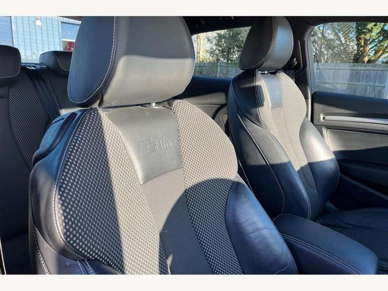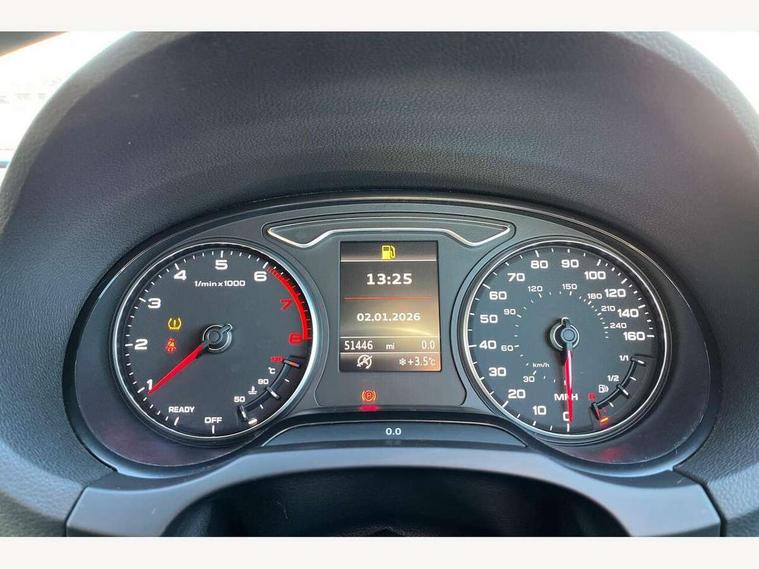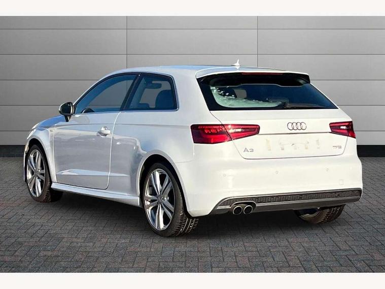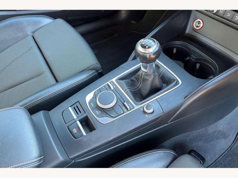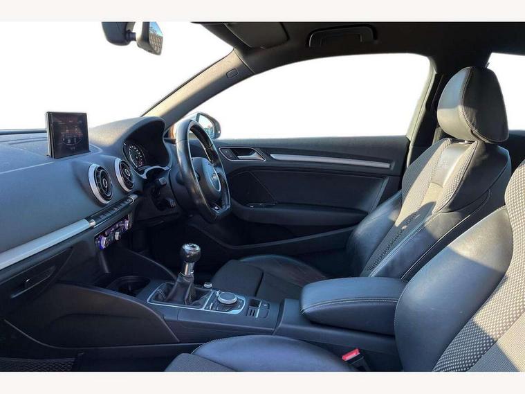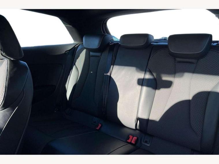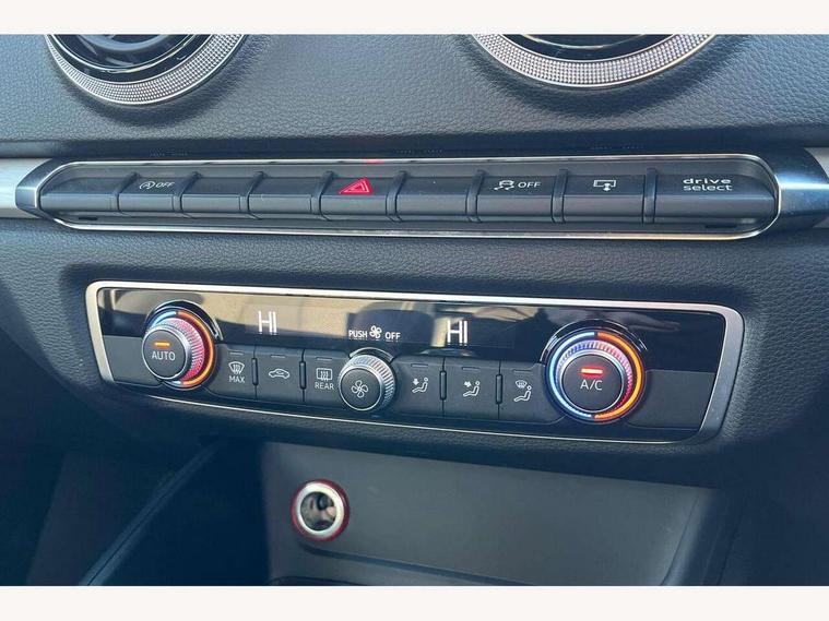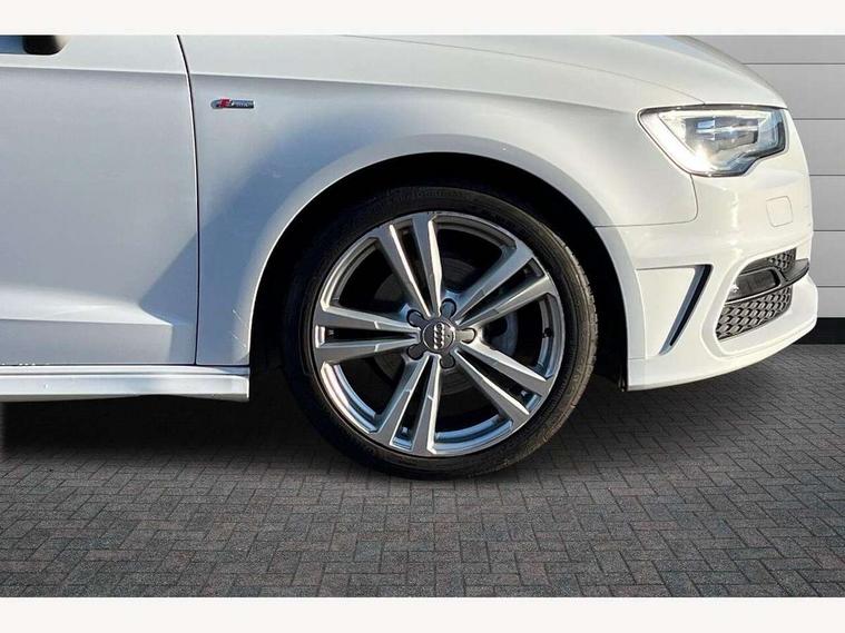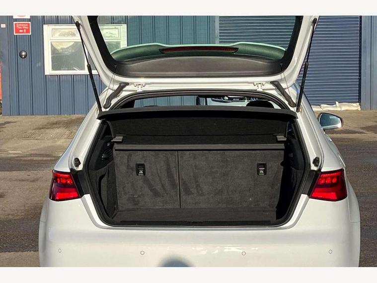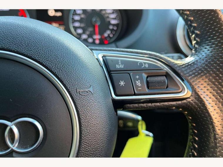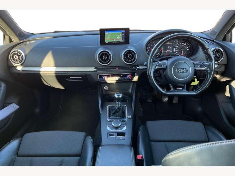 Audi drive select, Colour driver's information system display, Low washer fluid indicator, Service interval indicator, Voice control system, Audi music interface, DAB Digital radio, Aluminium side window trim, Body colour bumpers, Body colour door mirrors with integral indicators, Body colour roof spoiler, Electric front windows, Front fog lights, Heated rear window, Heated windscreen washer jets, High gloss black fog light surround, High gloss black front grille, LED daytime running lights, LED rear lights, Rear wiper, S Line body styling, Twin exhaust tailpipe, 3 adjustable rear headrests, 3 spoke flat bottomed S Line multifunction steering wheel, 4 lashing points to secure luggage, 60/40 split folding rear seat, Adjustable front armrest, Aluminium door sill trims, Black cloth headlining, Coat hooks on both sides, Cup holders, Door sill trims with S line logo, Driver seat undertray, Driver/passenger sunvisors, Dual zone electronic climate control, Front and rear interior lights with delay, Front seats - 'Easy Entry', Front/rear floor mats, Height adjustable front seats, Height/depth adjustable steering column, Illuminated glovebox, Illuminated luggage compartment, ISOFIX child seat preparation+airbag deactivation, Jack and tool kit, Perforated leather gearknob, Removable rear parcel shelf, Storage compartment in centre console, Storage compartments in doors, Storage and luggage pack - A3/RS3, 3 point seatbelts on all seats, ABS/EBD, Active bonnet, Active front headrests, ASR, Collision mitigation braking system, Curtain airbags, Driver and passenger side airbags, Driver/Front Passenger airbags, Drivers knee airbag, EDL, Electromechanical parking brake, ESC - Electronic Stability Control + traction control, Front passenger airbag deactivation, Seatbelt warning, Tyre pressure monitor, Warning triangle and first aid kit, Anti-theft wheel bolts, Remote control central locking, Thatcham category 1 alarm + immobiliser, Aluminium air vent surrounds, Aluminium trim elements, Matt brushed aluminium inlays, Space saver spare wheel,