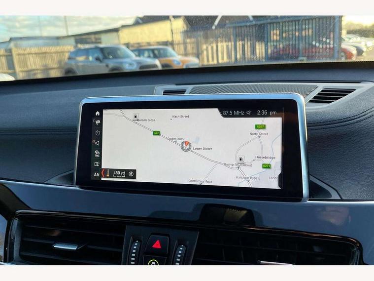 Active Guard incl speed limiting and lane departure functions with auto steering, and front collision warning with brake intervention, Ambient temperature display, Attentiveness assist, Automatic tailgate opening, BMW Online services, BMW remote services, BMW Teleservices, Brake pad wear indicator in front and rear, Cruise control with brake assist, Front/rear park distance control (PDC), Instrument cluster with speedometer with miles per hour read out, tachometer and fuel gauge, Lights on warning by audio warning signal when ignition is switched off, Navigation system + 8.8" monitor, On board computer, Optimum shift indicator, Outside temperature gauge, Park assist system, Personal Profile - automatic lock when driving away selectable, Real time traffic information, Service interval indicator, Servotronic PAS, Stop/start button, Tyre puncture warning system, 12V compressor with integrated sealant injection bottle and hose, Anti-roll bars, Balancer shaft, Drive performance control with ECO PRO comfort + sport mode, Electronic differential lock, High precision injection, Performance Control, Twin tube gas filled shock absorbers with degressive characteristic curve, 2 USB Power socket for rear seat, DAB Digital radio, USB connection located in centre console, USB/audio interface, Adjustable headlights, Aero curtain, Automatically dimming rear view mirror, Body colour bumpers, Body colour door handles, Body colour door mirrors, Body colour wheel arches and side sills, Clear lenses direction indicator lights, Direction indicator side lights integrated exterior mirrors, Dynamic brake lights, Electrically adjustable door mirrors with aspheric on driver side, convex on passenger side with integrated indicators, Exterior mirrors - electrically folding with anti-dazzle, Fingertip control / anti-trap function on electric window, Follow me home headlights, Front air guide finished in black silver, Front air inlets in matt black with silver finisher matt, Front and rear bumper system, Front and rear electric windows, Front bumper air intakes with dark shadow finisher, Green tinted heat protection glazing glass, Headlight beam throw control, Heated door mirrors, Heated windscreen washer jets, High gloss shadow line, High level third brake light, Kidney grille with 14 chrome high gloss black vertical bars, LED daytime running lights, LED front fog lights, Lightweight engineering, M aerodynamic body styling, M logo designation in side chrome, Model designation, Rain sensor including auto headlights activation, Rear bumper with dark shadow and underbody protection in body colour, Rear fog lights, Rear window aerial, Rear window wash/wipe, Reversing light in rear light cluster, Roof mouldings in matt black, Shark fin antenna, Sill cover in silver matt insert, Twin chrome exhaust tailpipes x2, Visible VIN plate, Welcome lighting, 12v power point in centre console, 3 rear headrests, 3 spoke sport nappa leather steering wheel, 4 grab handles, 40:20:40 split folding rear bench seat, Anthracite floor mats with M specific designation, Anthracite headlining, Automatic light activation, Boot light, Child seat ISOFIX attachment for two outer rear seats and front passenger seat with anchorage points, Dakota leather upholstery with perforation and contrast stitching, Driver and front passenger heated seats, Driver/front passenger seat backrest back with luggage net, Driver/passenger sunvisors with ticket holders, Dual zone automatic air conditioning, Extended storage, Front and rear door armrests, Front centre armrest/sliding cover, Front door sill finishers with M designation, Front sports seats, Front/rear adjustable head restraints, Gearshift lever with M designation, Illuminated glovebox, Leather gearknob/gaiter/handbrake grip, LED ambient lighting in door trim, Luggage area underfloor compartment, Luggage compartment access via recessed handle below tailgate, Luggage compartment lighting, Luggage compartment loading edge with stainless steel insert, Manually adjustment steering wheel column, Multifunction steering wheel, Rear coded belt buckles, Extended lights pack - X1, Extended storage package - X1, 3 rear 3 point seatbelts, ABS/EBD, Audio/visual collision warning system, Automatic Stability Control (ASC), Battery safety cut-off, BMW emergency call, Brake drying, Brake energy regeneration, Braking readiness, Collision mitigation braking system, Cornering brake control (CBC), Crash Sensor - activates hazard/interior lighting + unlocks doors, Driver/Front Passenger airbags, Driver/front passenger side airbags, Dynamic brake control, Dynamic stability control + (DSC+), Dynamic Traction Control - DTC, Electronic parking brake, Front and rear head airbags, Front passenger airbag deactivation, Front seatbelt force limiters, Front ventilated disc brakes, Hill start assist, Pyrotechnically pre-tensioned front seatbelts, Rear disc brakes, Rear door child safety locks, Seatbelt security check for driver and front passenger, Side impact protection, Twin horns, Tyre pressure monitor, Warning triangle and first aid kit, Auto door lock when driving, Central locking switch for all doors, fuel filler cap and luggage compartment, Check control system for monitoring of lights and door/luggage compartment open warning, Engine immobiliser, Locking wheel nuts, Remote control Thatcham category 1 alarm, Remote control with integrated key with M specific highlight, Contrast stitching on instrument panel, High gloss black centre console, Low rolling resistance tyres,