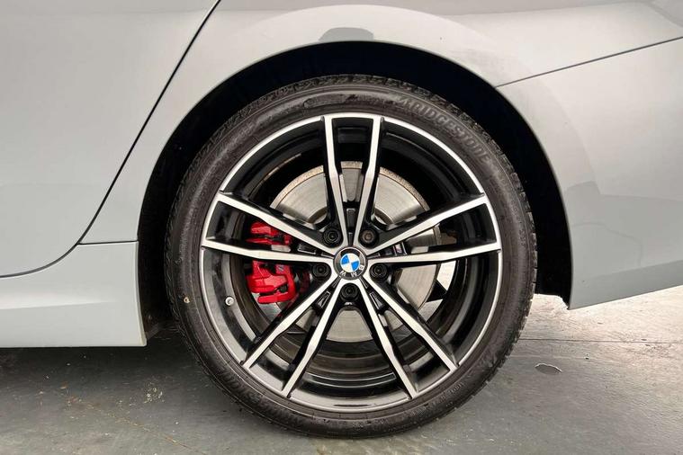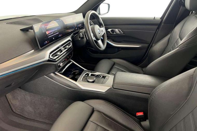 Active guard plus, Attentiveness assist, Automatic Start/stop button, BMW iDrive, BMW Teleservices, Condition based service, ConnectedDrive Services, Driving experience switch, Live cockpit plus with Navigation + 12.3" instrument display + 14.9" display, Intelligent voice assist, 2 USB, 4G LTE connect, Oil sensor for level and grade, Preparation for driver assistance, Shifting point display, Variable sport steering, 48V Mild hybrid technology, Double joint spring strut front axle, Fuel tank breather system, Larger capacity fuel tank, M sport suspension, Sport automatic transmission with steering-wheel mounted gearshift paddles and launch control, DAB tuner, 3rd brake light, Acoustic glazing, Automatic headlight beam throw control with load dependent regulating reaction, dynamic compensation of braking dive and acceleration squat, BMW emblem, engine compartment lid and tailgate, Body colour roof fin, Door sill strips, Electric windows - front and rear, with open/close fingertip control, anti-trap facility and comfort closing, Follow me home headlight function, Front and rear bumper system with replaceable deformation elements, Front apron plastic in body colour, Fuel filler flap - right rear in body colour, Heated washer jets, High gloss shadow line exterior trim, High gloss shadow line roof rails, Illuminated bow type door handles in body colour drivers side with door lock, Interior rear view electrochromatic mirror with automatic anti dazzle function, LED rear lights, Licence plate panel integrated into front bumper and tailgate, Matt black B-pillar finsher, Matt black window recess cover, Model designation on right side of tailgate, One piece front bumper cover including towing eye cover in body colour, Rain sensor with automatic headlight activation, Rear side wing doors, Rear wiper, Reversing lights, Side frame decorative moulding black matt, Visible exhaust tailpipe finisher, Welcome lights in interior and door handle area, 12V power socket in front storage compartment, 2 front cupholder in centre console with clamping elements and matt black inlay, 3 seat bench in 2nd row, 3 zone automatic air conditioning, 40:20:40 split folding rear seat with loading system, Ambient inside door handle light, Ambient light design projected onto the left and right entering and exiting area, Ambient lighting front and rear with 9 selectable colours, Ambient storage compartment lighting in the centre console, Anthracite headlining, Armrest integrated in front and rear door trim + front centre console armrest, BMW ID, Contour lighting in instrument panel and door trim panel, Cruise control operation in steering wheel, Driver backrest width adjustment, Folding rear centre armrest with 2 cupholders, Front and rear ambient footwell lighting, Front and rear door exit lighting (left / right), Front and rear headrests, Front and rear reading lights, Front and rear velour floor mats, Front sport seats, Heated front seats, Height adjustable mechanically and infinitely variable steering column, Illuminated armrest storage compartment, Illuminated glove compartment, Illuminated luggage compartment, Lashing eyelets in luggage compartment, M Sport multifunction leather steering wheel, Make-up mirror lights, Single front passenger seat, Standard seat for driver and passenger with manual adjustment, Sunvisors with vanity mirrors and ticket pocket, Toolkit located in luggage compartment, Connected pack professional - 3 Series Saloon/Touring, Interior and exterior mirror pack - 3 Series Touring/Saloon, M Aerodynamics package - 3 Series Saloon/Touring, M sport exterior styling pack - 3 Series Saloon/Touring, Storage compartment pack - 3 Series Saloon/Touring, 3x3 point rear seatbelts, BMW emergency call, Child locks on rear doors, Crash sensor activating of airbags, Unlocking doors, hazard warning lights, interior light, safety battery terminal, Driver and front passenger with seat occupancy detection for driver's and passenger side, Driver and passenger side airbags, body protection at side and airbags deploy from seat backrests, Dynamic brake control, Dynamic stability control + (DSC+) - Anti-lock Braking System (ABS) with brake assist and cornering brake control + Automatic Stability Control (ASC), Dynamic Traction Control - DTC, Electric parking brake including automatic hold function and automatic release of the parking brake when driving off, Electronic differential lock control (EDLC), Head airbags in 1st and 2nd row, head protection at side, curtain airbags open from headliner above 1st and 2nd row, Plastic fuel tank, Side impact protection, Tyre pressure monitoring with three level warning strategy, Ventilated front and rear disc brakes, Warning triangle and first aid kit, Alarm system, Centre lock switch, Closing system with central locking, Electronic vehicle immobiliser,