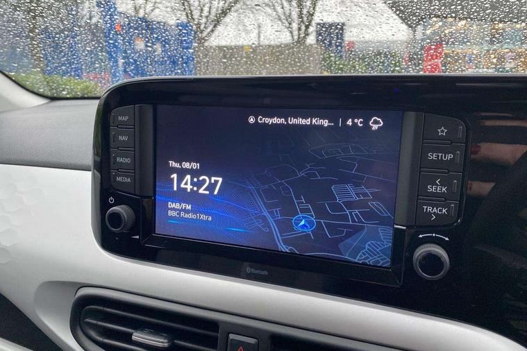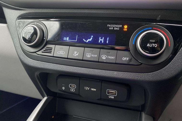 Apple car play/Android Auto, Bluelink mobile remote connectivity, Bluetooth connectivity with voice recognition, Cruise control, Driver attention alert system, eCall emergency call system, Forward Collision-Avoidance Assist (FCA) - Pedestrian/Cyclist, Front USB-C charging and USB-A data, Full-width 4.2" LCD instrument cluster, Intelligent speed limit assist, Lane departure warning system with lane keep assist - LKAS, Lane follow assist, PAS, Rear parking sensors, Rear view camera with guidelines, Roadside assistance, Start/Stop function, Tailgate, Trip computer, Wireless charging pad, 2 front/2 rear speakers, Rear USB-C device charger, Steering wheel audio, phone and cruise controls, 1 speed non intermittent rear windscreen wiper, Black finish on B pillars, Body colour door handles, Body coloured bumpers, Body coloured door mirrors, Electric folding door mirrors, Electric front windows, Electric rear windows, Electrically adjustable and heated door mirrors, Flat metal emblem, Front fog lights, Front grille in glossy black, Front intermittent wipers, Halogen bi-function headlights, Headlights inner with Black Blade design, Heated rear window, High beam assist, Indicator light on door mirrors, LED DRLs diamond mesh design, Privacy glass - Rear windows and tailgate, Rear roof spoiler with integrated LED brake light, Rear side wing doors, 12v power outlet - front, 3 seat bench in 2nd row, 60/40 split folding flat to floor rear seats, Air conditioning, Auto light control, Bottle holders in front/rear doors + front centre console, Cabin and luggage compartment interior lighting, Cloth upholstery, Driver + passenger vanity mirrors, Driver's seat height adjustment, Driver/passenger sunvisors with ticket holders, Floor mats, Front door pockets, Front Head Restraints - Vertical and Horizontal Adjustment, Front LED blue mood lighting, Glove compartment, Heated front seats, Heated steering wheel, Height adjustable steering column, Isofix child seat preparation, Leather multifunction steering wheel, Rear door pockets, Single front passenger seat, Vertical adjustment rear head restraints, 3x3 point rear seatbelts, Airbags - front, front side and curtain airbags, Anti-lock brake system (ABS), Autonomous emergency braking (AEB) with forward collision warning system, Brake assist function, Childproof rear door locks, Electronic stability control, Front and rear seatbelt reminder, Front seatbelt pretensioners, Hill start assist control (HAC), Passenger airbag deactivate switch, Traction control, Tyre pressure monitoring system, Immobiliser, Perimeter alarm, Rear occupant alert, Remote central locking, Second remote key, Smart key with motion sensor, Speed sensitive auto door locking, 16" alloy wheels, Tyre repair kit,