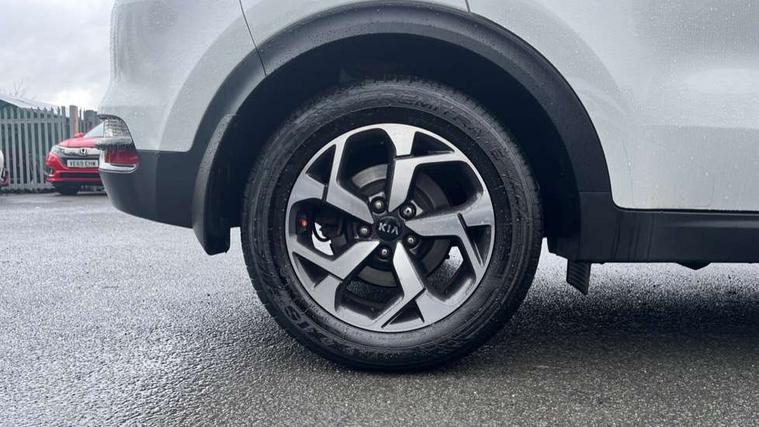 3.5" supervision cluster display, 7" touchscreen satellite navigation with European mapping and traffic messaging channel, Android auto with voice control, Apple car play with voice control, Bluetooth connectivity with voice control, Cruise control + speed limiter, Digital clock, Driver attention warning, Emergency stop signalling system, Kia connected services featuring TomTom live, Lane keep assist, Rear parking sensor, Reversing camera, Speed limit information, Speed sensitive power steering, Trip computer, Windscreen washer level indicator, Intelligent Stop and Go, 6 speaker audio system, Bluetooth audio streaming, DAB Radio with MP3, Rear USB port, Steering wheel mounted audio controls, USB/iPod/auxiliary input connections, All round electric windows with drivers auto up/down function, Auto dimming rear view mirror, Automatic defog system, Automatic headlights, Bi-Function halogen headlights, Black side sill and wheel arch body mouldings, Body colour door handles with chrome inserts, Body colour door mirrors, Chrome front bumper insert, Chrome grille surround, Chrome window surround, Cornering light, Electrically adjustable/heated/folding door mirrors with LED indicators, Front fog lights, Headlamp levelling, High beam assist, High gloss black diamond mesh radiator grille, LED daytime running lights, Privacy glass (rear side windows and rear screen), Rain sensing front wipers, Rear spoiler, Rear wiper, Roof rails, Shark fin antenna, Speed sensitive front wipers, Tinted glass, Trailer stability assist, Welcome and follow-me home light functionality, Wide view drivers door mirror, 12V power in front and rear centre console, 3 x passenger assist grips, 60/40 split folding rear seat, Air filter, All-round height adjustable headrests, Centre cabin light, Centre console storage box, Door armrest in leather, Driver and front passenger side sunvisors with illuminated vanity mirrors, Driver's seat manual height adjust, Drivers seat power lumbar support, Dual zone automatic air conditioning, Front and rear door storage, Front cabin LED map light with sunglasses case, Front door courtesy reflectors, Front seat and rear pockets, Front/rear centre armrests, Gear shift indicator, Glovebox illumination, Heated front and outer rear seats, Heated front seats, Ignition key lock illumination, Interior door lock/unlock function, ISOFIX Child seat top tethers and anchor fixings, Leather steering wheel, Leather trimmed gearshift, Light grey headlining, Luggage area light, Luggage area load cover, Luggage net with hooks, Premium cloth upholstery, Rear centre armrest with cupholder, Rear coat hooks, Rear headrests, Satin chrome interior door handles, Tilt/telescopic adjustable steering wheel, Ventilation ducts to rear compartment, 3x3 point rear seatbelts, Active front headrests, All round 3-point seatbelts, Anti-lock braking system with electronic brakeforce distribution, Dual front side airbags, Electronic stability control with downhill brake control, ESP + traction control, Front passenger airbag cut-off switch, Front seatbelt pretensioners + load limiters, Height adjustable front seatbelts, Hill start assist control (HAC), Impact sensing auto door unlocking, Rear door child safety locks, Twin curtain airbags with roll over sensor, Twin front airbags, Tyre pressure monitoring system, Advanced anti-theft system including immobiliser and alarm, Door deadlocks, Locking wheel nuts, Remote central door locking with fold away key, Speed sensitive auto door locking, Visible vehicle identification number, Metallic finish centre fascia, 17" Alloy wheels, Temporary spare wheel,