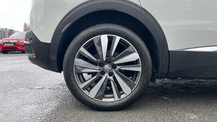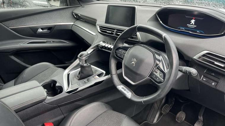 'Lights On' Reminder warning buzzer, 3D connected navigation + voice control + Peugeot connect SOS and assistance, Bluetooth telephone facility, Digital clock, Exterior temperature indicator with ice warning, Front and rear parking sensors, Lane departure warning system, Mirror screen with mirror link, apple carplay and android auto, Multi function trip computer, PEUGEOT i-Cockpit with 8.0" capacitive touchscreen in centre console, PEUGEOT i-Cockpit with compact sports steering wheel, PEUGEOT i-Cockpit with configurable 12.3" Head-up digital instrument panel, Smartphone charging plate, Speed limit recognition and recommendation, Sports button, Dynamic stability control and electronic anti-skid system, DAB Digital radio, Steering wheel mounted controls, USB socket, 2 X Rear number plate lights, Aluminium longitudinal roof bars, Auto self levelling headlights, Automatic hazard light activation upon heavy brake application, Automatic triggered rear windscreen wiper in reverse gear, Black front wing trim with chrome detail, Body colour door handles, Body colour rear spoiler with stainless steel edging trim, Body coloured bumpers, Body protectors (bottom of front and rear bumpers + wheel arches + protection at bottom of doors) in black, Chrome front fog light trim, Chrome rear bumper facia, Chrome side window trim, Dark tinted rear side windows + tailgate window, Door mirror mounted LED Peugeot lion approach lights, Electric operated/heated door mirrors, Front windscreen wiper with magic wash cleaning system, Full LED headlights with LED fog lights with static cornering function, sports front bumper and grille, Gloss black B and C pillar and aerodynamic deflector trim, Gloss black rear cluster connecting strip, Gloss black windscreen surround, GT Line emblem in satin copper (front wings and tailgate), Headlights left on audible warning, Heated rear windscreen with integrated antenna, LED daytime running lights, LED sequential scrolling front indicators, LED side indicator lights integrated into door mirrors, Lion grey front bumper scuff plate, Nera black door mirrors, One touch electric front/rear windows with pinch protection, Panoramic opening glass roof, Power folding door mirrors with blind spot detection indicator and auto dipping function in reverse gear, Radiator grille in chrome edge trim with chequered design and black 'PEUGEOT' lettering, Rear LED Peugeot signature 'Claw Effect' lights, Stainless steel roof arches, Twin exhaust tailpipe, 1/3 to 2/3 split folding rear seats, 12V Sockets in dashboard, rear cabin and load area, 2 cupholders in front centre console, 2 rear reading spotlights, 230V socket on rear centre console, 2x Rear coat hooks, 3x Isofix child seat fittings in the front passenger and outer rear seats, 4 Grab handles retractable and damped, Aikinite stitching in armrest, gear lever and dashboard facia, Blue ambient lighting for connecting zone, Blue ambient lighting to front door panels, central storage and cupholders, Blue ambient lighting to head up instrument panel, Centre front armrest with butterfly wing opening and illuminated storage compartment, Dual zone automatic climate control, Electric power steering with reach and rake adjustable steering column, Fixing rings 4 in load compartment, Flocked front door pocket interior with blue ambient lighting, Flocked glovebox interior, Fold flat front passenger seat with picnic table, Footwell illumination, Front interior light with 2 reading spotlights and rear interior light with timer, Front passenger seat manual adjustments, Front seat back map pockets, Gear shift indicator, Illuminated glovebox, Illuminated vanity mirrors, Imila cloth/Leather upholstery, LED interior lighting in storage spaces and load area, Mistral floor mats with Aikinite contrast stitching, Mistral full grain perforated leather steering wheel with aikinite stitch detail and satin chrome 'GT Line' emblem, Rear armrest with ski flap and two cup holders, Rear centre console ventilation system, Reclining front seats, Roof LED interior lighting, Roof lining - Mistral black, Satin chrome dashboard trim, Satin chrome digital instrument panel and touchscreen trim, Satin chrome front door panel recess trim, Satin chrome gear lever, Satin chrome interior door handles, Satin chrome scorpion's tail and toggle switch trim, Seatbelt not fastened audible and visual alert for front seats, Seatbelt unfastened on the move audible and visual alert for front and rear seats, Stainless Steel Scuff Plates, Two position boot floor, Driver sport pack - 3008, Safety pack - 3008, Safety Plus Pack - 3008, Visibility pack - 3008, 3x Rear three-point retractable seatbelts with force limiters in the outer rear seats, Adaptive driver and front passenger airbags with passenger airbag deactivation function, Anti lock braking system + Electronic brake force distribution, Driver and front passenger side airbags, Electric child locking functionality on rear windows and doors, Electric parking brake, Front and rear curtain airbags, Front optimised safety headrests and 3 x rear retractable headrests with height adjustable, Front three point retractable seatbelts with pre tensioners and force limiters, Front ventilated disc brakes and rear disc brakes, Height adjustable front seatbelts, Hill start assist, Tyre pressure sensor, Anti theft alarm, Automatic door locking when moving off, Central locking button on dash, Deadlocks, Electric tailgate with Peugeot open & go system, Electronic immobiliser, Locking wheel bolts, Remote control central locking with two plip keys, Brumeo fabric Dashboard, front and rear door panel finish, 19" Washington two tone diamond cut alloy wheels, Space saver spare wheel,