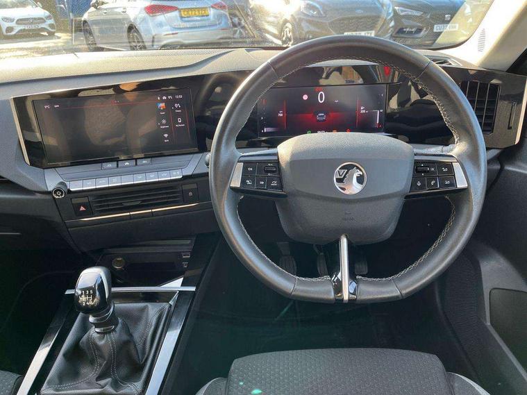 Bluetooth connectivity, Breakdown call (b-call), Cruise control with intelligent speed adaption, Digital central facia display with audio info, digital clock with automatic RDS time adjustment and Outside air temperature with ice warning function, Digital instrumentation - Speedometer, rev counter, satellite navigation display, low fuel & water temperature warning light, shift up/down indicate light, Drive Smart, Driver drowsiness alert system, Driver information display - Total mileage, service due indicator, oil life, eCall emergency system, Front and rear parking distance sensors, Front camera system, Handsfree calls via steering wheel controls, In-crash braking, Lane departure warning with lane keep assist, Lights on audible warning, Multifunction trip computer - Trip mileage, vehicle range, average speed and fuel economy, instantaneous fuel economy and driving time, Natural voice recognition with satellite navigation commands, phone connectivity functions, choice of music playback and operation of electronic clima, Over the air updates and WiFi updates, PAS, Phone book access, Pure Panel Digital Display - 10" Digital instrument cluster, RDS with traffic programme, Satellite navigation system with natural voice recognition, Service interval indicator, Speed sign recognition, Start/stop system, Vauxhall connect, Vehicle microphone, Vehicle status and information, 6 speakers, AM/FM stereo radio with 36 station presets, Bluetooth A2DP audio streaming function (Advanced audio distribuition profile), DAB Digital radio, Front USB connection with iPod control, Pure Panel Digital Display - 10" Infotainment colour touchscreen, Smartphone interface with Apple CarPlay, Android Auto and Wireless smartphone projection, Steering wheel audio, phone and cruise controls, Active bonnet/headlight/wiper structure, Adaptive brake lights, Automatic lighting control, Black door mirrors, Black lower window frame moulding, Body colour bumpers with grained black lower front grille and rear valance panel, Body colour roof and rear roof spoiler, Body coloured door handles, Chrome-effect Griffin logo and vizor frame, Door to door illumination, Electrically operated front and rear windows with safety auto reverse and one touch up/down facility, Heated rear window, High beam assist, Intermittent rear window wash/wipe, LED daytime running lights, LED front fog lights, LED Headlights, LED side repeat indicators, LED tail lights, Manual folding door mirrors, Manual headlight levelling, Rear side wing doors, Rear view mirror, Shark fin aerial, Soundproof insulated windscreen, Third brake light, Twin electrically adjustable and heated door mirrors, Two speed rain-sensitive windscreen wipers with variable intermittent wipe, Windscreen and side window demist vents, 12V electrical accessory socket in front, 3 seat bench in 2nd row, 60/40 split folding rear seat, Chrome effect interior door handles, Cloth upholstery with cloth side bolsters and surrounds, Driver's and front passenger's sunvisors, Electronic climate control, Fade up/down front and rear courtesy light, Folding storage box on driver side lower facia, Four adjustable facia vents, Four lashing eyes in load compartment, Four way adjustable height, reach, backrest, head restraint in front passengers seat, Front and rear seatbelts, Front door pockets, Front head restraints, Fully carpeted load area, Glovebox with lid, Illuminated load area, Illuminated vanity mirrors, Interior tailgate handle, Isofix child seat mounting points on outer rear seats, Luggage compartment cover, Pollen filter, Reach and rake adjustable steering column, Rear centre headrest, Rear door pockets, Rear head restraints, Rear reading lights, Single front passenger seat, Six way adjustable height, reach, backrest, head restraint in drivers seat, Storage compartment in centre console, Three spoke flat bottom design leather covered steering wheel with satin chrome effect accents, Twin gas assisted tailgate struts, Two drinks holder in centre console, 3x3 point rear seat belts, 8 Airbags - Drivers and front passengers airbags, Front seat side-impact airbags and Full-size curtain airbags, Anti-lock braking system (ABS), Automatic emergency braking with pedestrian detection, Child locks on rear doors, Cornering brake control, Deactivation switch for front passengers front and side impact airbags, Drag torque control, Electronic brake force distribution, Electronic parking brake, Emergency brake assist, ESC - Electronic Stability Control + traction control, Fading brake support, Forward collision alert at low speed, Front and outer rear seatbelt force limiters, Hill start assist, Outer rear seatbelt pretensioners, Rollover mitigation, Seatbelt unfastened audible warning and warning light, Straight line stability control, Tyre pressure monitoring system, Upper and lower bumper design to reduce upper and lower leg injuries, Deadlocking system, Key left in ignition audible warning, Keyless Start, Locking wheel nuts, Remote control central locking, Remote control ultrasonic security alarm system, Birdie grey trim inserts on front doors, Black facia with modene trim inserts, Instrument panel bar in Alexit grey, 16" Silver alloy wheels,